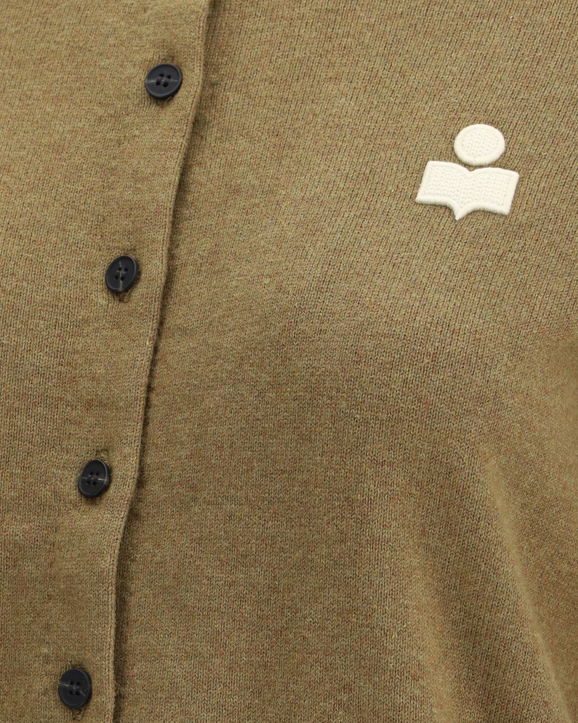 Il Cardigan Mona di Marant Étoile è realizzato in morbido cotone e presenta un design pulito con maniche lunghe e scollo rotondo. La chiusura con bottoni sul davanti e il logo “Marant” completano il capo con un tocco distintivo e casual.