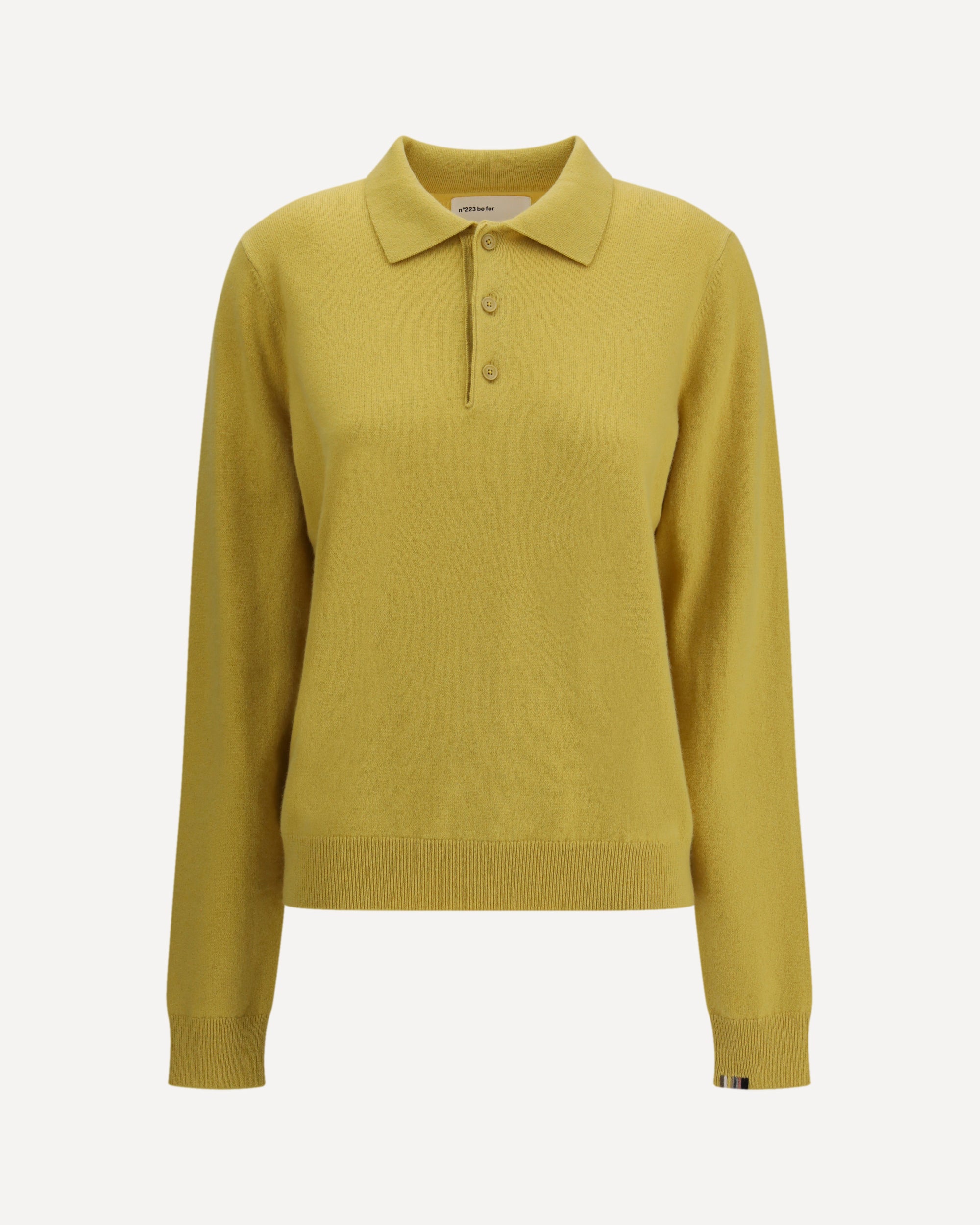 Il n°223 be for di Extreme Cashmere è una reinterpretazione contemporanea del classico maglione in cashmere con collo polo e chiusura a tre bottoni. Realizzato con cura artigianale, presenta lavorazione a costine su collo, polsini e fondo, oltre a maniche lunghe che ne esaltano il comfort e la linea essenziale. I bottoni in corozo, materiale naturale e altamente resistente ricavato dal seme di una palma, aggiungono un dettaglio autentico e sostenibile, in perfetto equilibrio tra eleganza e funzionalità.