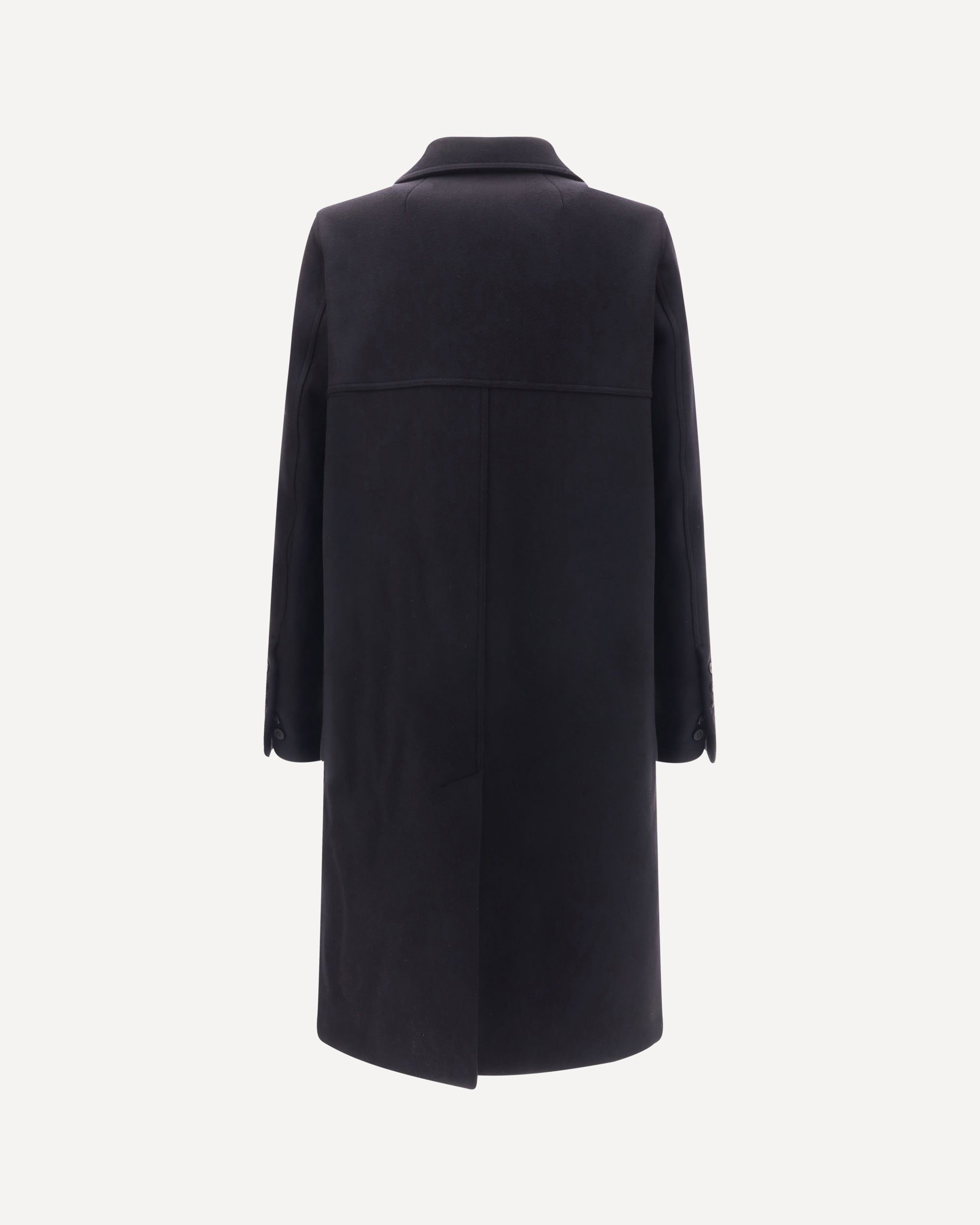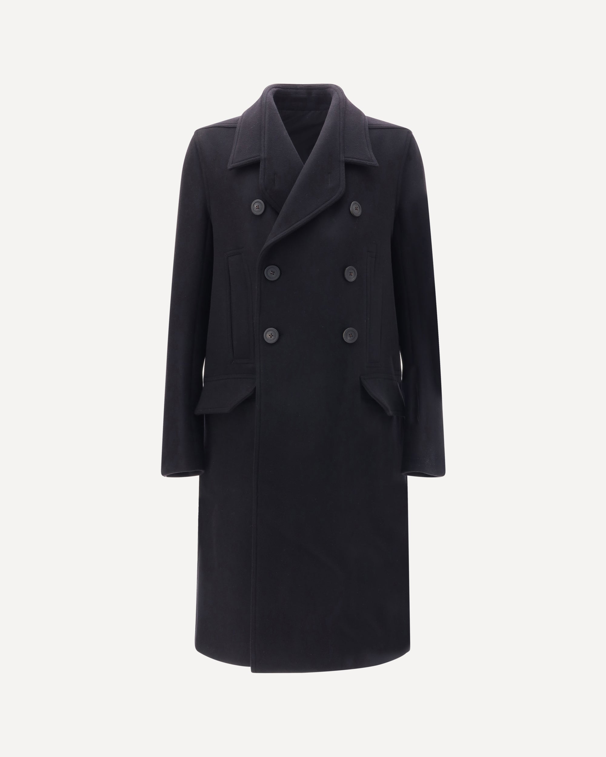 Il Cappotto Officer lungo in lana di Rick Owens si distingue per l’ampio revers e la chiusura doppiopetto con bottoni, che conferiscono un’eleganza strutturata al capo. Completano il design quattro tasche a filetto sul fronte e uno spacco sul retro, per un equilibrio perfetto tra stile e funzionalità.