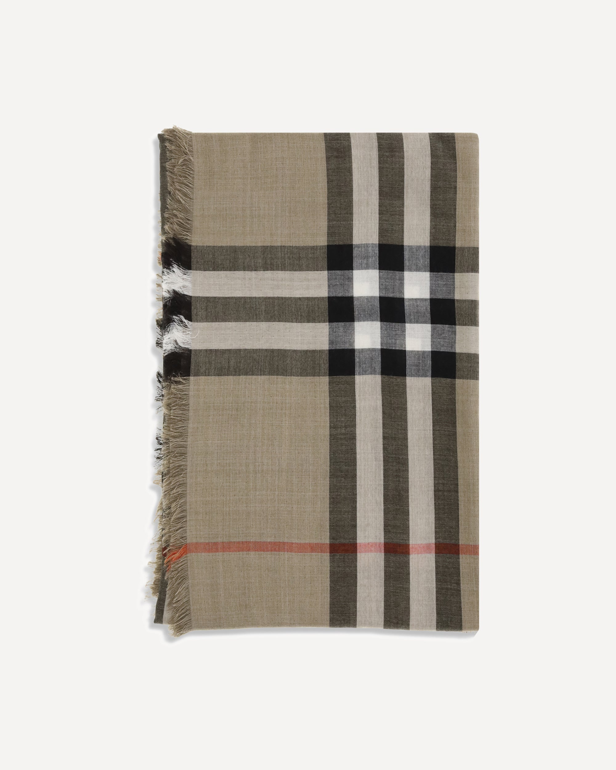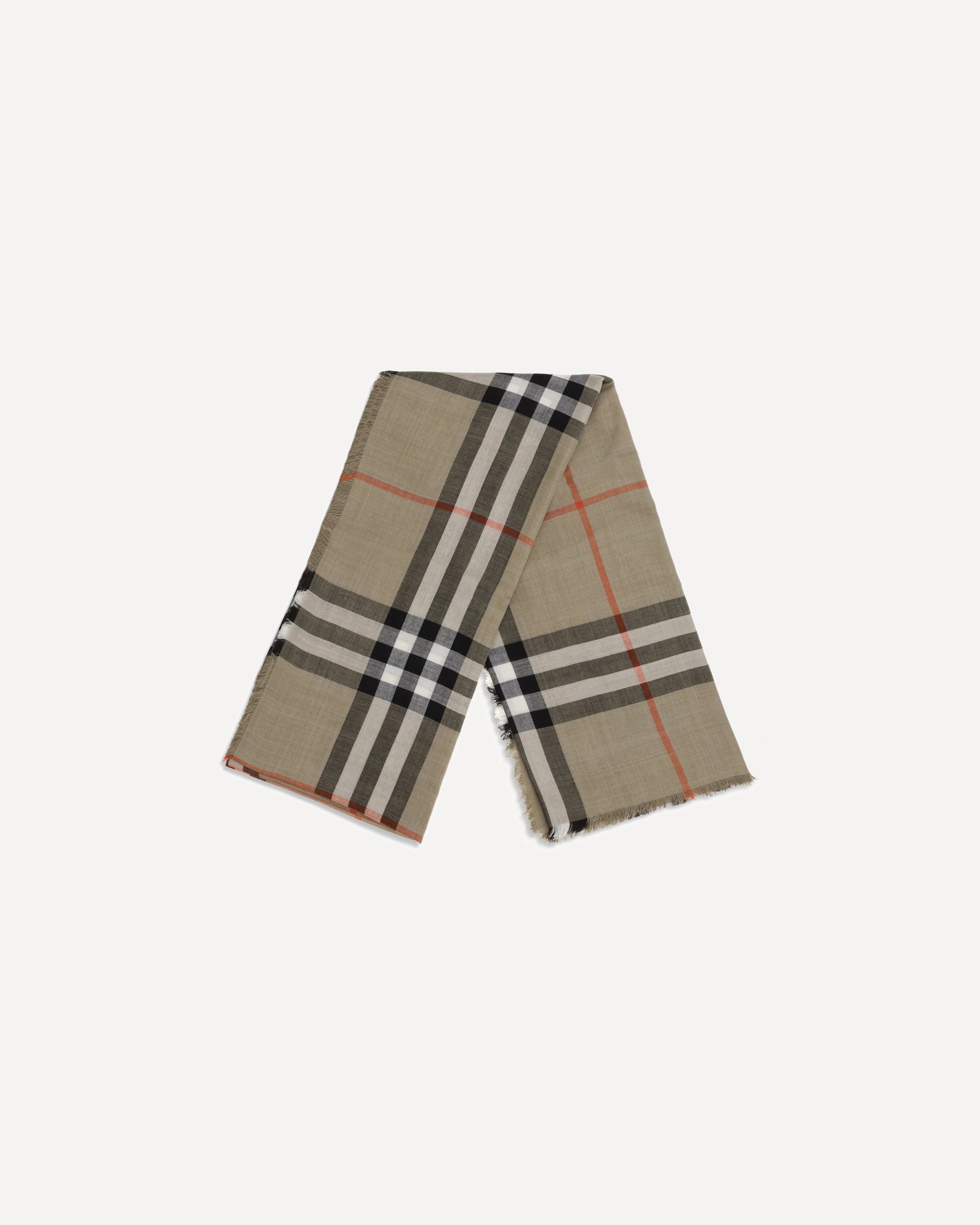 La sciarpa reversibile in lana e seta Check di Burberry è realizzata in leggera mussola in Italia. Il modello rettangolare è decorato con la stampa Burberry Check nei colori stagionali sabbia e marrone Vole e presenta frange corte e sottili lungo i bordi, unendo eleganza e versatilità.