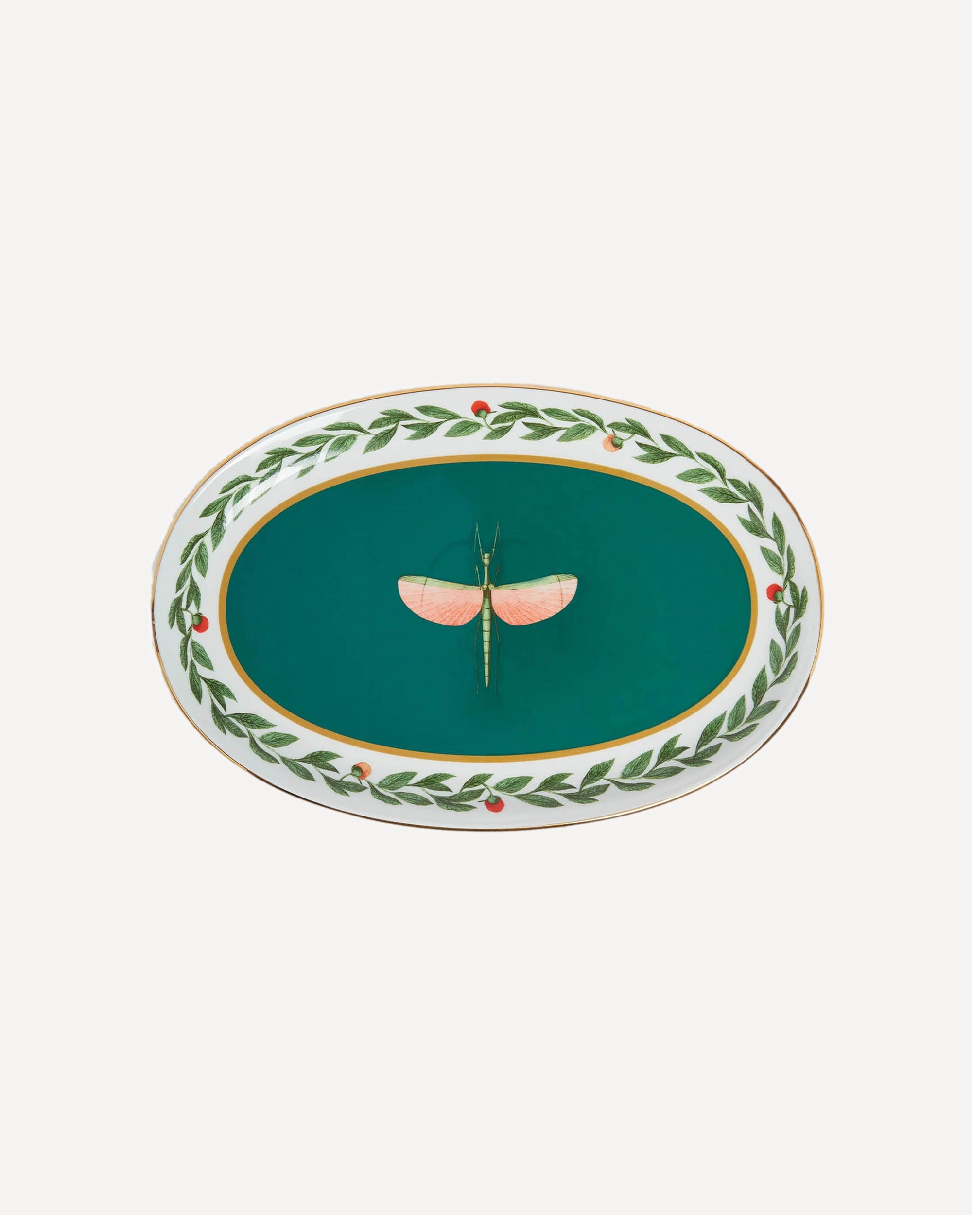 Il Piatto da portata ovale di La Double J, realizzato in porcellana di produzione italiana, è impreziosito da una decorazione in oro 18 carati dipinta a mano. Pensato per la convivialità, unisce eleganza e funzionalità grazie al suo formato generoso. Il romantico motivo Libellula aggiunge un tocco poetico e distintivo, rendendolo perfetto per valorizzare qualsiasi tavola.