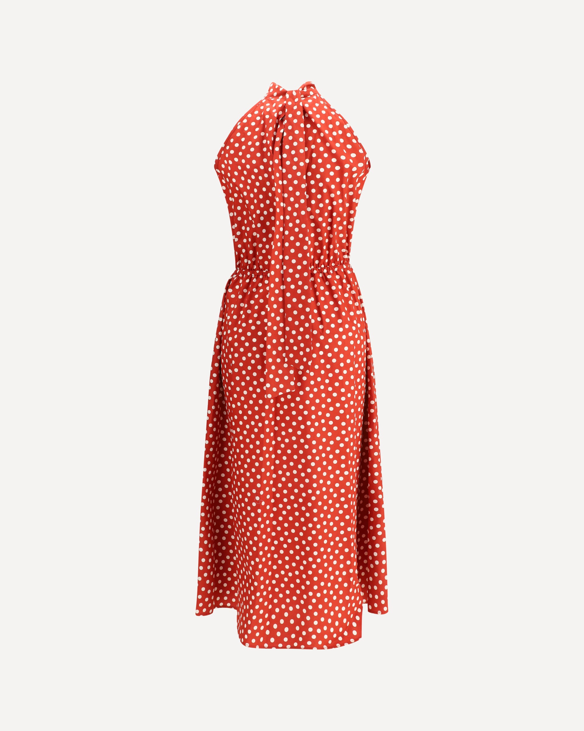 L'Abito lungo in pelle ovo di Crida Milano è un capo elegante e sofisticato. Si caratterizza per il corpetto morbido e lo scollo all’americana con nastro, che conferiscono un look raffinato e sensuale. Il tessuto leggero garantisce una vestibilità morbida e fluida, mentre le tasche a fessura laterali e l'elastico in vita combinano essenzialità e praticità. Il design fantasioso a pois aggiunge un tocco di originalità, rendendo l'abito perfetto per occasioni speciali o look eleganti ma comodi.