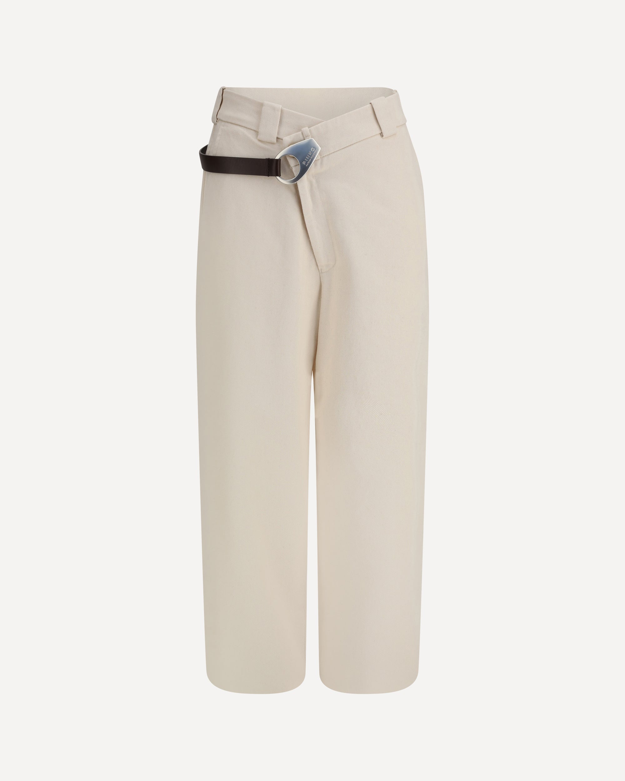 I Pantaloni incrociati di Pinko uniscono originalità e stile in un design distintivo. Caratterizzati da una chiusura incrociata con bottone e da una mezza cintura fissa in vita, sono impreziositi da una fibbia geometrica satinata con logo inciso. Completano il modello due tasche a filetto laterali e due sul retro, per un look sofisticato e contemporaneo.