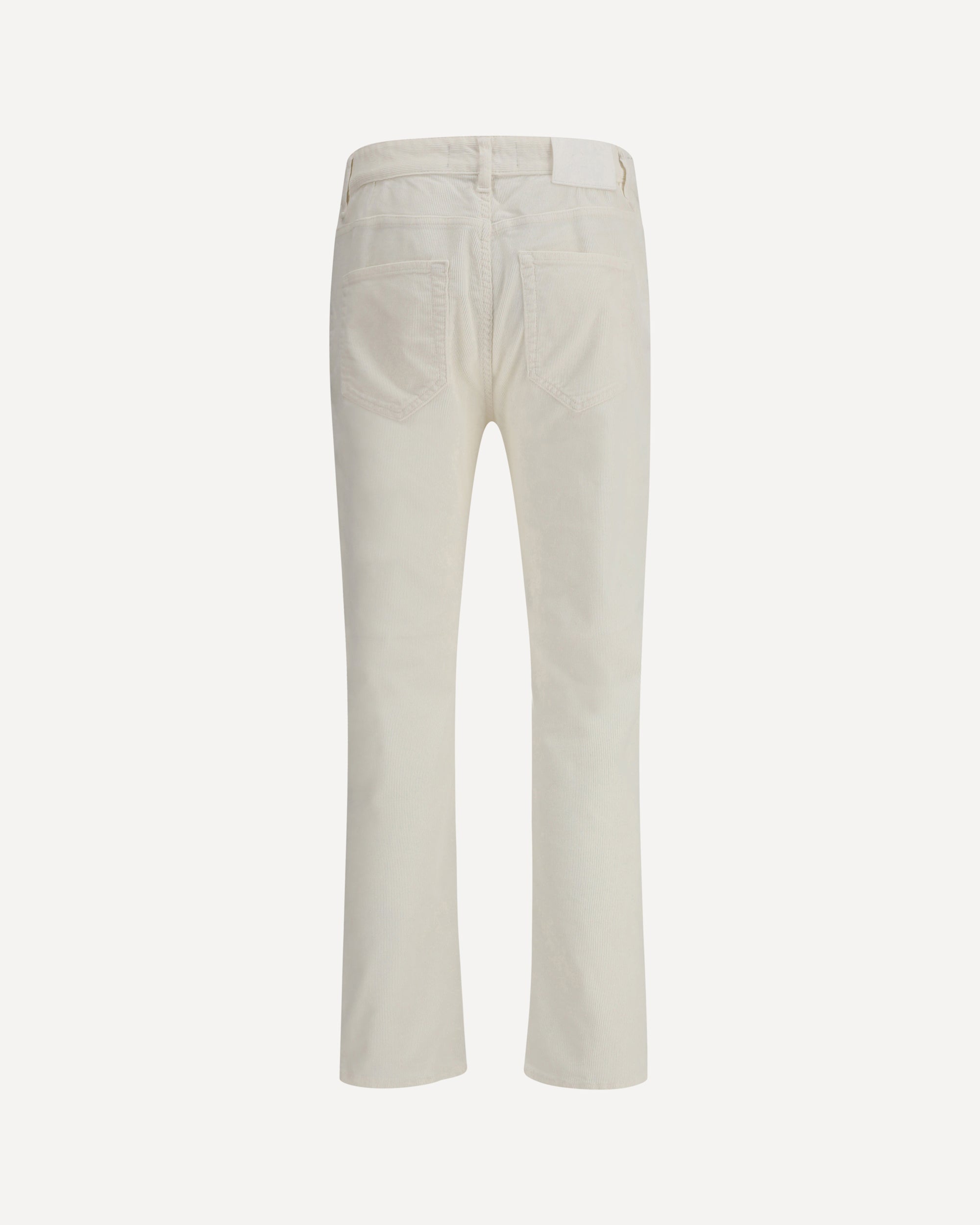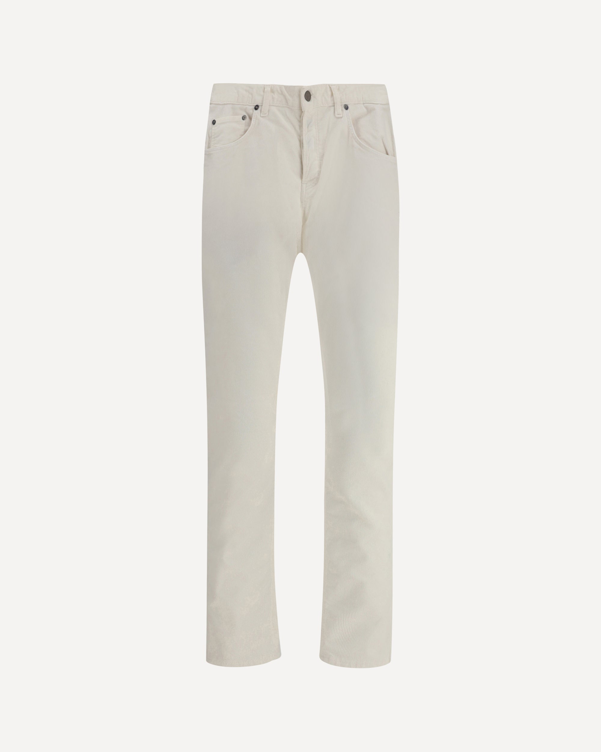 I Pantaloni in cotone di PT Torino reinterpretano il classico modello a cinque tasche con un raffinato design in velluto a costine. Caratterizzati da una linea straight, presentano chiusura frontale con bottoni, passanti per cintura in vita e l’iconica patch in pelle con firma del brand stampata a pressione applicata sul retro, per un tocco distintivo e sofisticato.