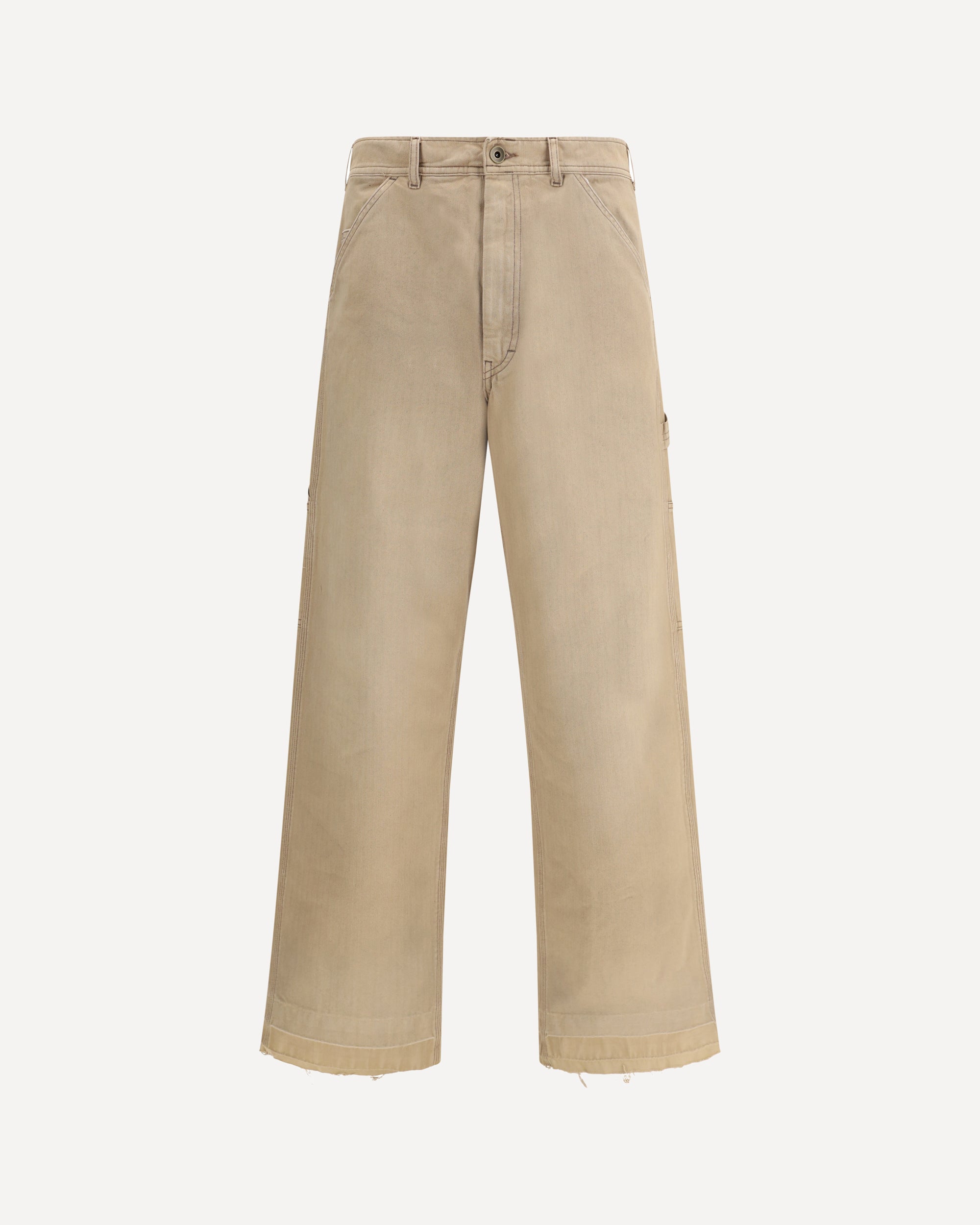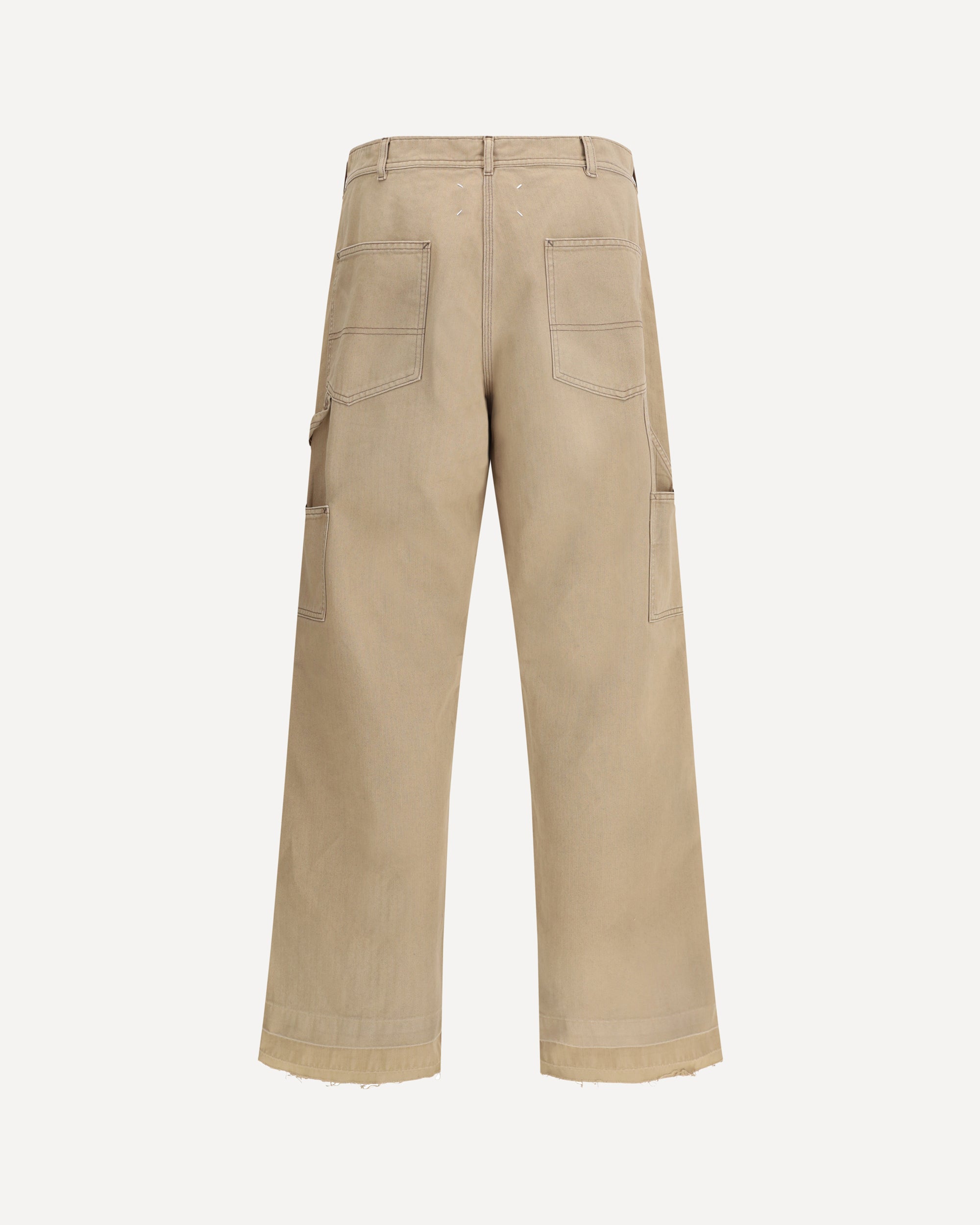 Il Pantalone Margiela in puro Cotone unisce eleganza e dettagli distintivi. Il tessuto è caratterizzato da un ricamo a righe tonale su tutta la superficie e dalla iconica cucitura a contrasto sul retro, che aggiunge personalità al capo. La vita con passanti accoglie la cintura, mentre la chiusura con zip, gancetto a scomparsa e bottone a vista garantisce praticità. Cinque tasche classiche sul davanti e due tasche applicate sul retro completano il design, mentre il fondo a taglio vivo conferisce un tocco contemporaneo