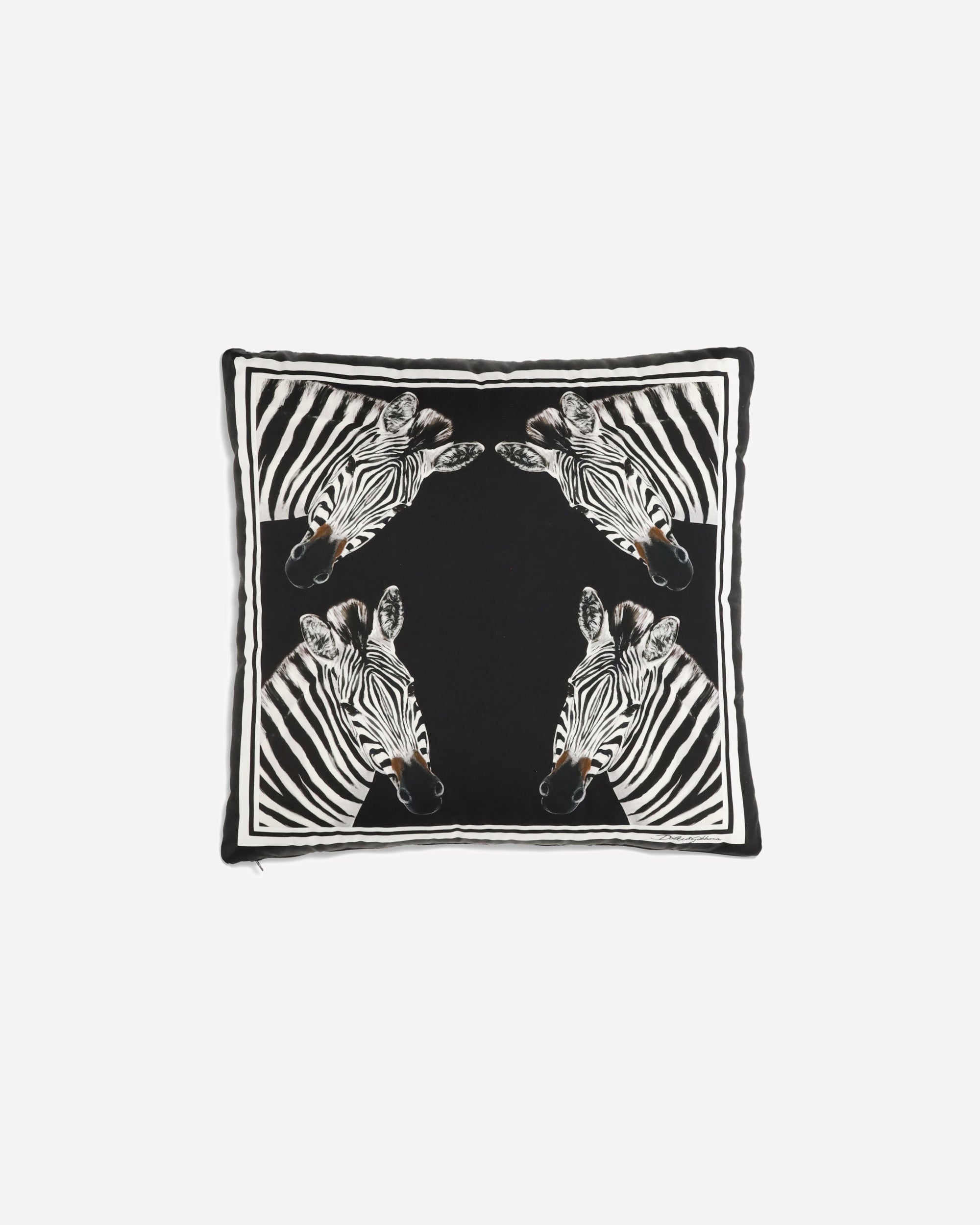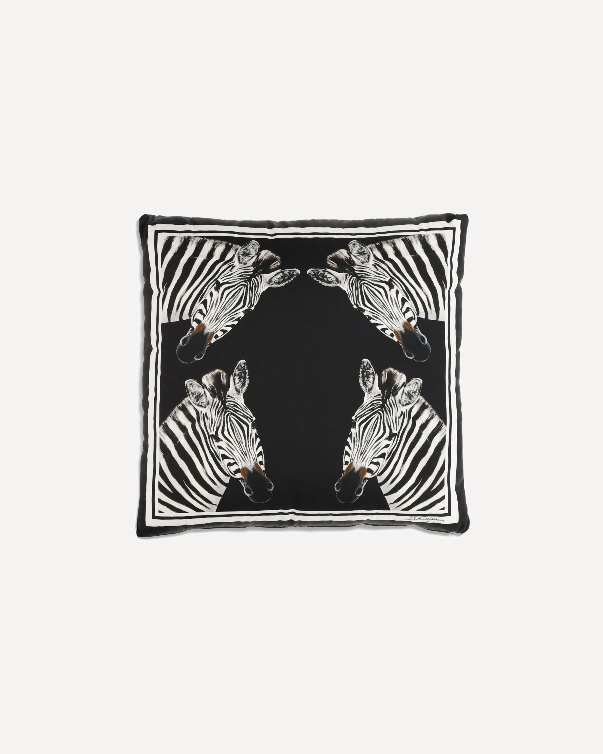 Il Cuscino in duchesse di cotone di Dolce&Gabbana è impreziosito da un motivo figurativo ispirato a una stampa foulard d’archivio, reinterpretata in chiave audace e ironica. Il tessuto duchesse dona struttura ed eleganza al complemento, mentre la ricca imbottitura e la chiusura a sacchetto ne completano il design con carattere e raffinatezza. Sfoderabile e dotato di chiusura a zip. Dimensioni: 45 x 45 cm.