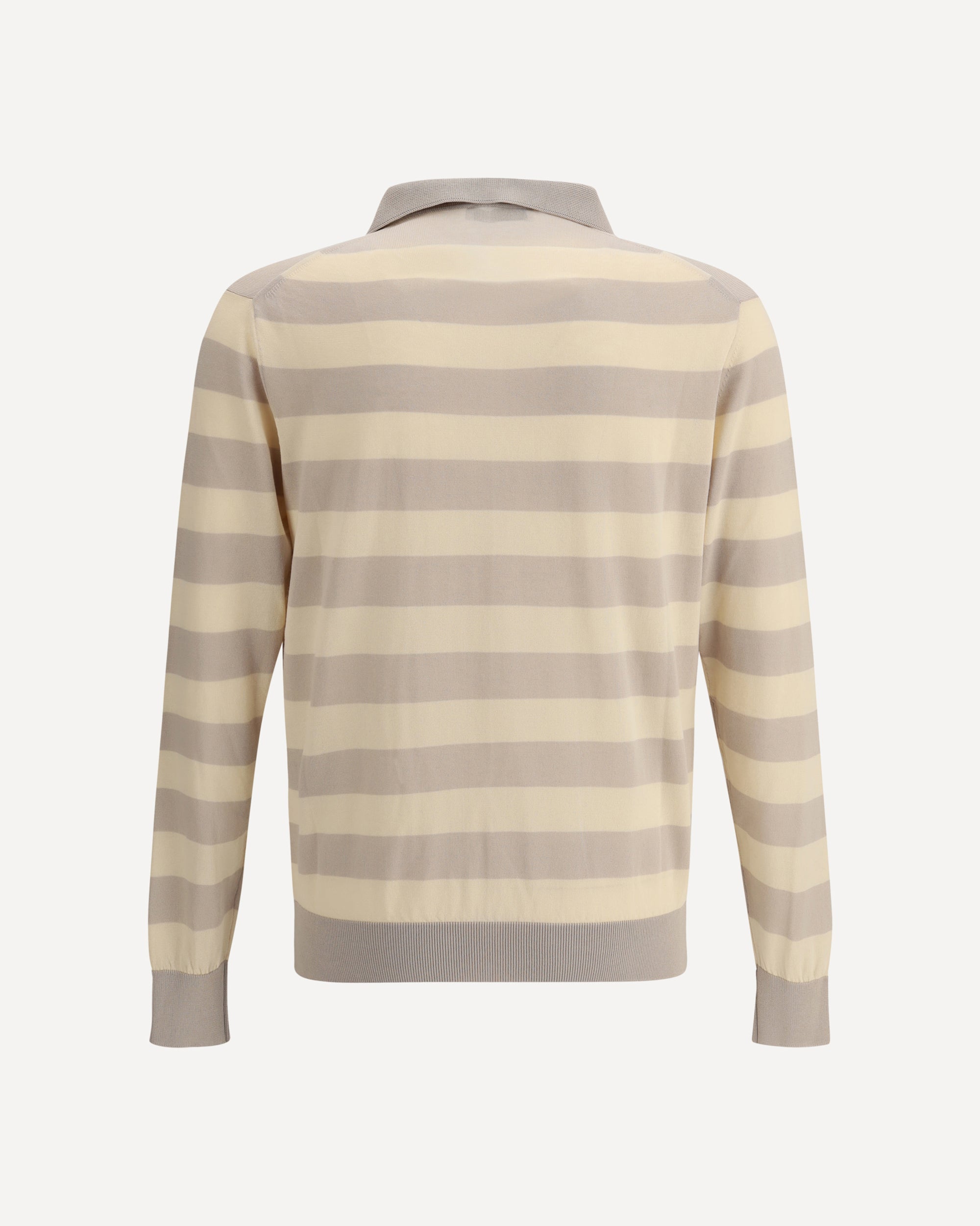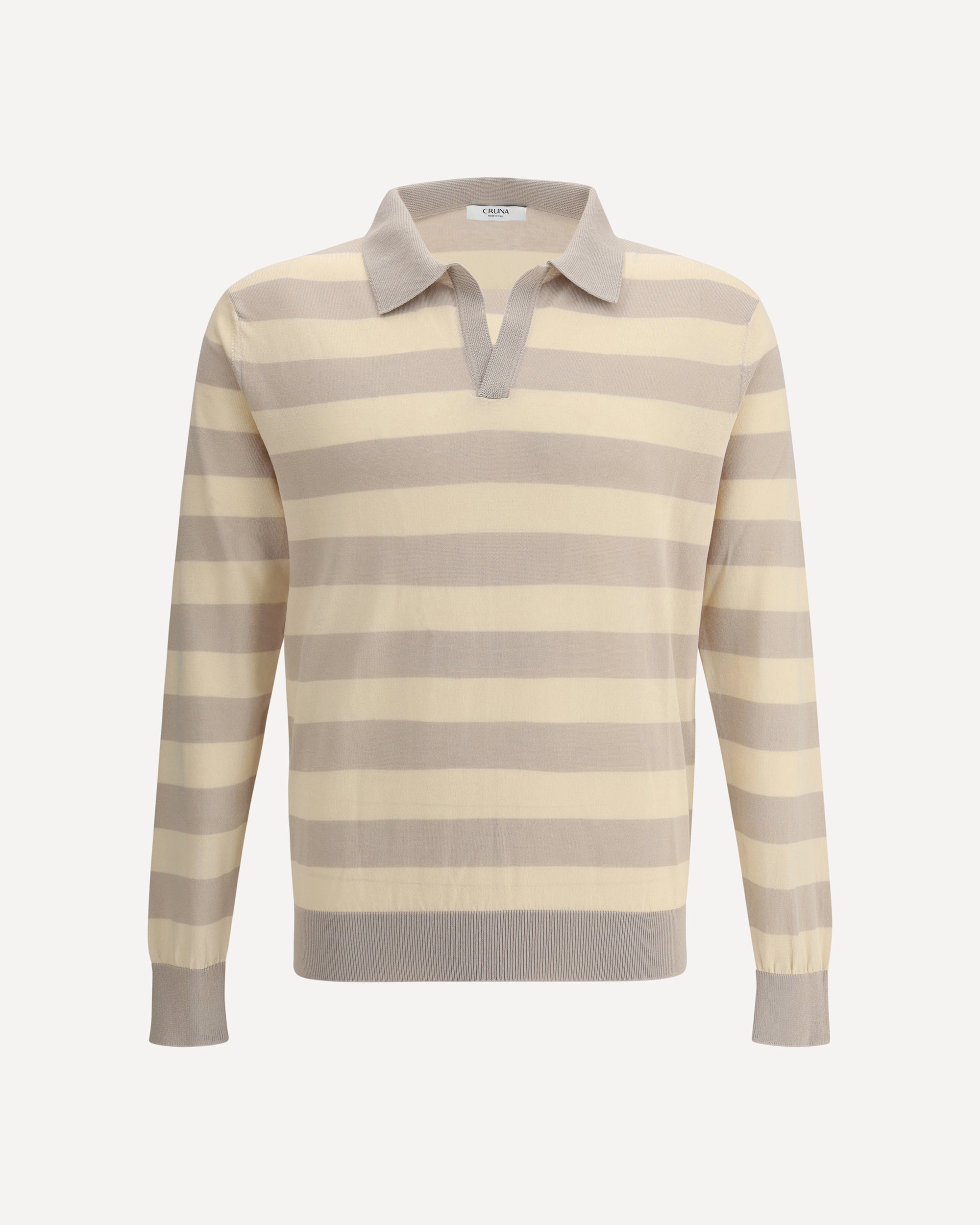 Maglia Polo Portofino in cotone di Cruna, con colletto classico e apertura sul fronte per un design elegante e funzionale. I polsini e l’orlo a costine garantiscono una vestibilità aderente e confortevole. La fantasia a righe orizzontali aggiunge un tocco di freschezza e modernità, rendendo questo capo perfetto per uno stile casual ma raffinato.