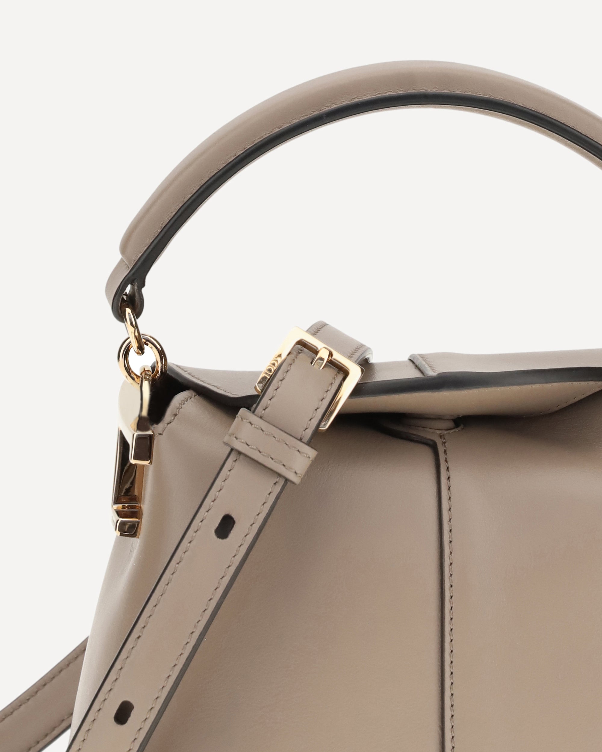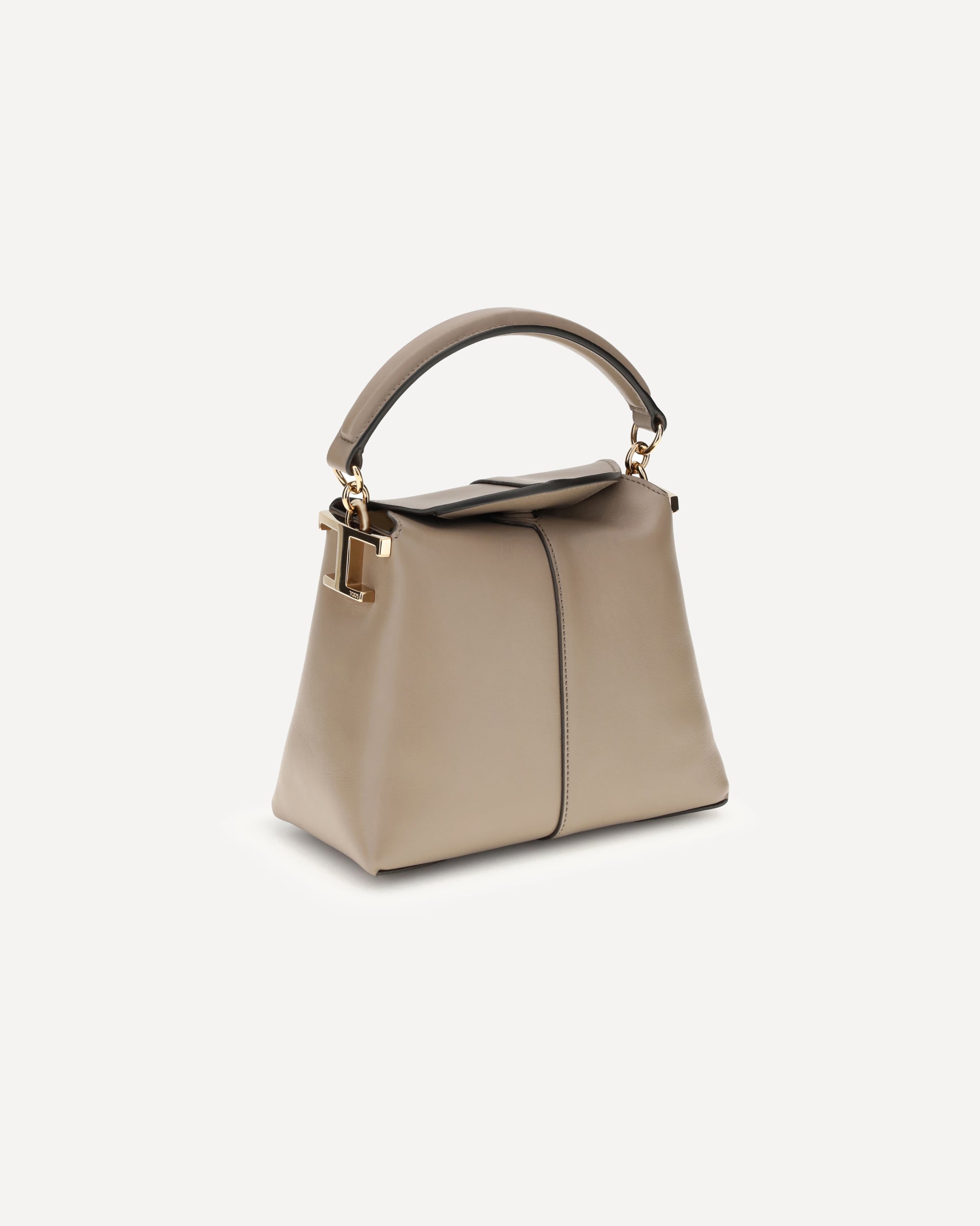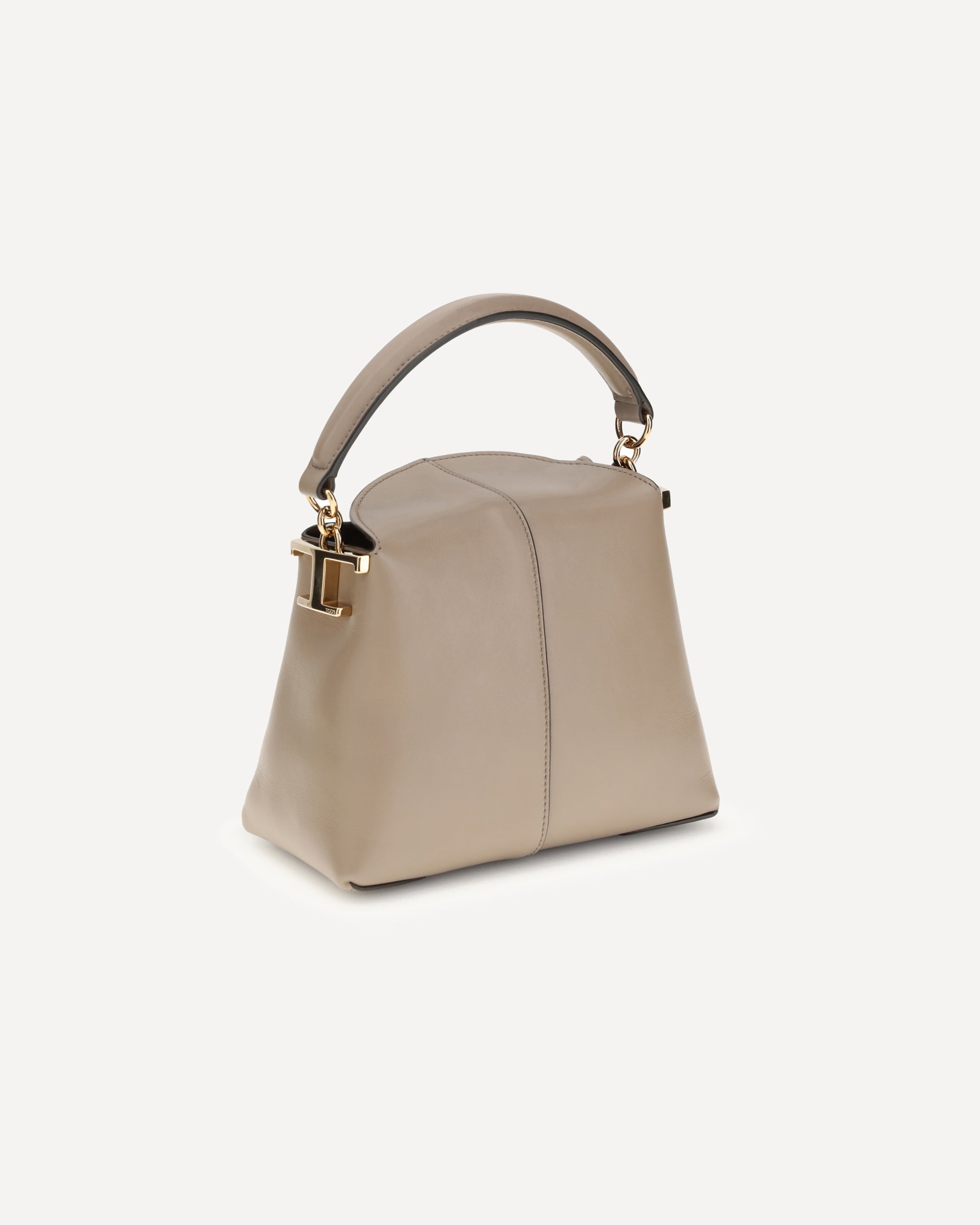 La Borsa a mano in pelle di Tod's presenta una silhouette a trapezio dal design elegante e strutturato. Dotata di un manico rigido, è arricchita da discreti loghi laterali e da una chiusura superiore a incastro che ne sottolinea lo stile raffinato e funzionale.