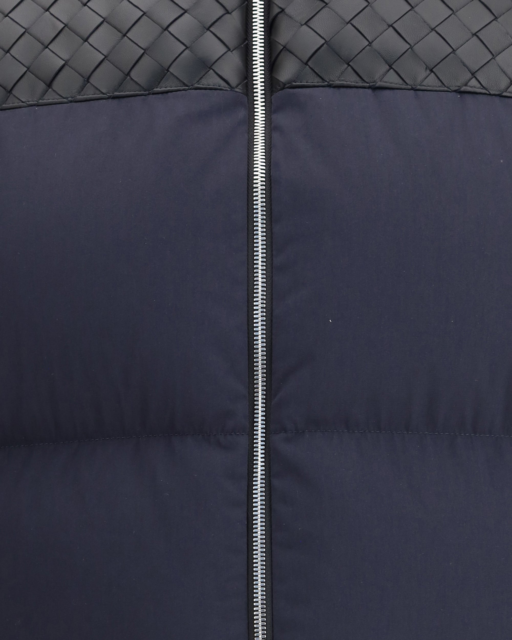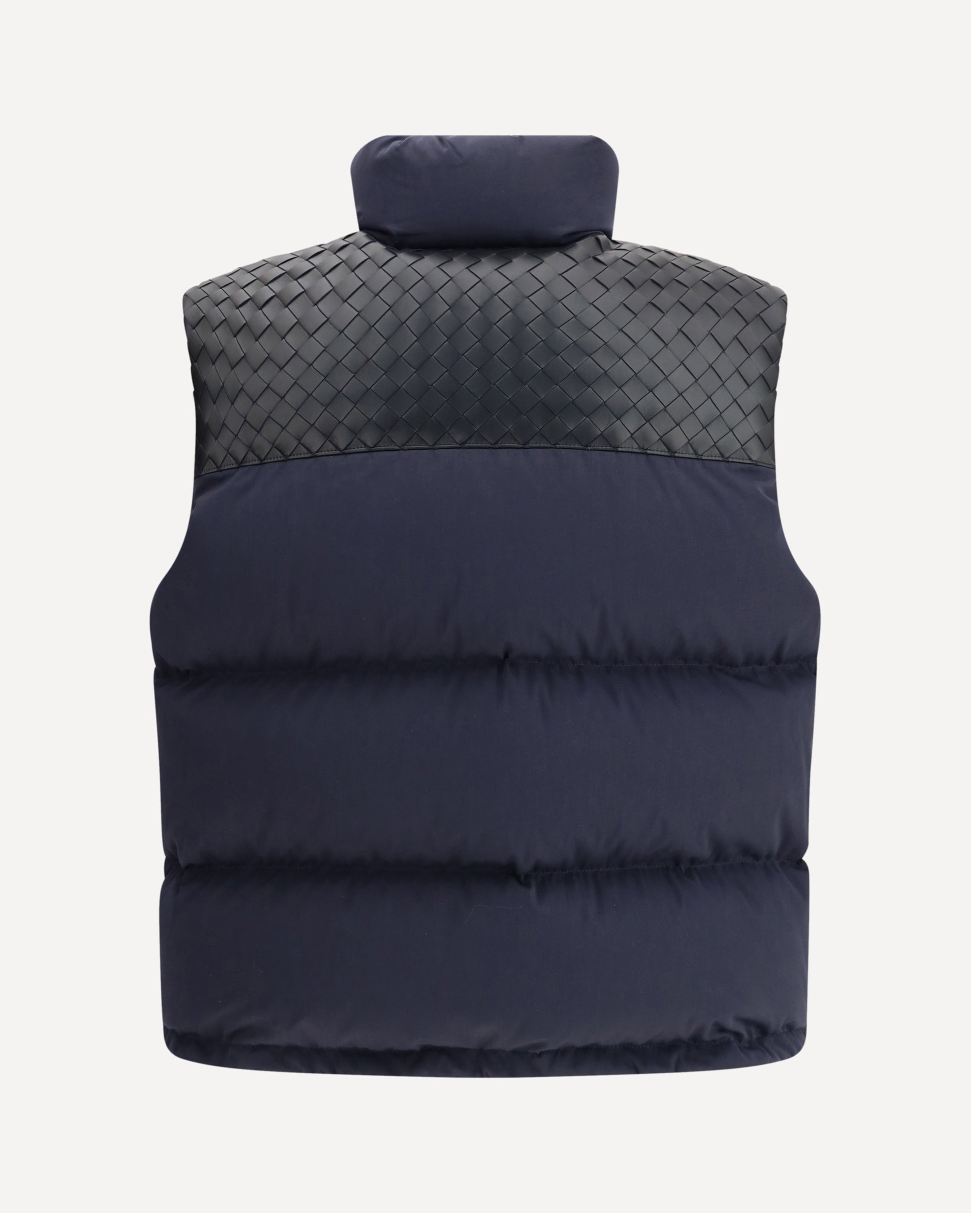 Il Gilet imbottito in popeline satinato biologico di Bottega Veneta unisce essenzialità e raffinatezza. La leggerezza dell’imbottitura in piuma incontra il dettaglio in pelle con motivo Intrecciato, cifra distintiva della Maison. La chiusura con zip e la fodera a contrasto ne sottolineano il carattere moderno e funzionale, mentre l’esclusiva targhetta interna racconta l’autenticità del design. Un capo versatile e sofisticato, perfetto per accompagnare con stile i passaggi di stagione.