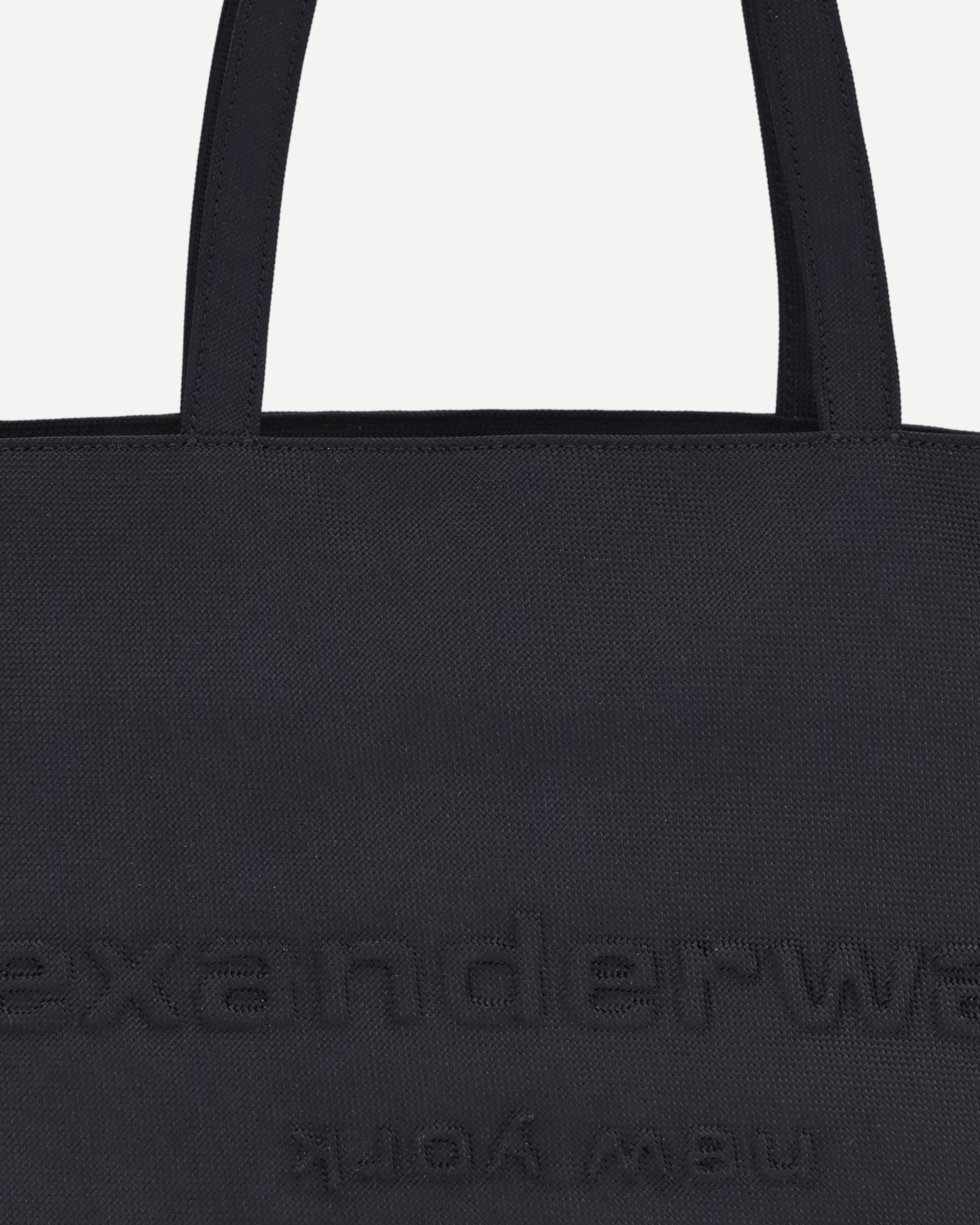 La Borsa Tote Punch di Alexander Wang combina un design minimalista a dettagli distintivi, come il logo goffrato sulla parte anteriore. Caratterizzata da una chiusura con nodo superiore e due tracolle piatte, offre una silhouette pulita e funzionale. L’ampio scomparto unico è arricchito da una tasca interna dedicata al laptop, insieme a un’applicazione con logo all’interno, rendendo questa tote perfetta per chi cerca stile e praticità in ogni occasione.