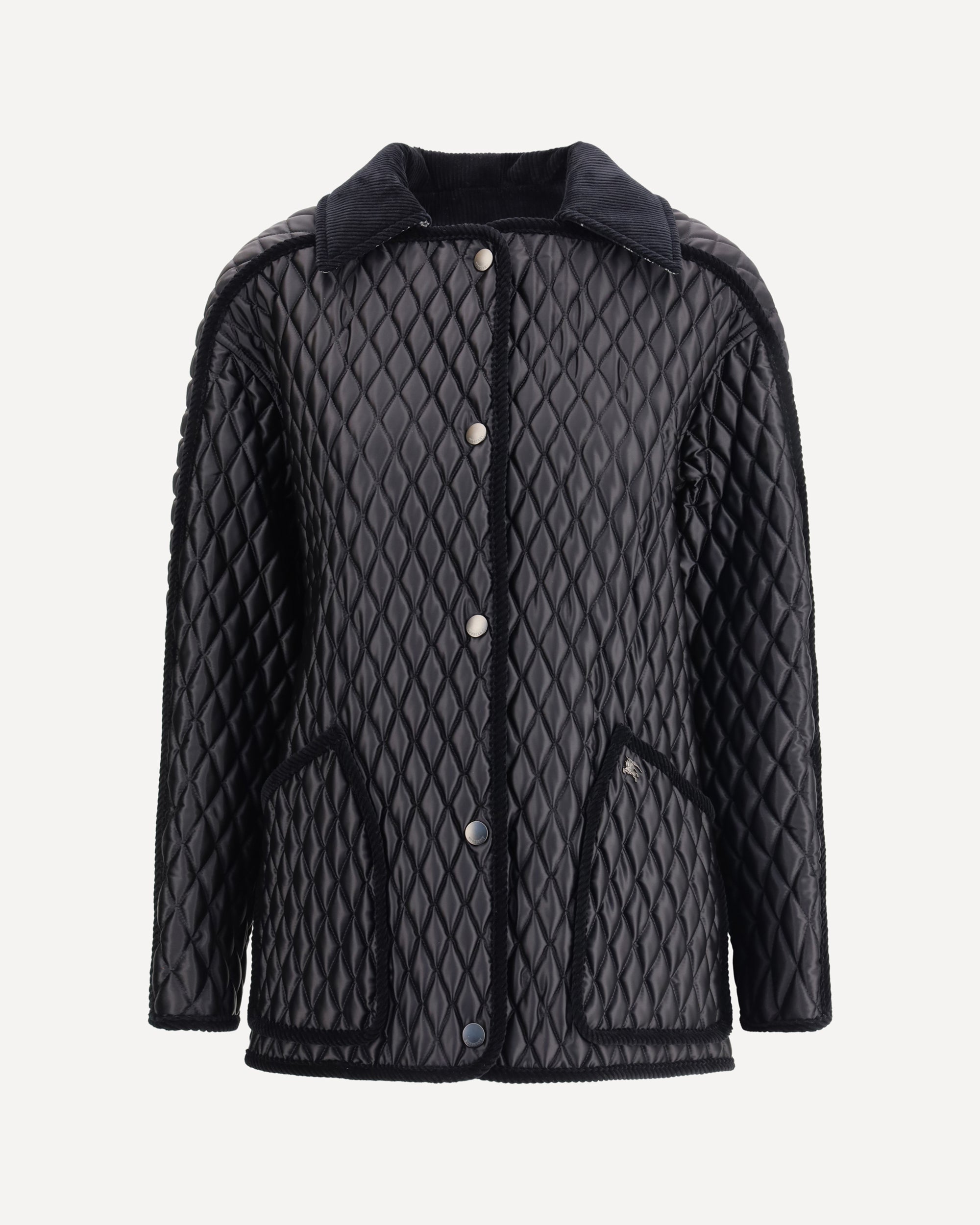 La giacca Floriston di Burberry è realizzata in nylon trapuntato con imbottitura leggera, coniugando funzionalità e stile contemporaneo. Caratterizzata da una silhouette corta e confortevole, presenta un colletto a camicia e una chiusura frontale con zip e bottoni a pressione. Le tasche anteriori applicate e gli spacchi posteriori con bottoni a pressione aggiungono praticità e movimento, mentre l’emblema metallico Equestrian Knight Design sulla tasca firma con eleganza l’identità del brand. Un capo versatile e raffinato, ideale per la mezza stagione e per un look casual sofisticato.