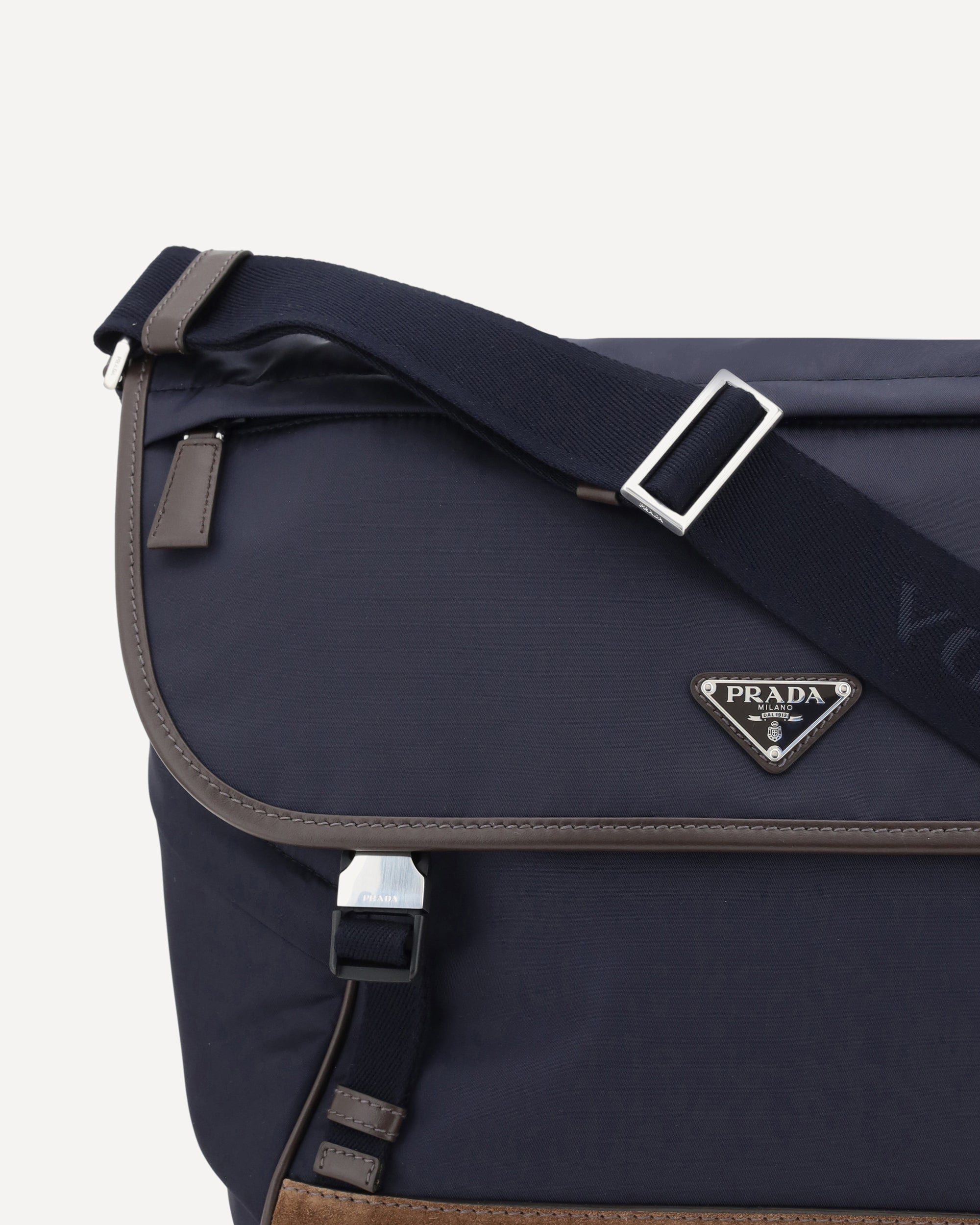 Borsa a Spalla in Re-Nylon di Prada, un materiale sostenibile e resistente. Dotata di tracolla regolabile per una vestibilità personalizzata, la borsa si chiude frontalmente con patta e fibbia per un tocco elegante e pratico. Sul pannello posteriore, è presente una tasca a filetto con cerniera, perfetta per piccoli oggetti. L'iconica placca triangolare logata è applicata sul fronte, aggiungendo il distintivo tocco Prada. All'interno, la borsa offre un unico scomparto, semplice ma funzionale, ideale per un look pratico e chic.