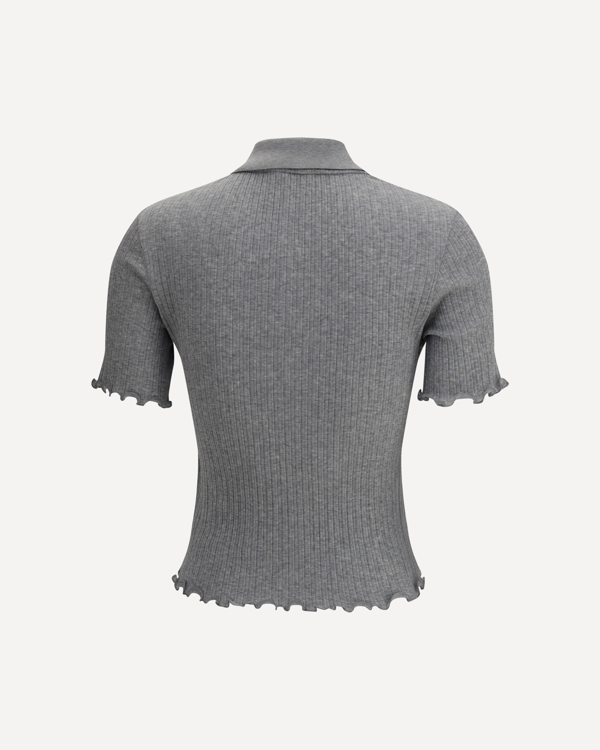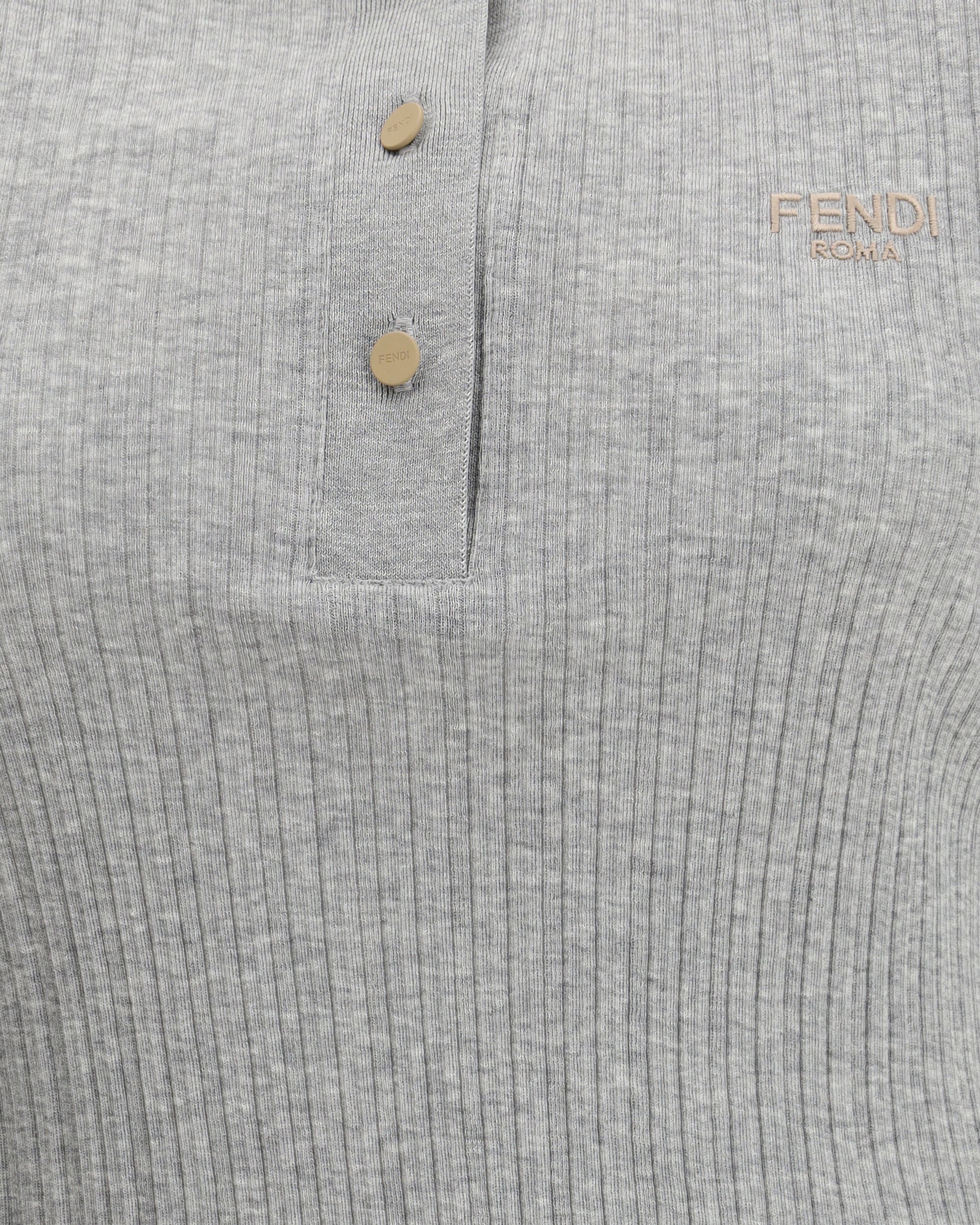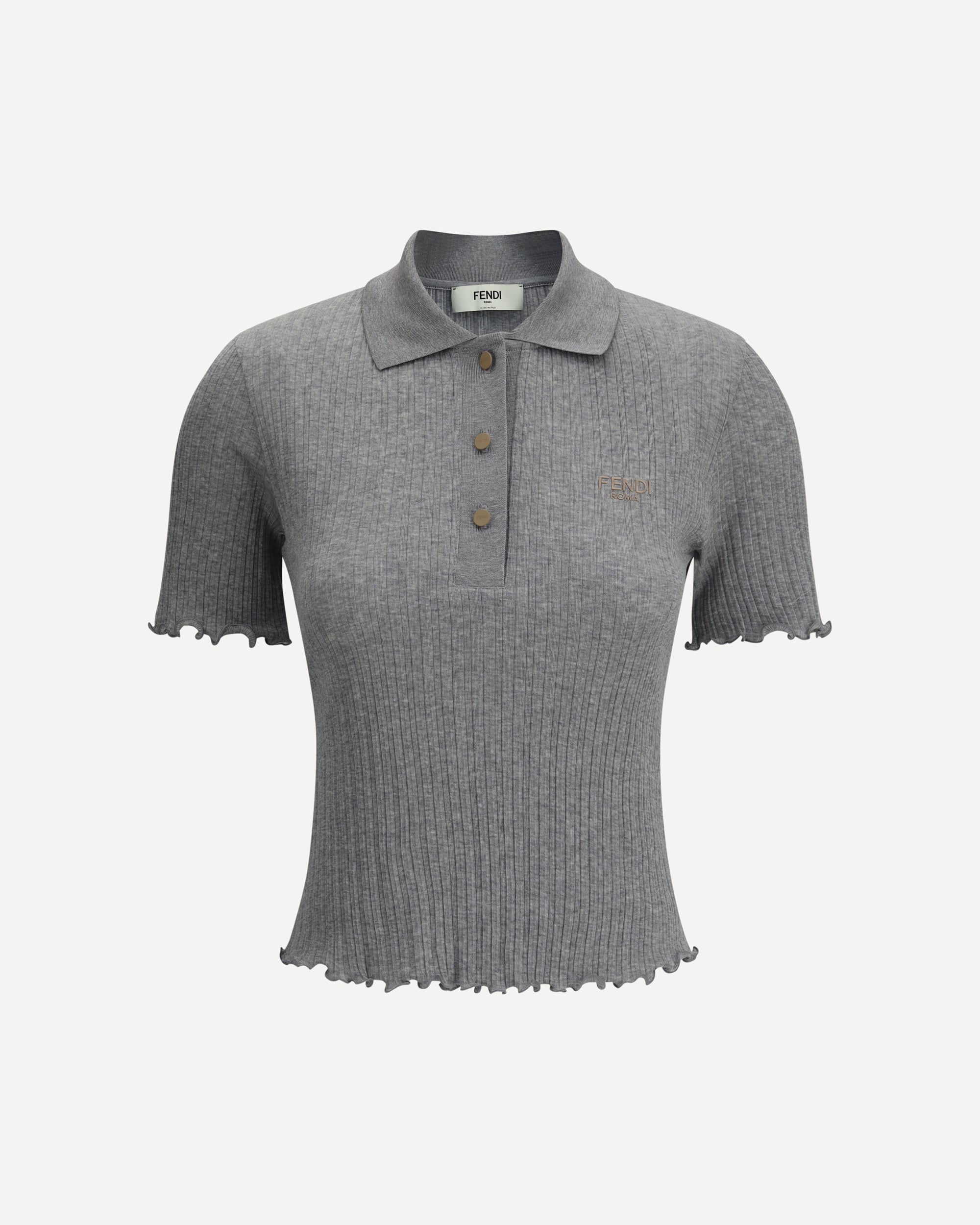 La Polo T-shirt di Fendi unisce linee classiche e dettagli distintivi in un design a costine elegante e contemporaneo. Caratterizzata da un colletto classico a costine, chiusura frontale con tre bottoni e orli a lattuga, è completata dalla firma del brand cucita sul fronte, per un tocco iconico e raffinato.