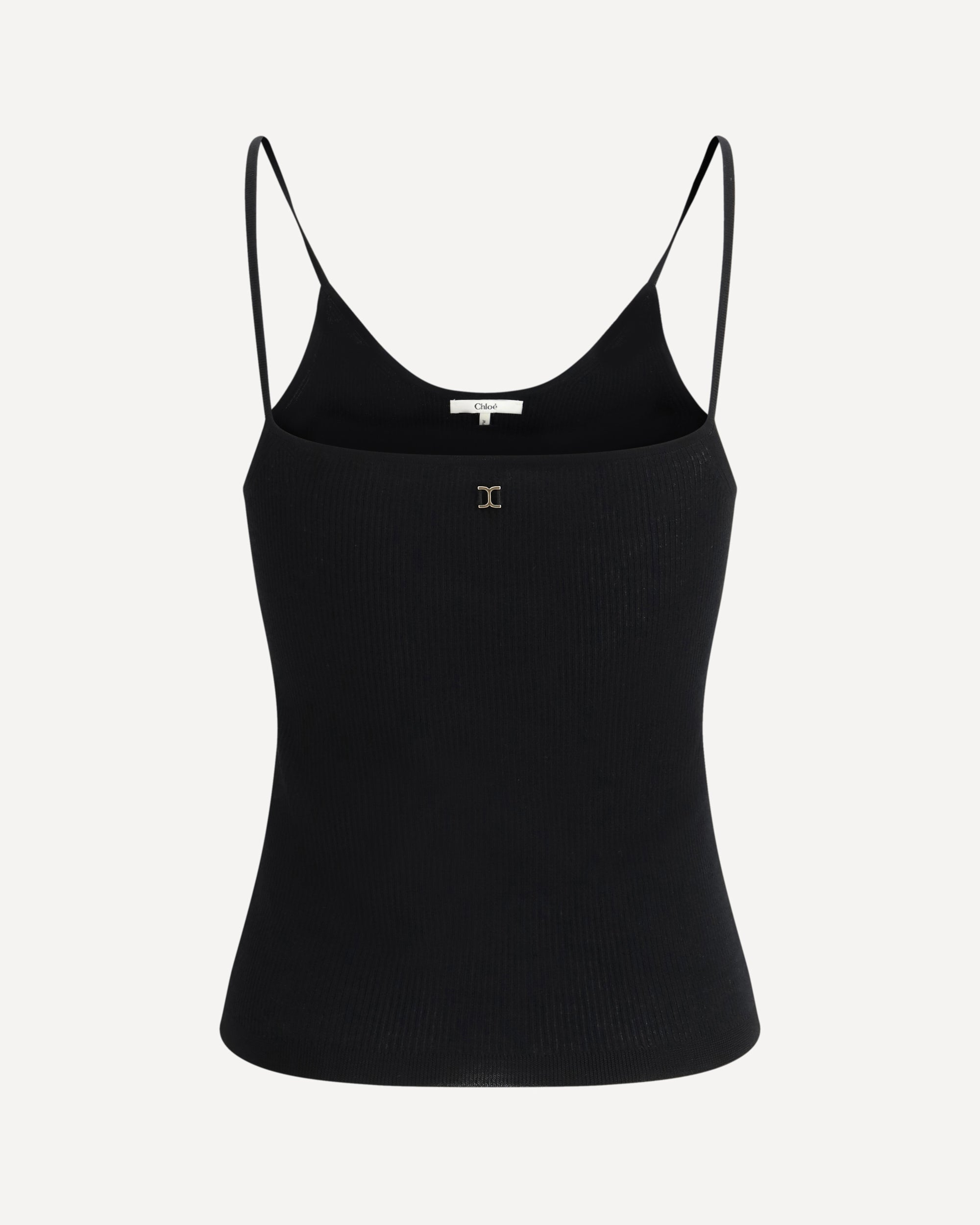 Il Top in lana di Chloé presenta spalline sottili e un design a costine che ne esalta la struttura. La placca tridimensionale con l'iconico logo del brand applicata a contrasto sul fronte aggiunge un tocco distintivo e raffinato. La fantasia monocromo rende il capo versatile ed elegante, perfetto per creare un look sofisticato e moderno.