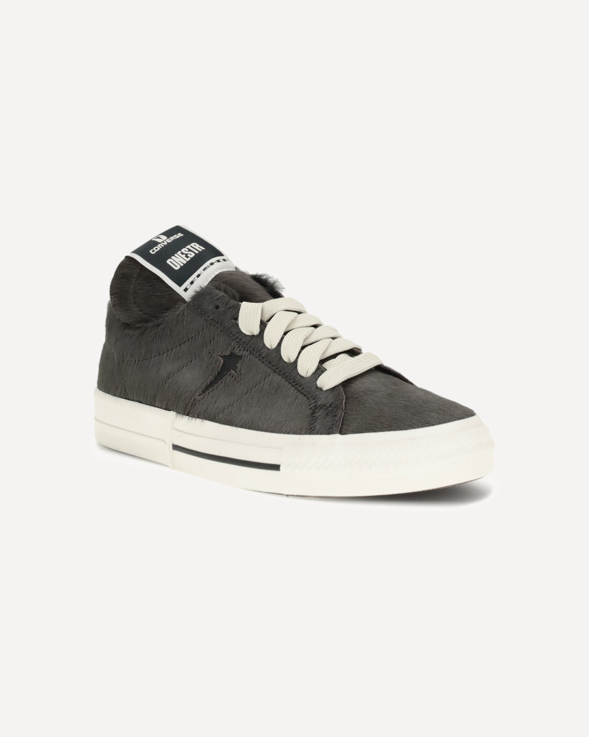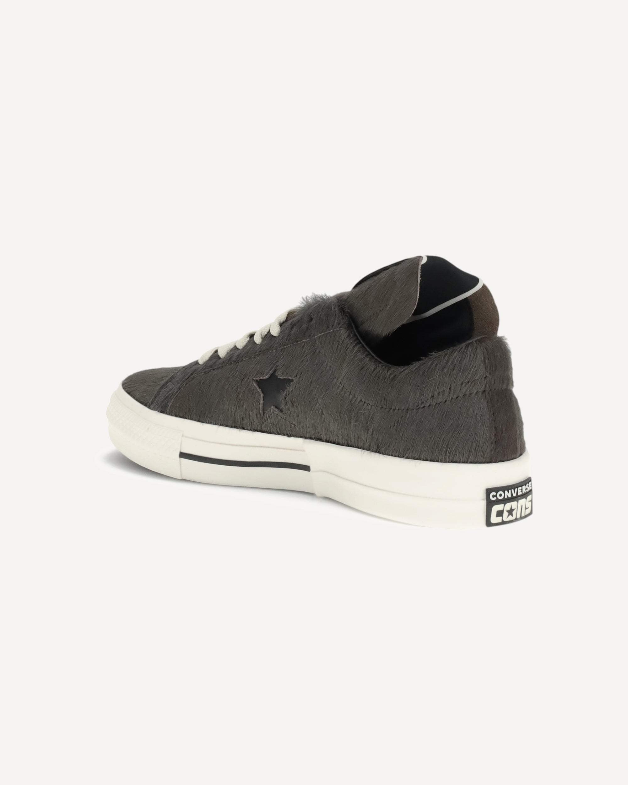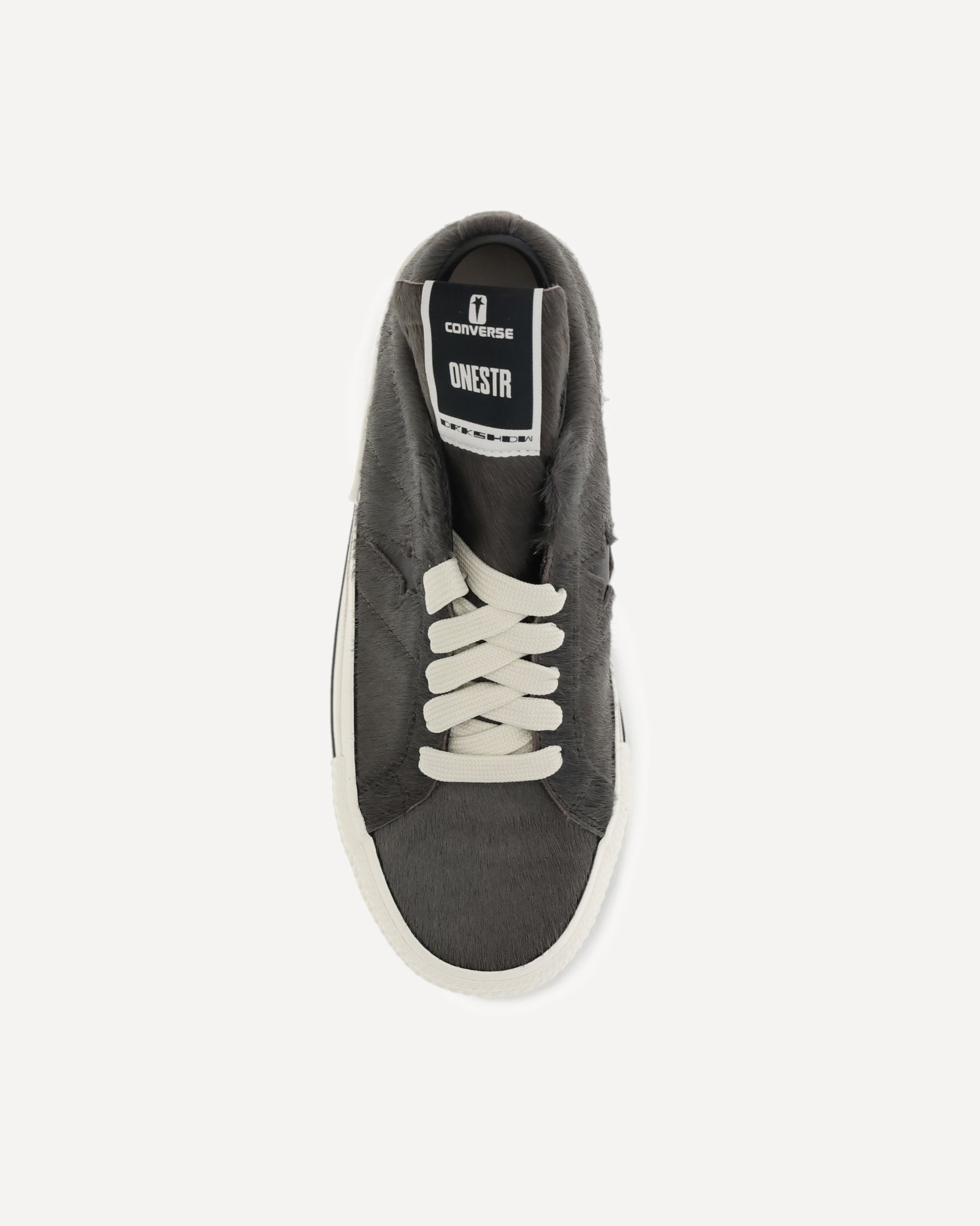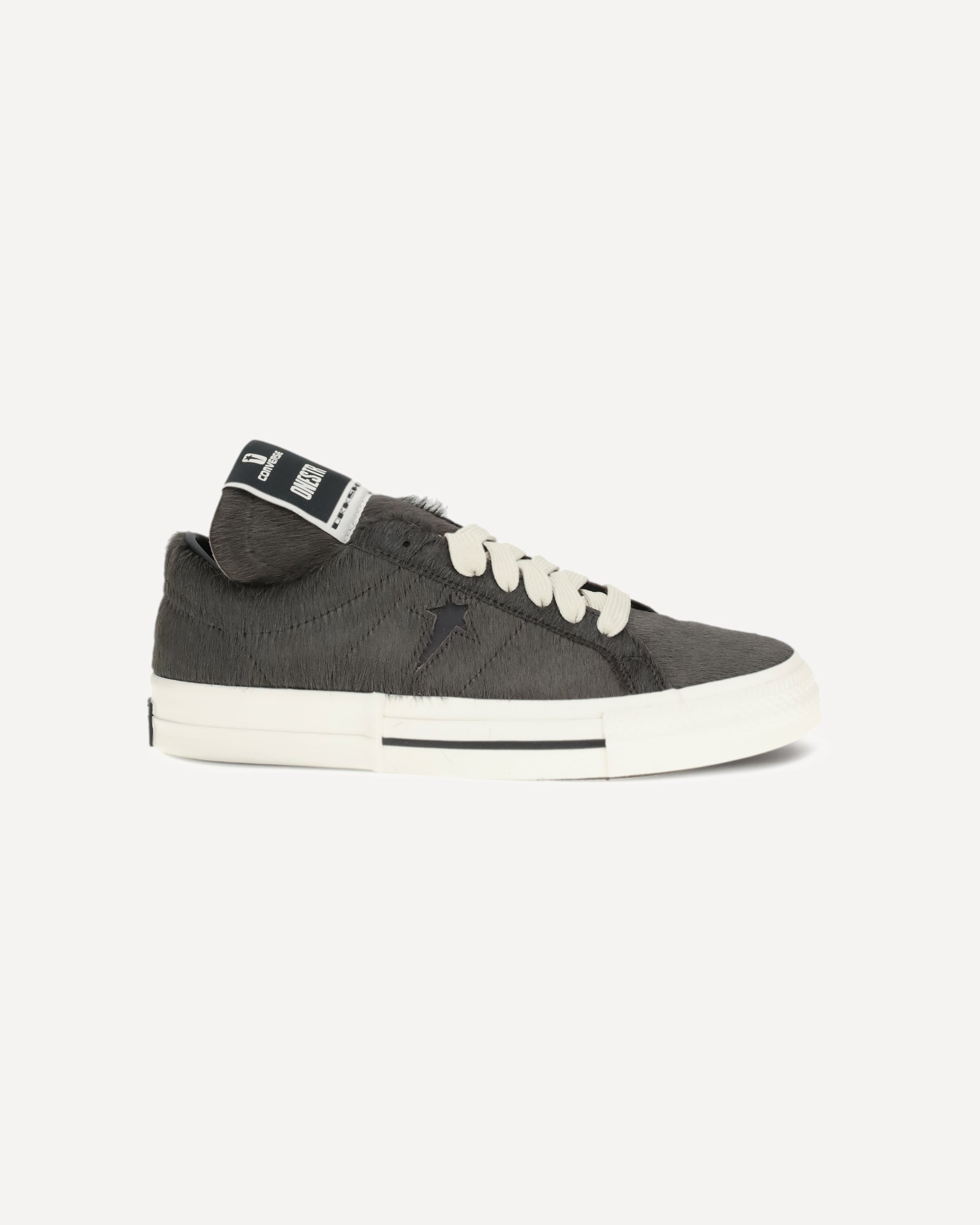 Le Sneakers di Rick Owens X Converse X DRKSHDW reinterpretano il classico modello Converse Skateboard One Star con proporzioni volutamente esagerate e un’estetica d’avanguardia. La tomaia, realizzata in pregiata pelle di vacca con pelo, è arricchita dalla distintiva linguetta allungata firmata DRKSHDW, completata da un’etichetta tessuta con il nome del modello. La suola, ispirata alla One Star originale, è abbinata a un tallone in gomma modellata tipico dello stile di Rick Owens. Dettagli esclusivi come la targa DRKSHDW con logo a pentagramma sul tallone sinistro e il logo Converse All Star su quello destro rendono queste sneaker un perfetto equilibrio tra design iconico e sperimentazione contemporanea.