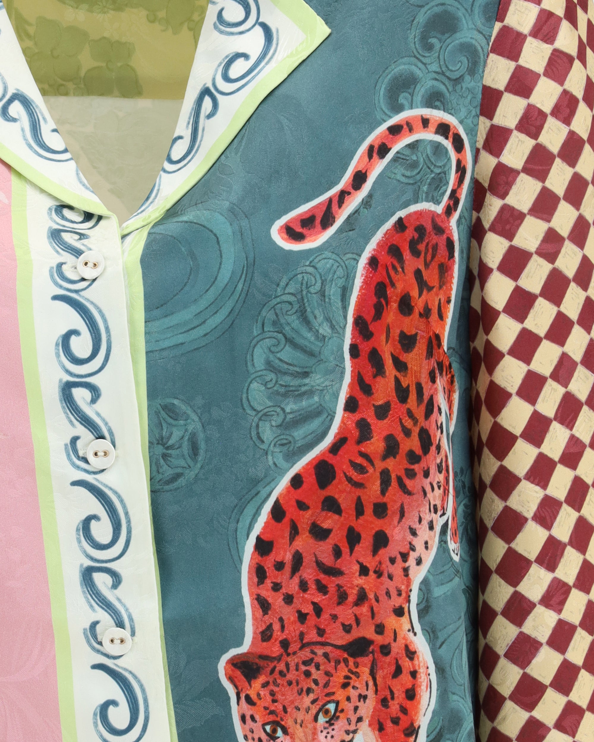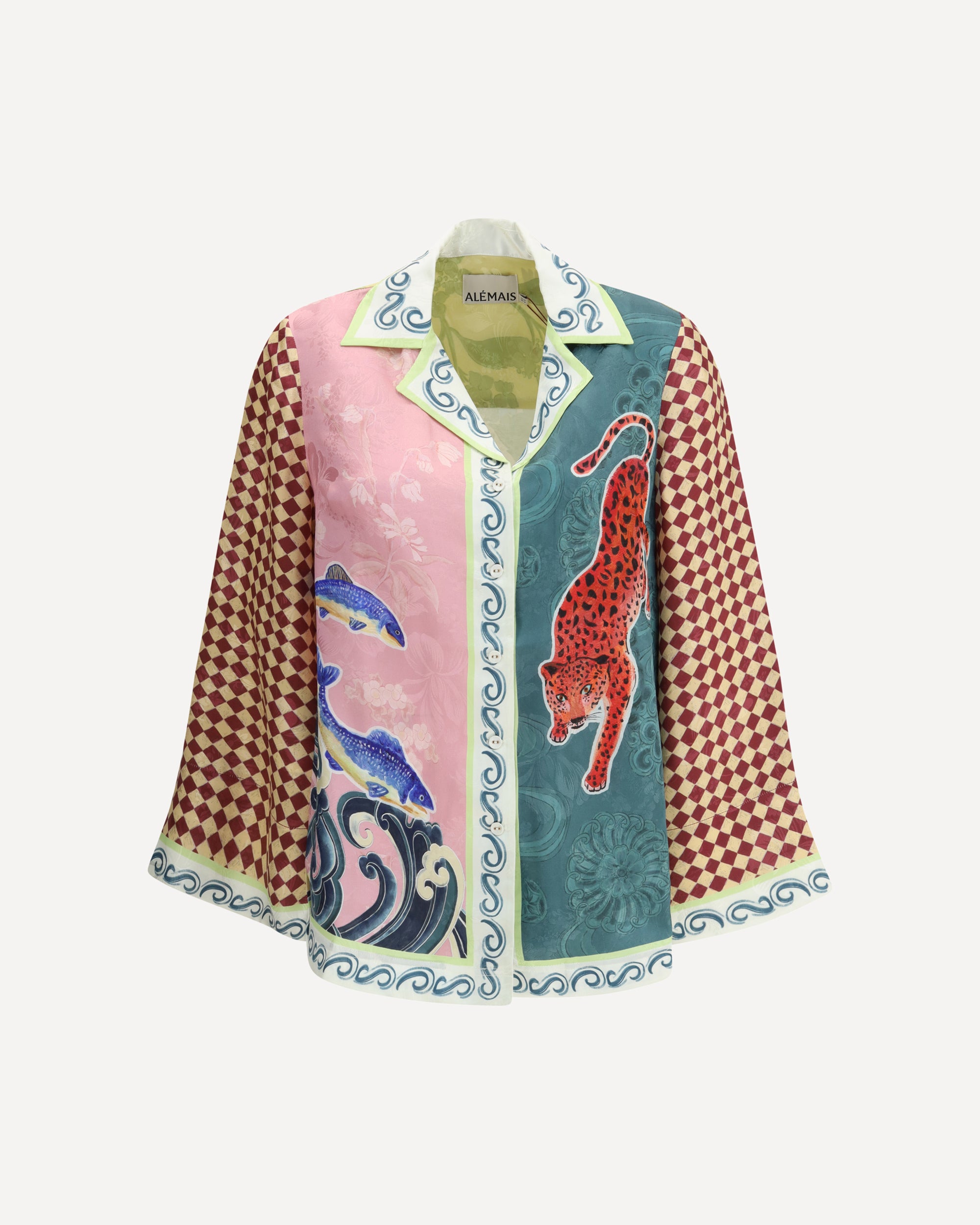 La Camicia Rochester di Alemais è un capo audace e dal carattere distintivo. Presenta un colletto da campeggio a punta che richiama uno stile rilassato e rétro, bilanciato dall’eleganza dell’abbottonatura coperta. La grafica eclettica stampata all-over aggiunge un tocco artistico e vibrante, rendendo questa camicia perfetta per chi desidera esprimere personalità attraverso il proprio stile.
