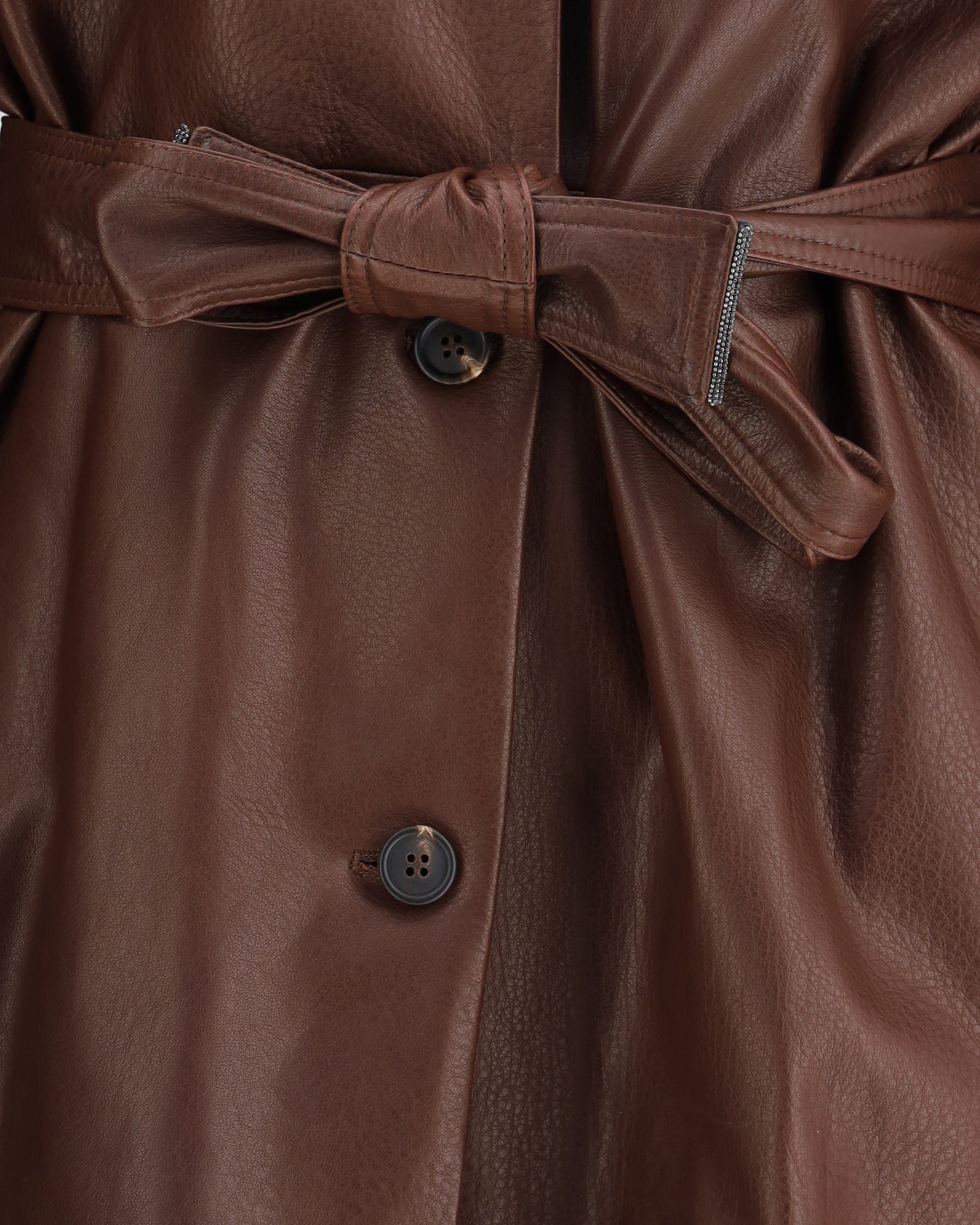 La Giacca sahariana in pelle di Brunello Cucinelli è un capo dal design versatile e raffinato, che fonde il fascino del classico con un tocco di modernità. Il colletto classico e la chiusura frontale con bottoni ne definiscono la linea elegante, mentre le due tasche applicate sul fronte e le tasche laterali a filetto offrono praticità senza rinunciare allo stile. La fusciacca annodabile in vita aggiunge un dettaglio femminile e sofisticato, permettendo di personalizzare la vestibilità per una silhouette definita.