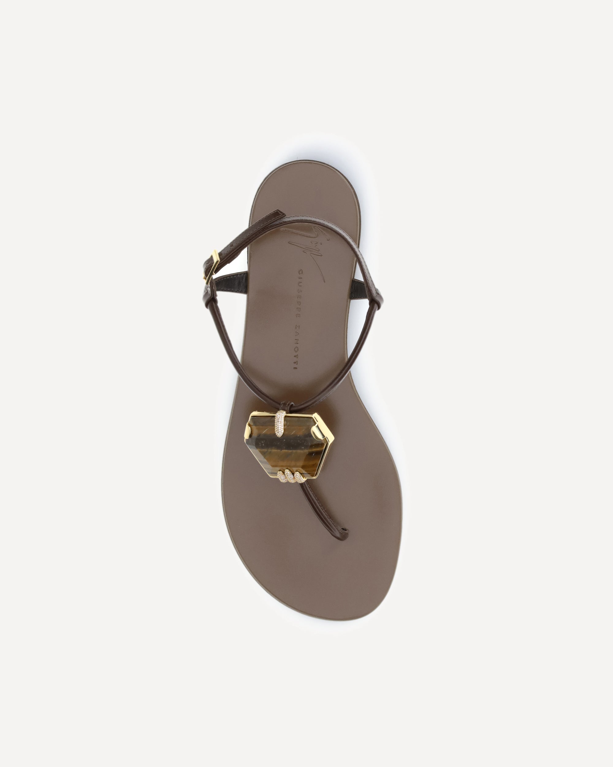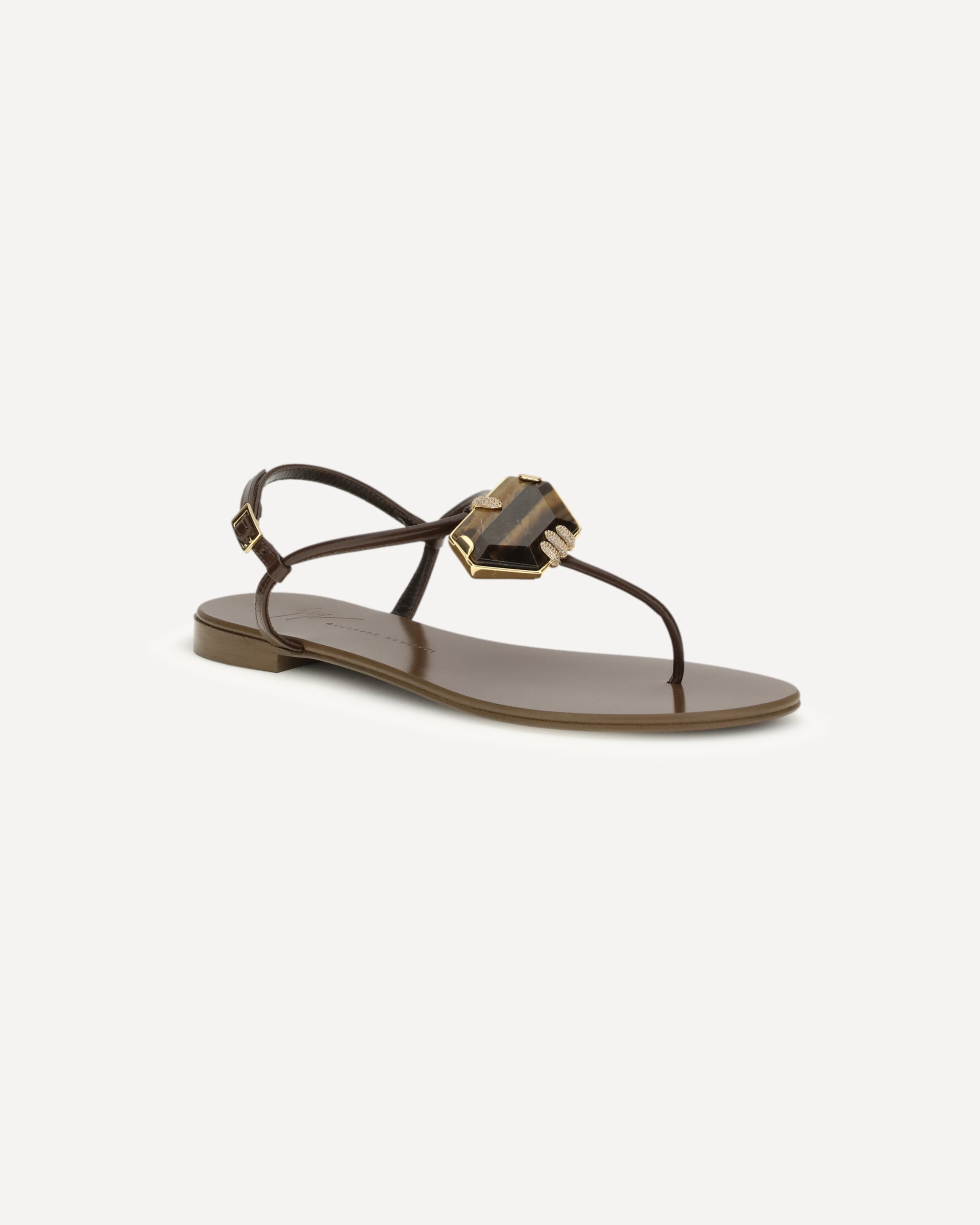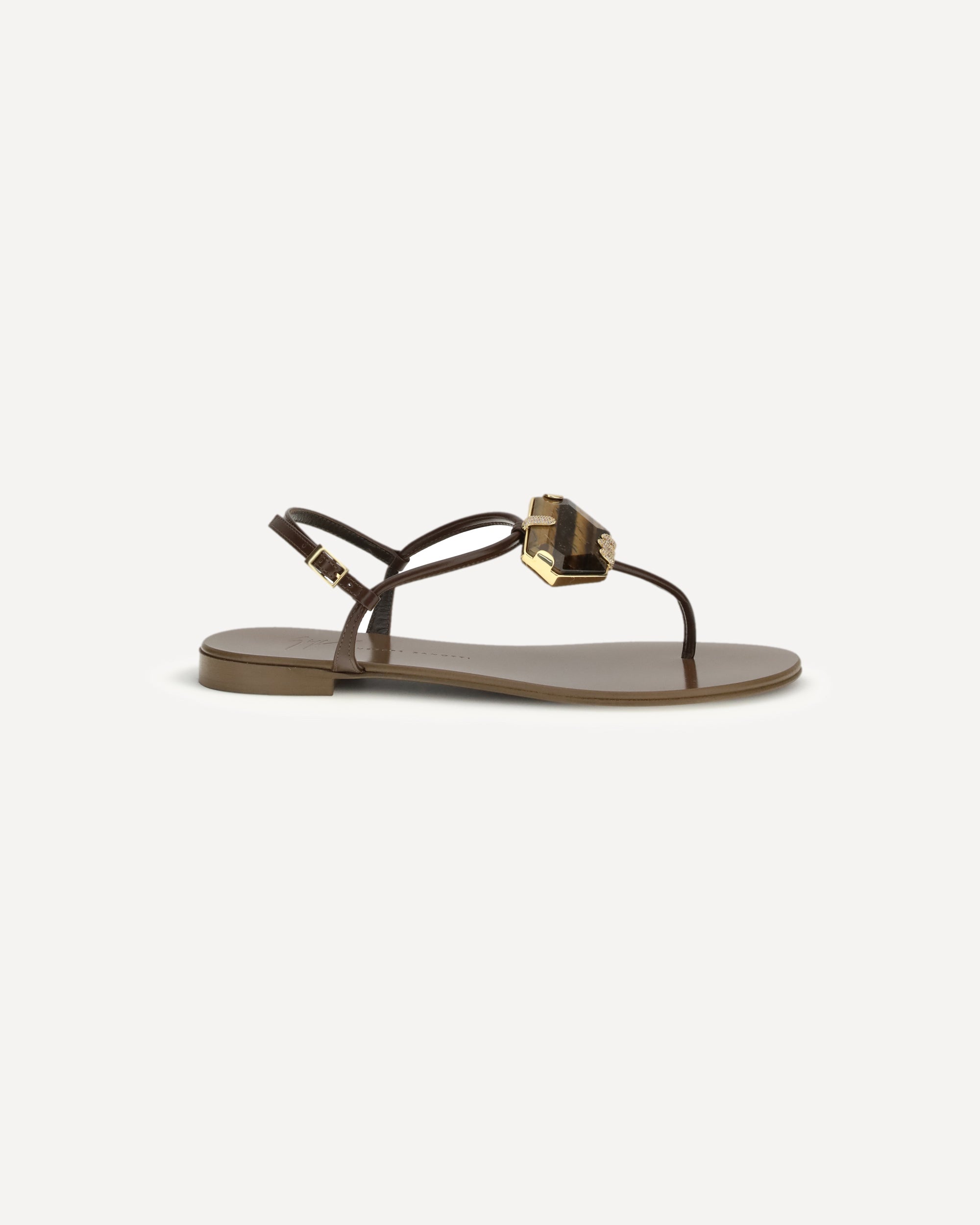 I Sandali Pia Muse di Giuseppe Zanotti sono flat infradito in pelle, caratterizzati da un dettaglio maxi pietra che aggiunge un tocco di eleganza. Il cinturino regolabile con fibbia metallica garantisce una vestibilità perfetta, mentre la soletta ricoperta in pelle offre comfort e stile in ogni passo. Un design sofisticato che unisce raffinatezza e praticità.