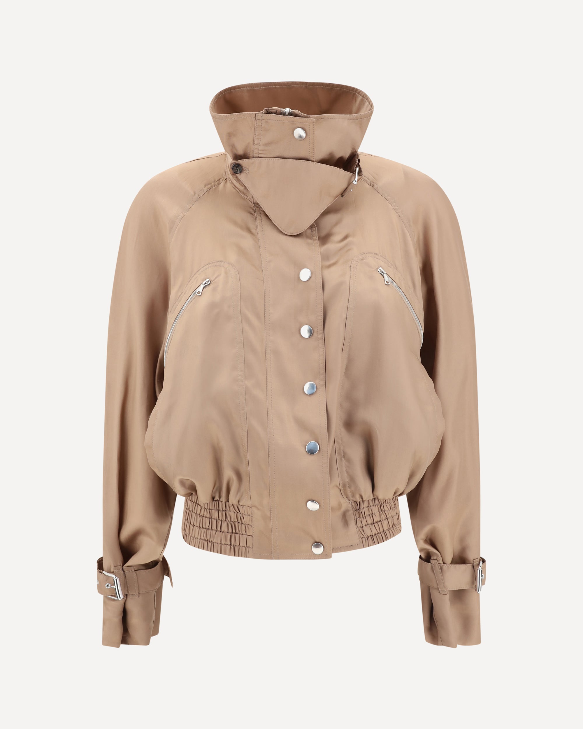 La Giacca satinata di Dries Van Noten è un capo elegante e versatile, caratterizzato da una chiusura frontale con zip e bottoni automatici che ne enfatizzano la funzionalità e lo stile. L'orlo elasticizzato e i polsini con cinturini conferiscono una vestibilità moderna e raffinata, mentre le due tasche laterali a filetto e le due tasche frontali offrono praticità senza rinunciare all'estetica. Il design satinato aggiunge un tocco di lusso, rendendo questa giacca perfetta per chi cerca un look sofisticato e contemporaneo.