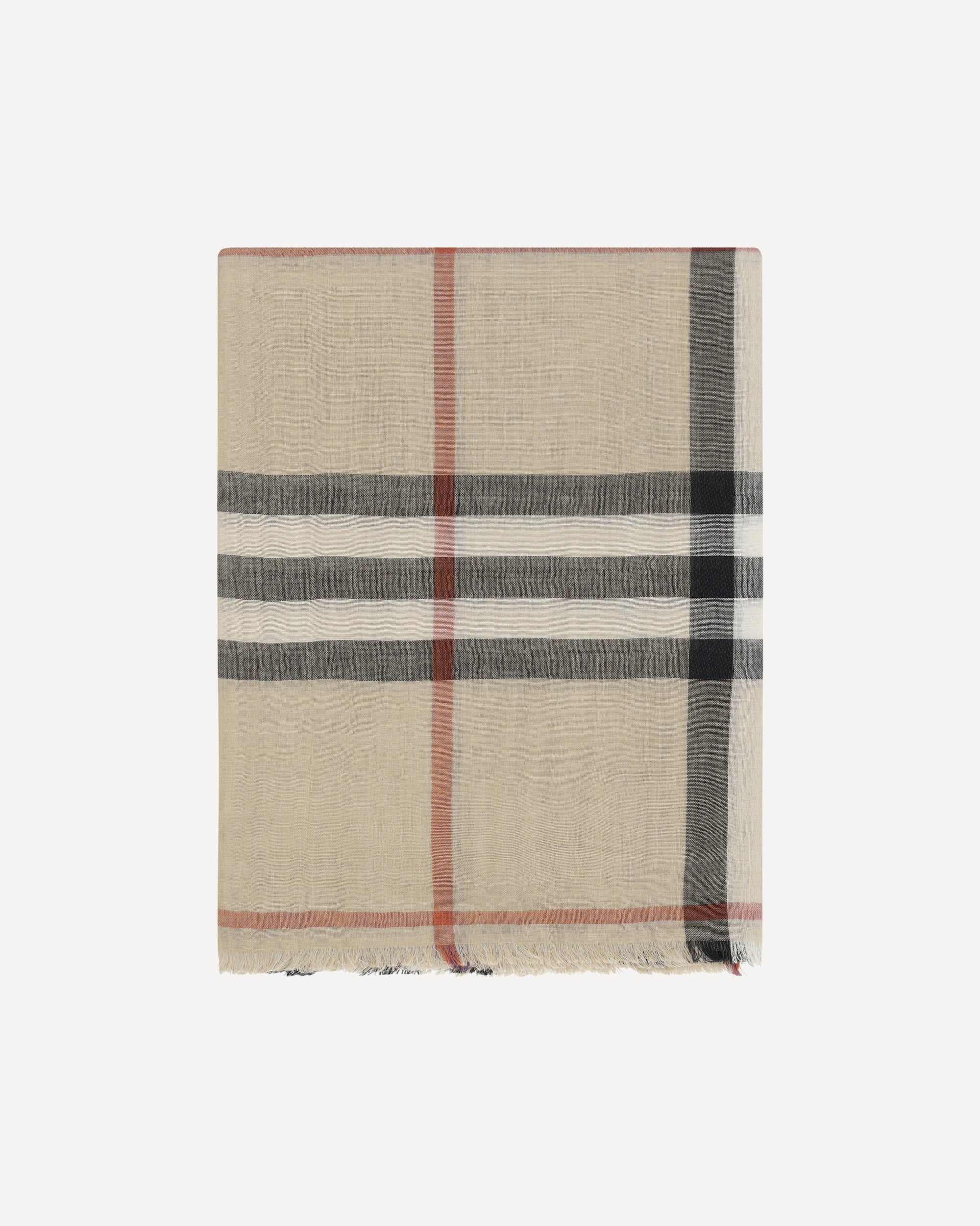 Sciarpa di Burberry, iconica fantasia Archivio Check ripetuta all-over, orli sfrangiati.