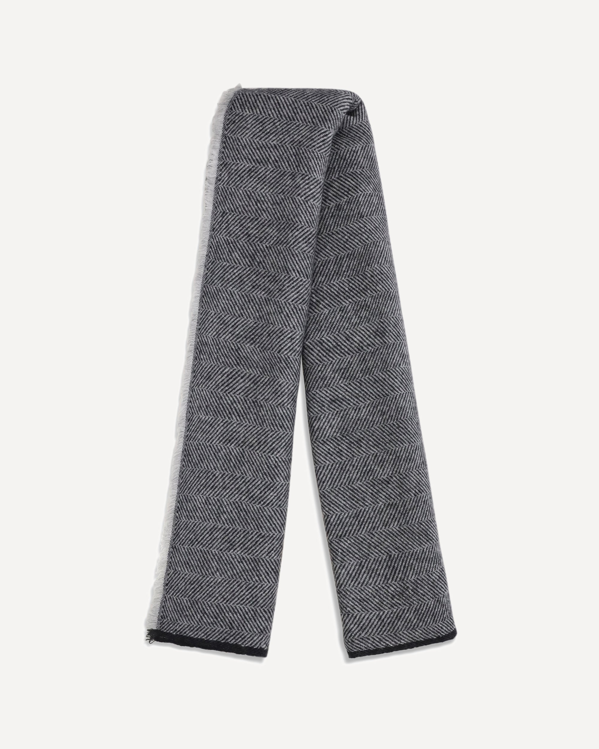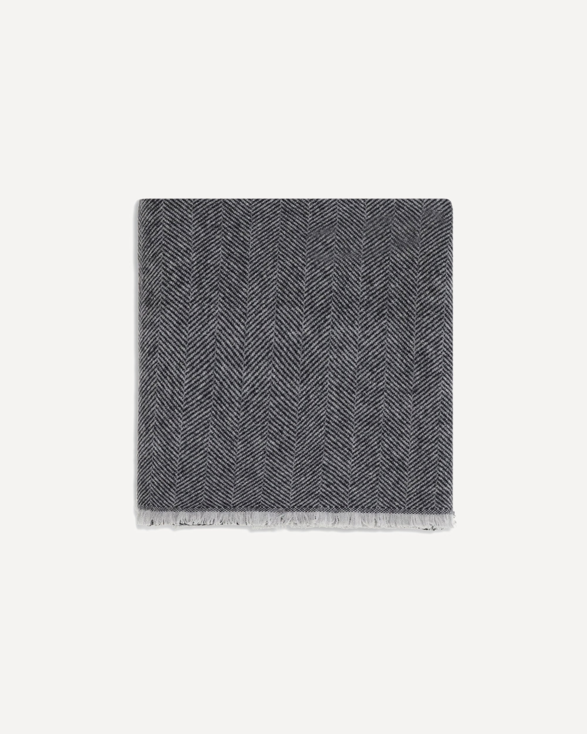 La Sciarpa in cashmere di Brunello Cucinelli unisce calore e raffinatezza in un accessorio iconico della Maison. Realizzata in un pregiato mix di cashmere e lana, presenta una fantasia spigata che valorizza la texture del tessuto, mentre gli orli sfrangiati aggiungono un tocco di eleganza disinvolta e contemporanea.