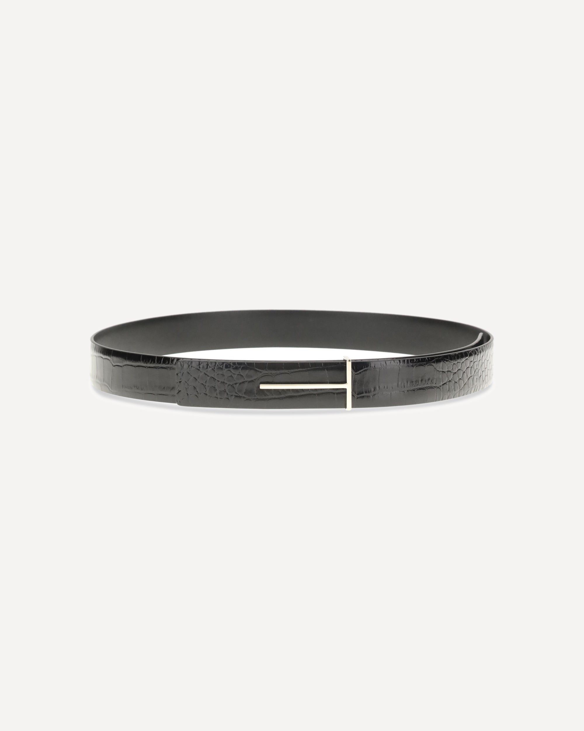 La Cintura con effetto coccodrillo di Tom Ford unisce rigore e ricercatezza in una linea essenziale. Realizzata in pelle di capra con goffratura croc, presenta una fibbia che definisce il punto vita con precisione sofisticata. Un accessorio pensato per completare il guardaroba con l’eleganza distintiva della maison.