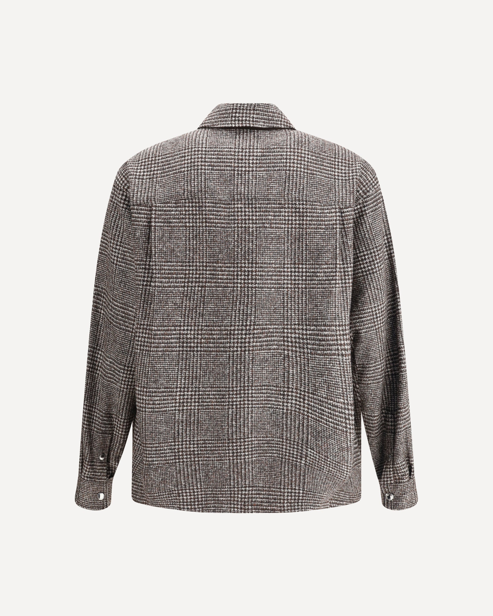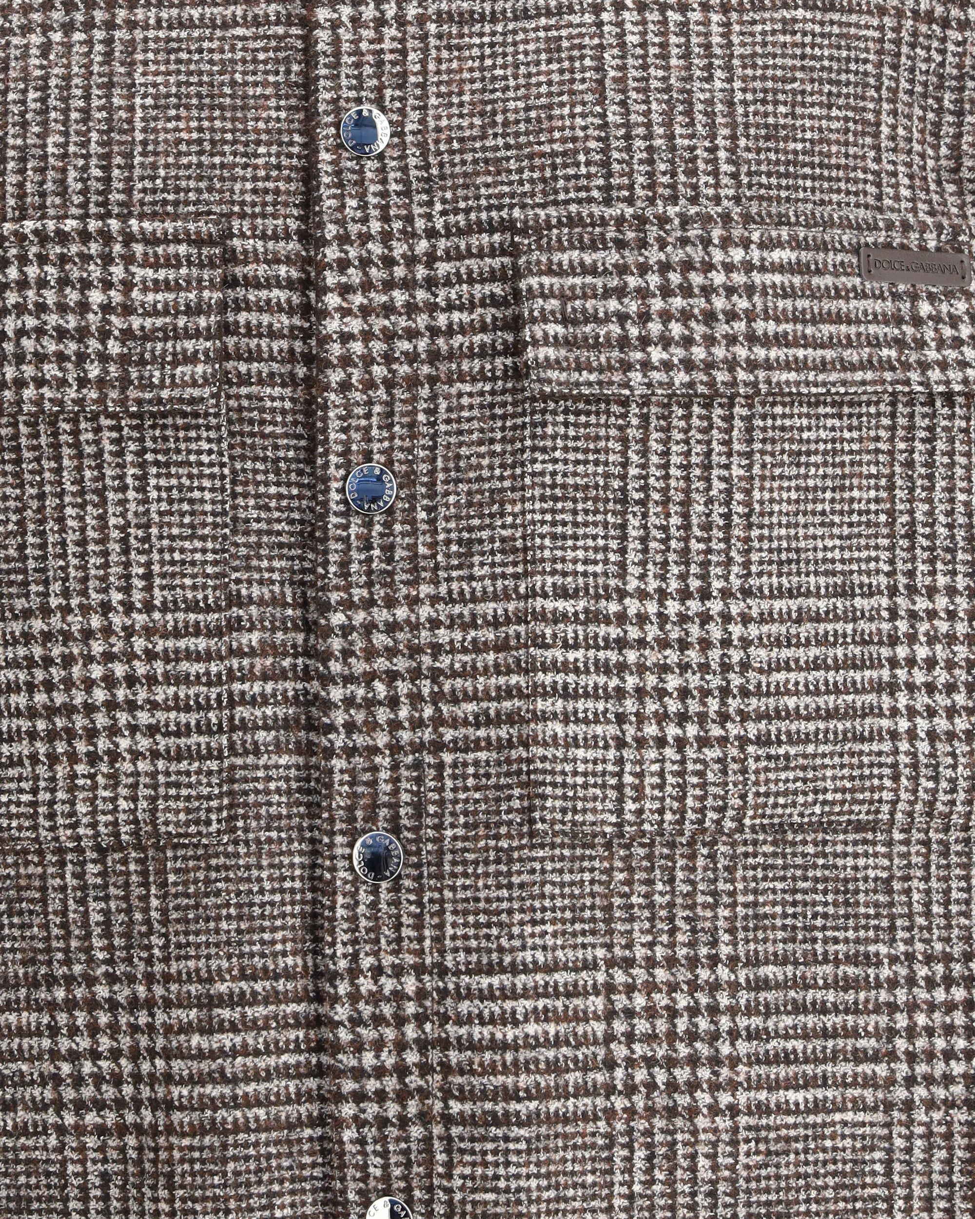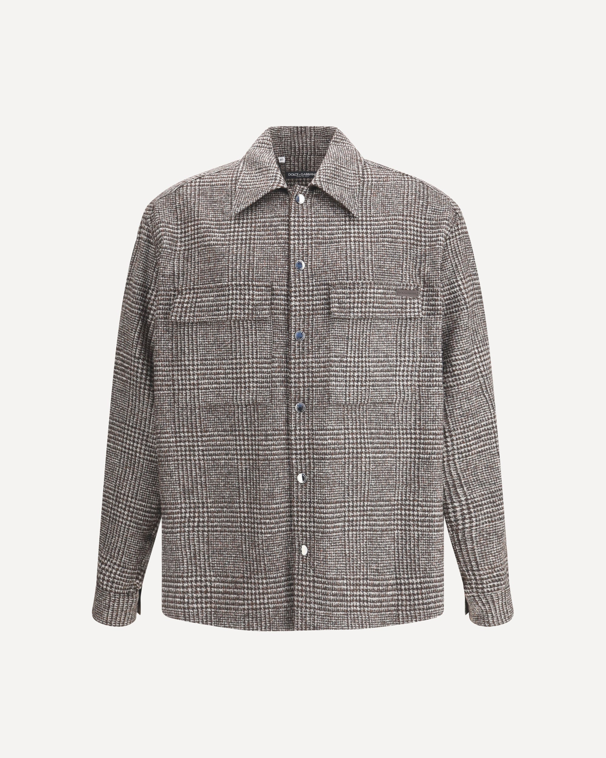 La Camicia over di Dolce & Gabbana è realizzata in un tessuto pregiato di lana e alpaca con fantasia effetto tweed , che regala al capo un carattere deciso e sofisticato. La vestibilità over e la spalla scesa donano un volume moderno e rilassato, mentre le maniche lunghe con polso smussato aggiungono un dettaglio sartoriale di grande raffinatezza.