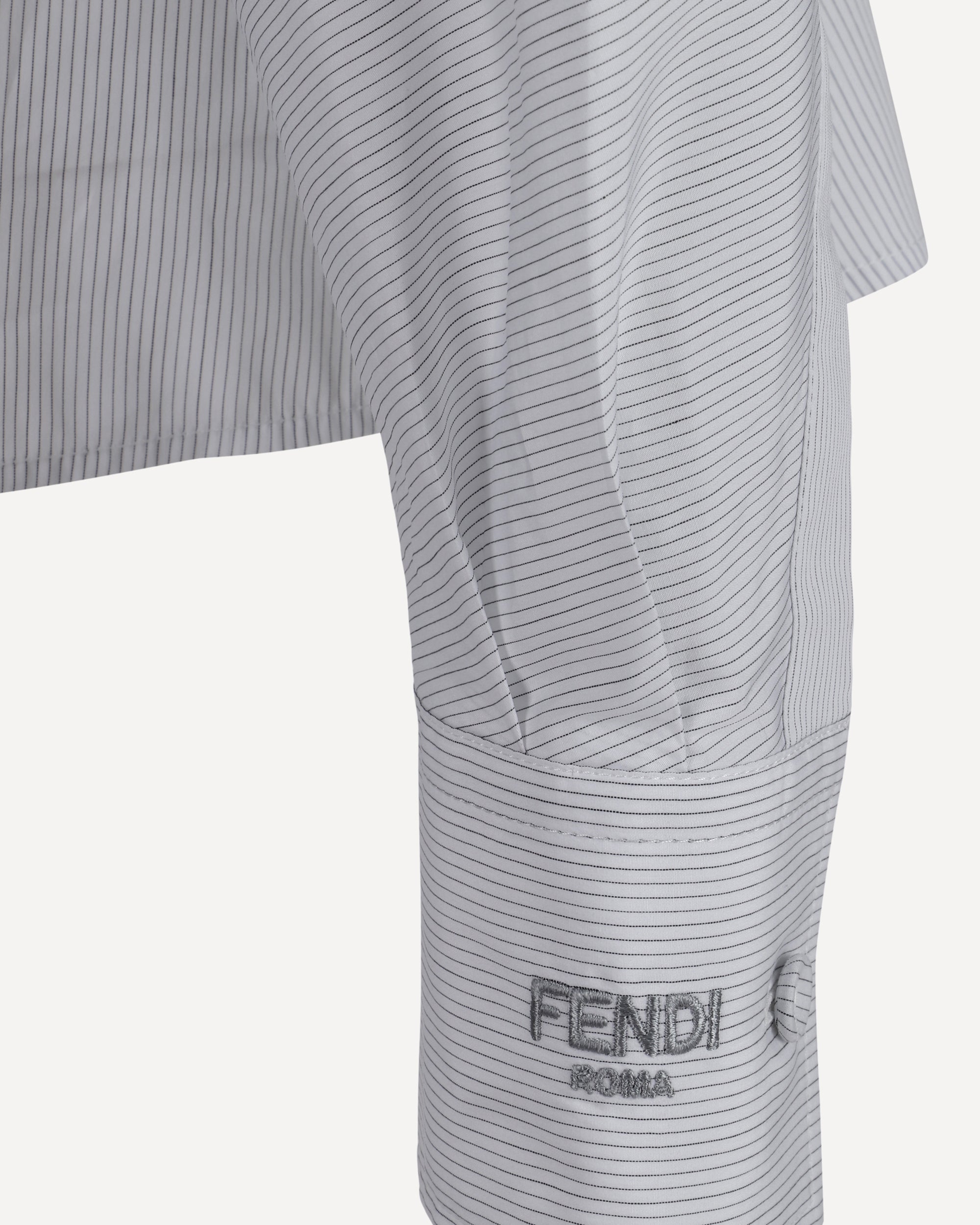 Camicia in Cotone di Fendi, colletto classico, chiusura frontale mediante bottoni nascosti, fantasia a righe, vestibilità regular.