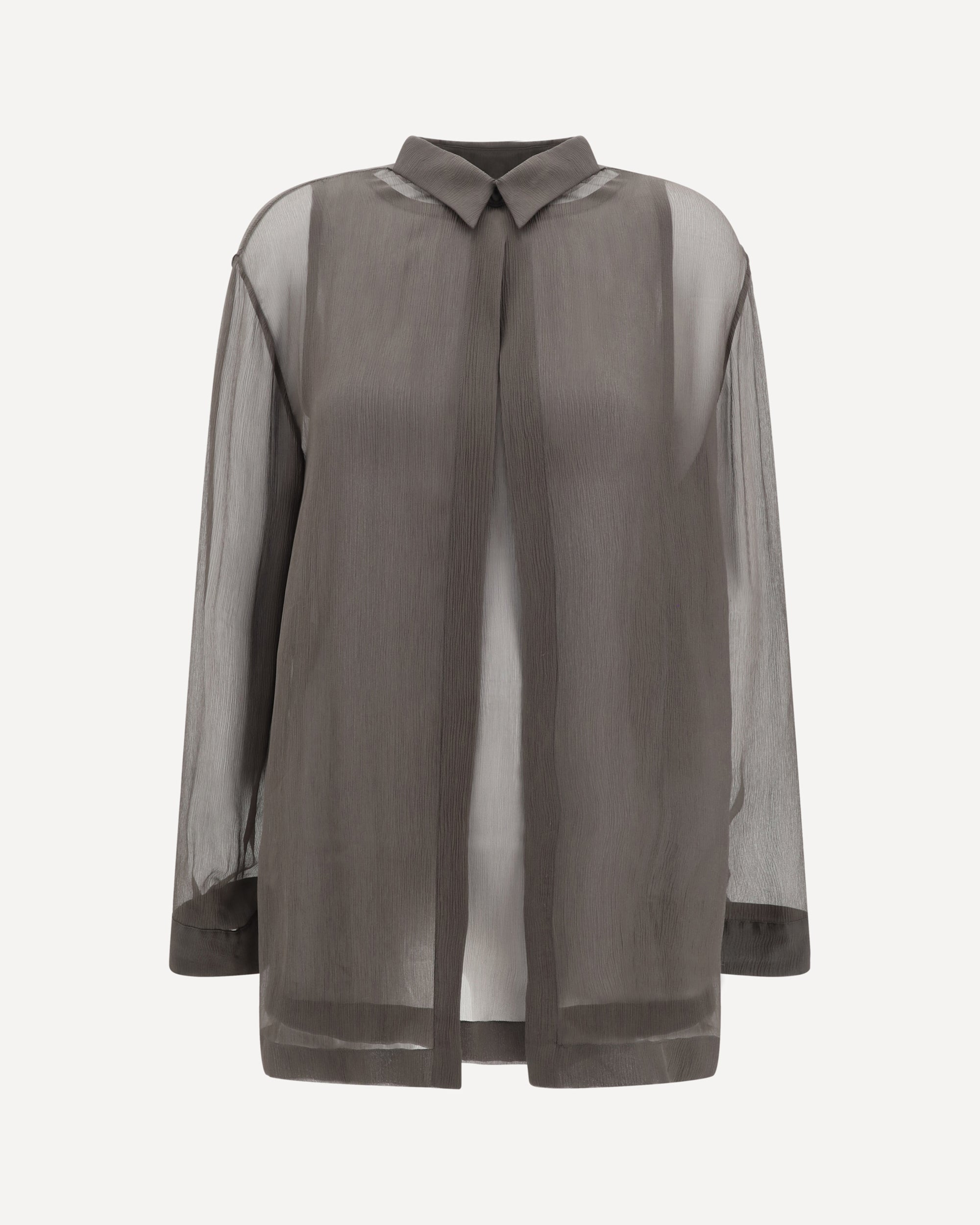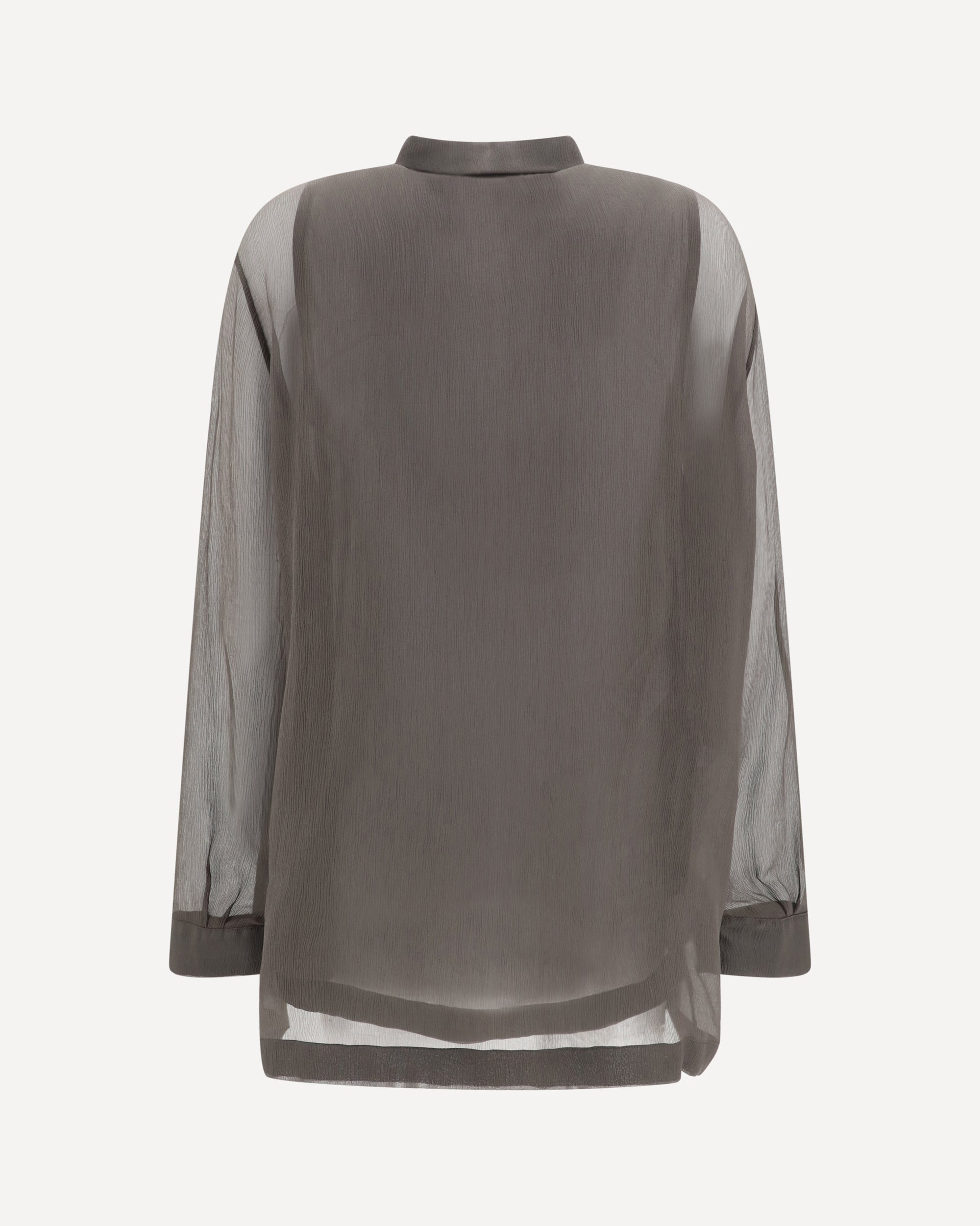 Il set Camicia e Top di Giorgio Armani è composto da un top smanicato semi trasparente abbinato a una camicia con colletto classico e un bottone sul fronte. Questo look unisce eleganza e raffinatezza, con il top che aggiunge un tocco di modernità e la camicia che mantiene una linea formale e impeccabile. È un'ottima scelta per un'occasione che richiede un equilibrio tra formalità e stile sofisticato.