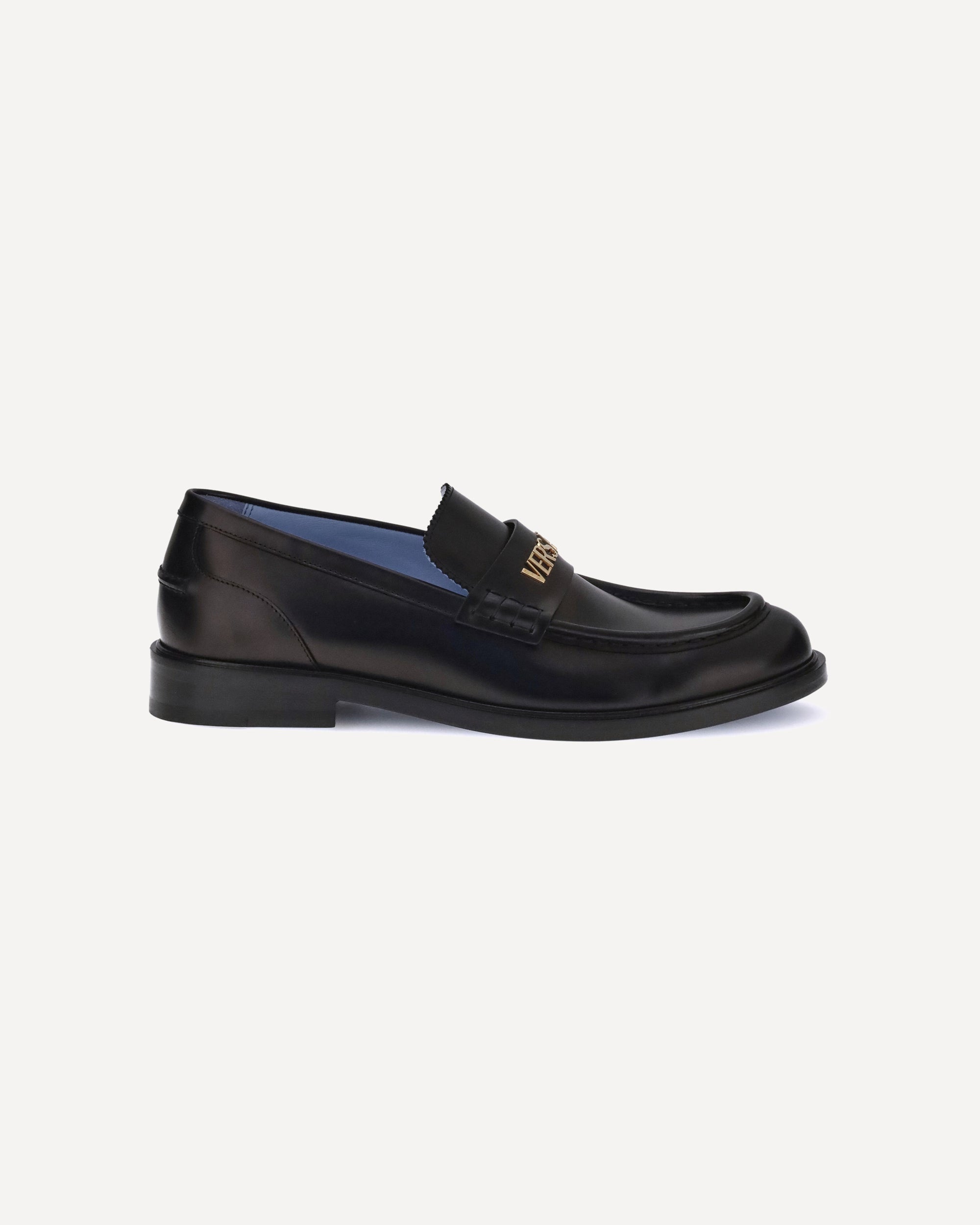 I Mocassini in pelle di Versace uniscono eleganza e praticità in un design slip-on. Caratterizzati da una punta arrotondata, presentano il logo dorato applicato sulla vaschetta frontale, che dona un tocco distintivo e raffinato a questo modello classico.