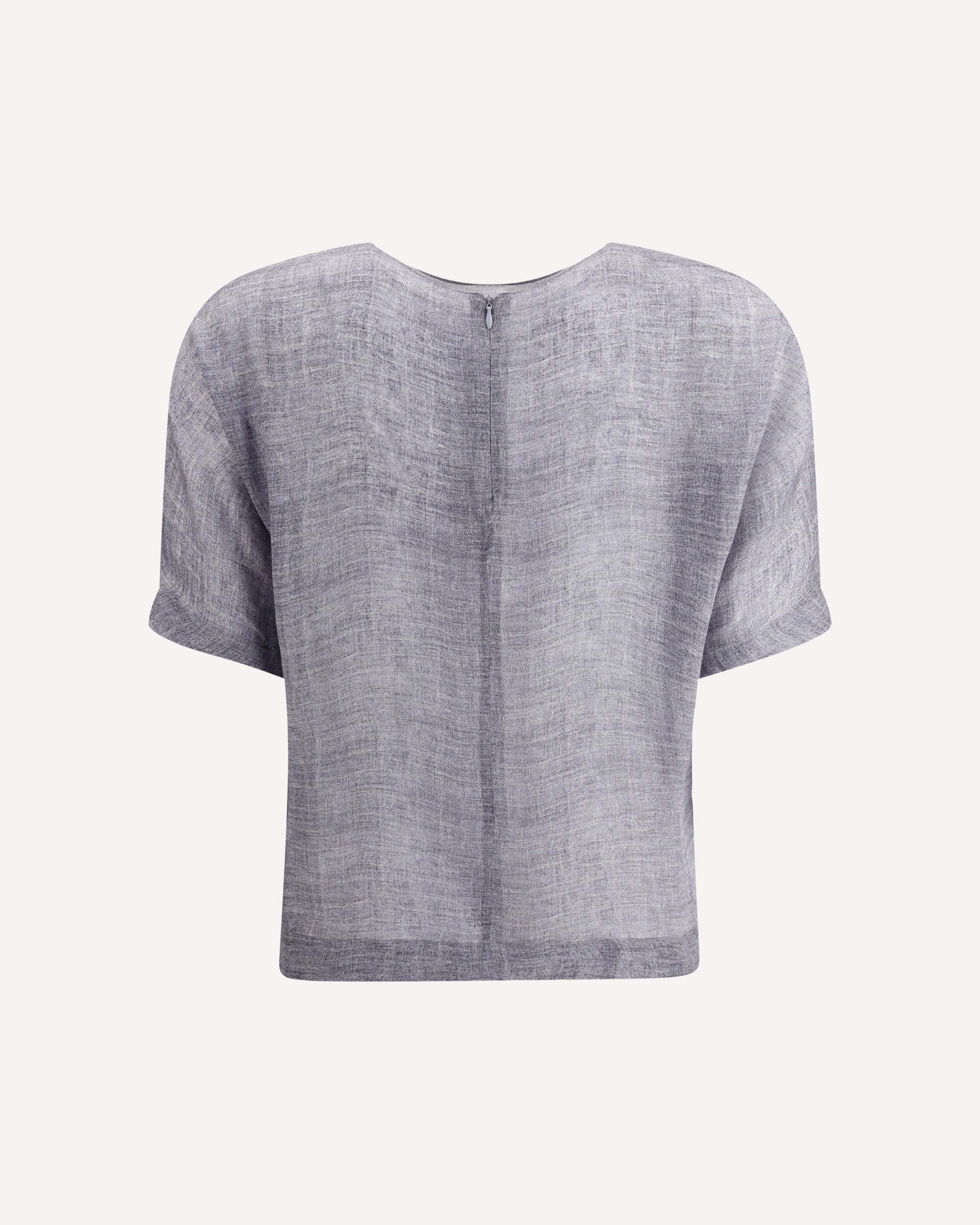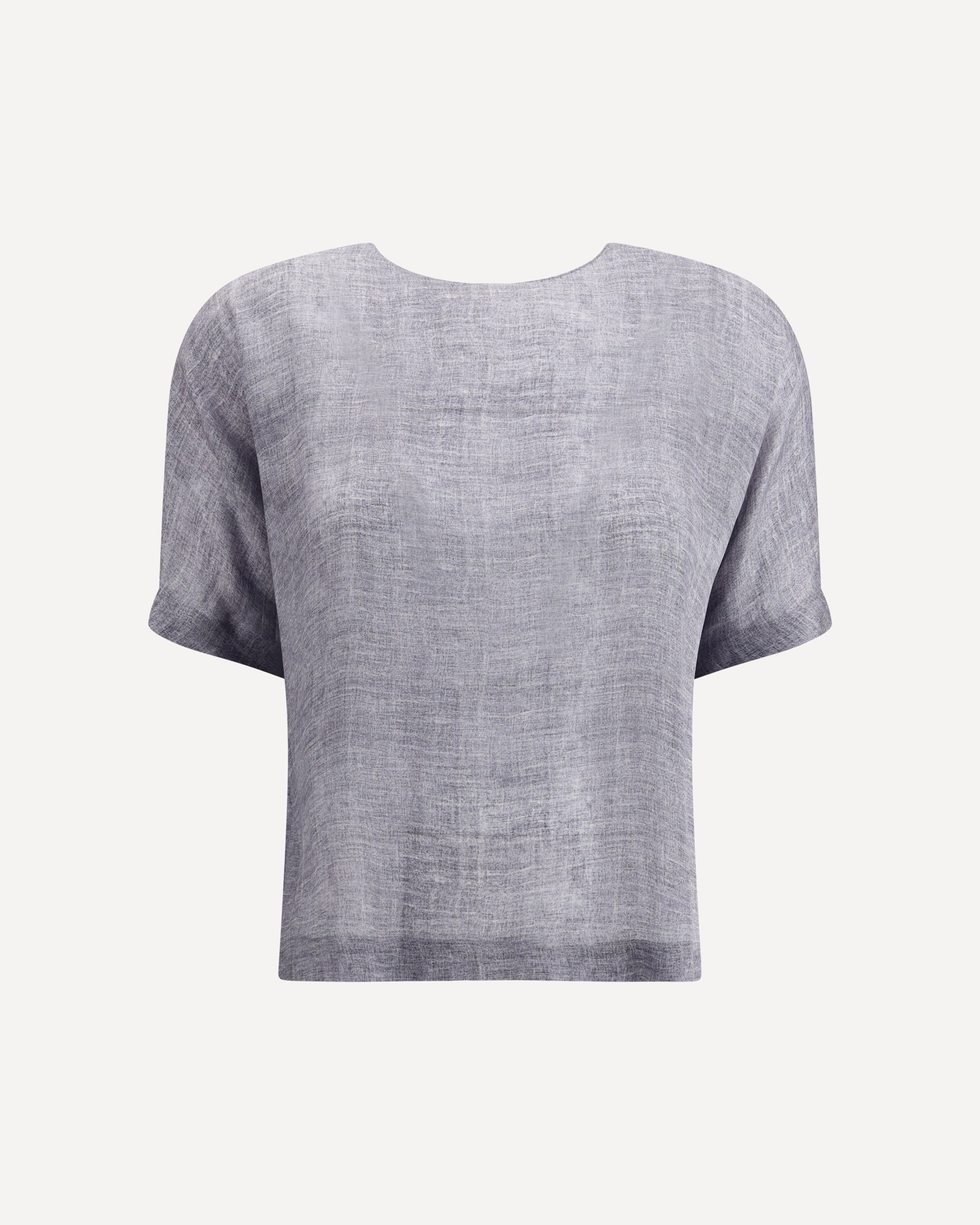 Il Top in seta di Giorgio Armani è un capo elegante e raffinato. Il modello a maniche corte, con l'orlo risvoltato, conferisce un tocco di stile discreto e moderno. La chiusura sul retro mediante cerniera assicura una vestibilità comoda e pulita. Perfetto per occasioni sofisticate, questo top unisce la leggerezza della seta con un design minimalista e versatile, riflettendo la qualità e l'eleganza tipiche del brand.