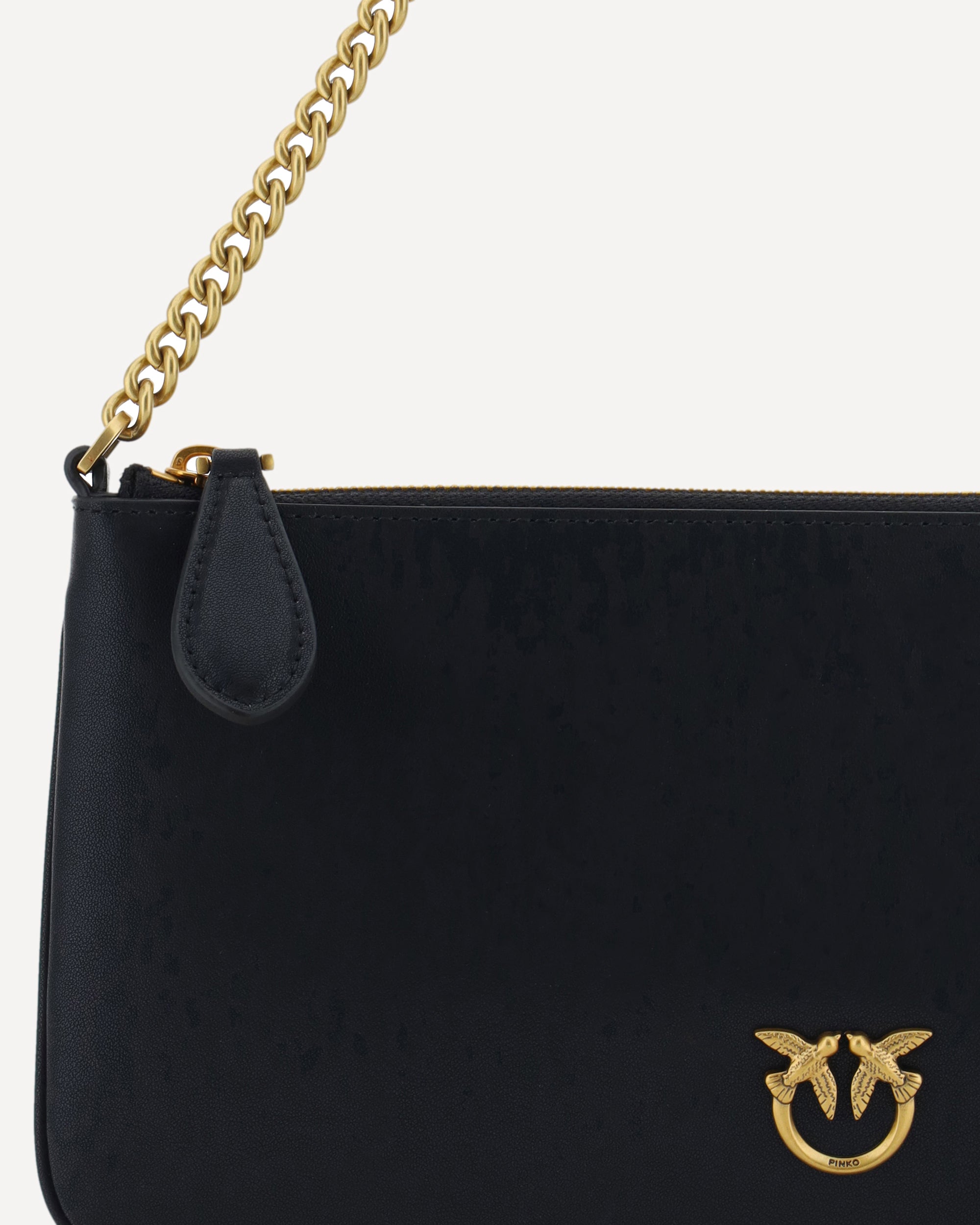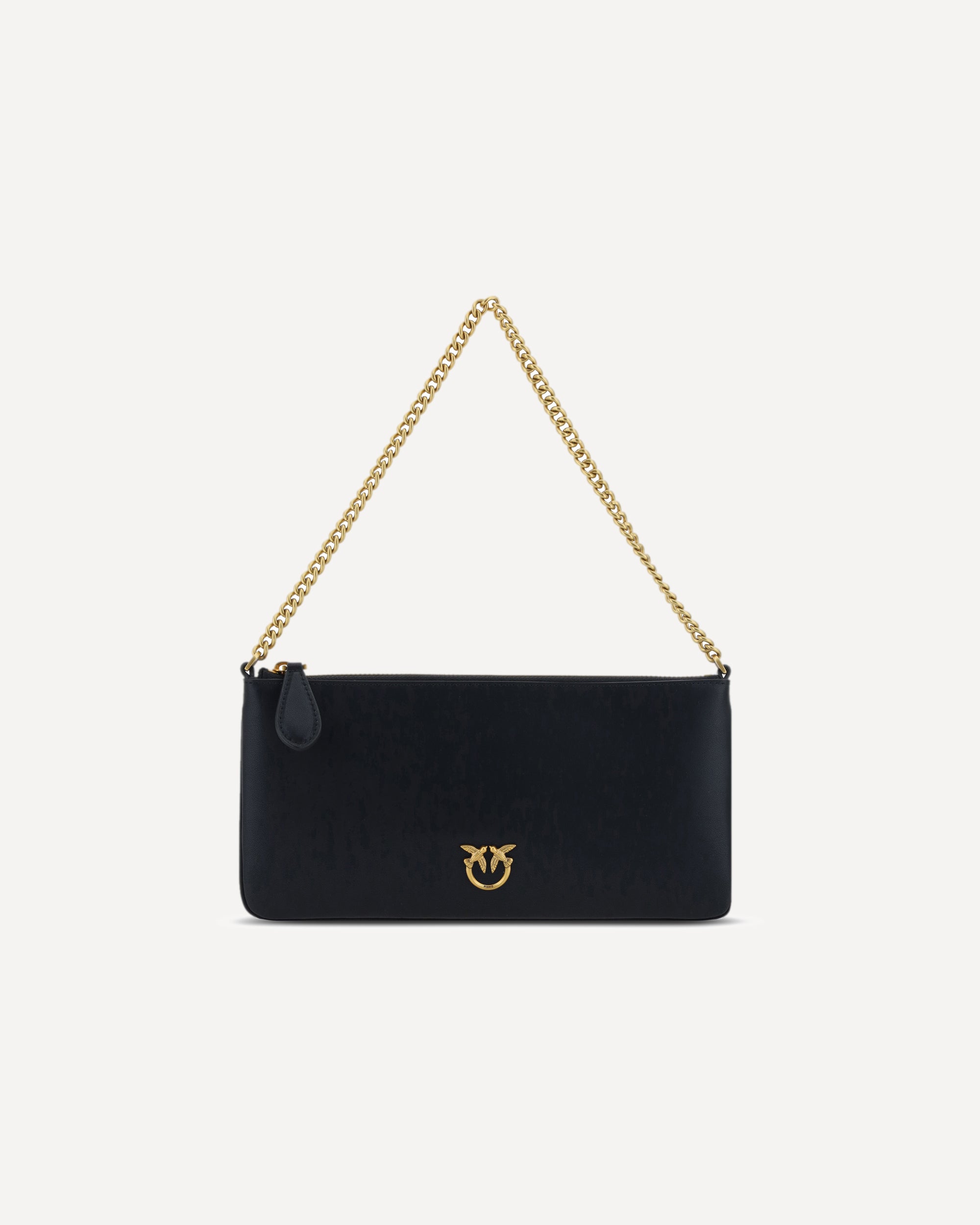 La Borsa a Spalla in pelle di Pinko presenta un design monocromo elegante, con chiusura superiore a cerniera e unico scomparto interno, impreziosita sul fronte dall’iconico logo del brand a contrasto e completata da un raffinato manico a catena.