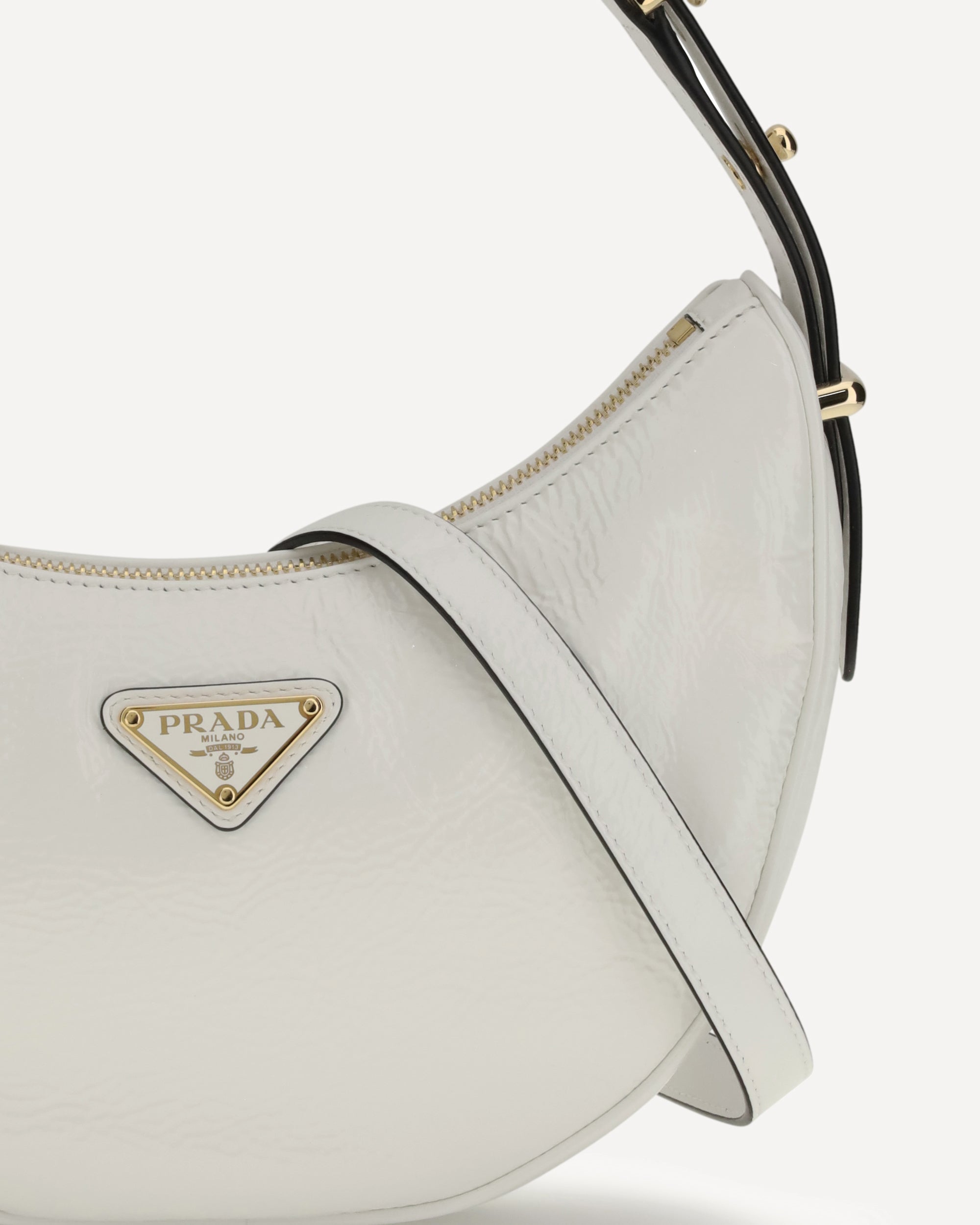 La Borsa a Spalla in pelle di Prada unisce essenzialità e carattere grazie al design in pelle verniciata dall’elegante effetto lucido. Dotata di chiusura superiore con cerniera e di un manico piatto rigido regolabile, offre uno scomparto interno pratico e ben organizzato. A completare il modello, l’iconica placca triangolare smaltata sul fronte, simbolo immediatamente riconoscibile dello stile Prada.