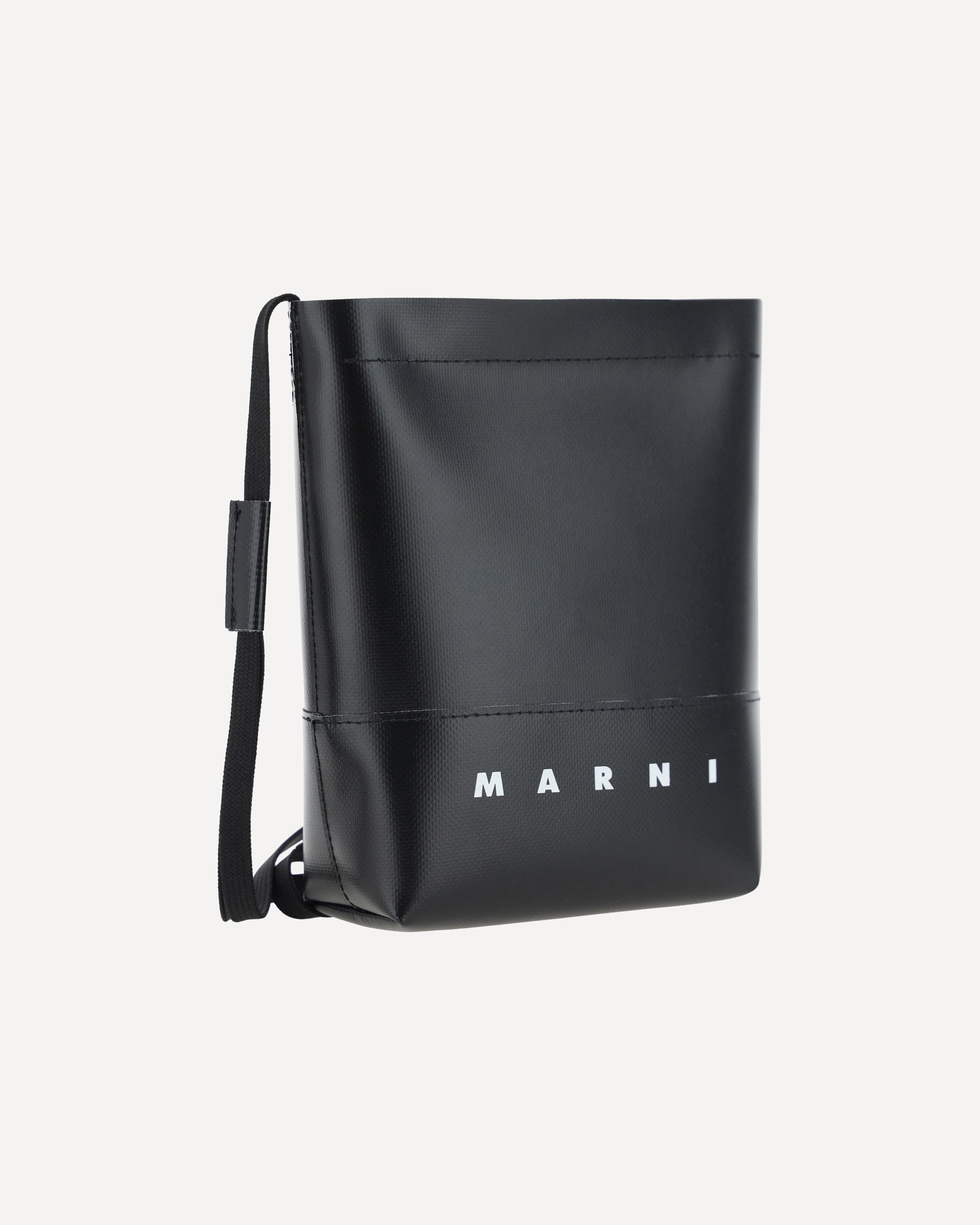 Borsa a Tracolla di Marni, design realizzato in tela spalmata, chiusura mediante cerniera nascosta, interno sfoderato, tracolla in tessuto regolabile, iconica firma brand stampata a contrasto sul fronte.