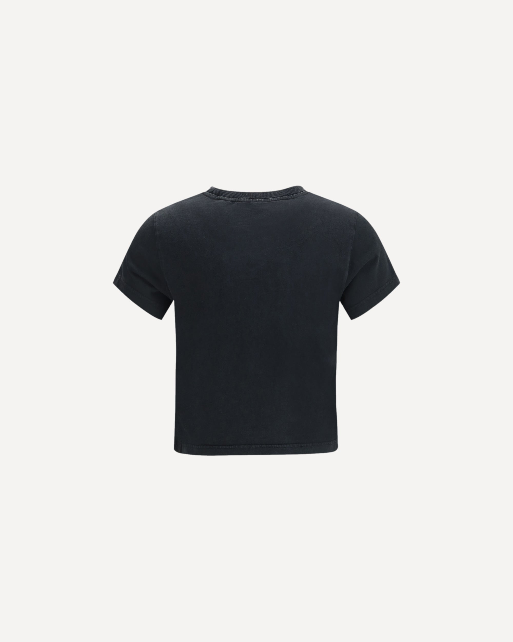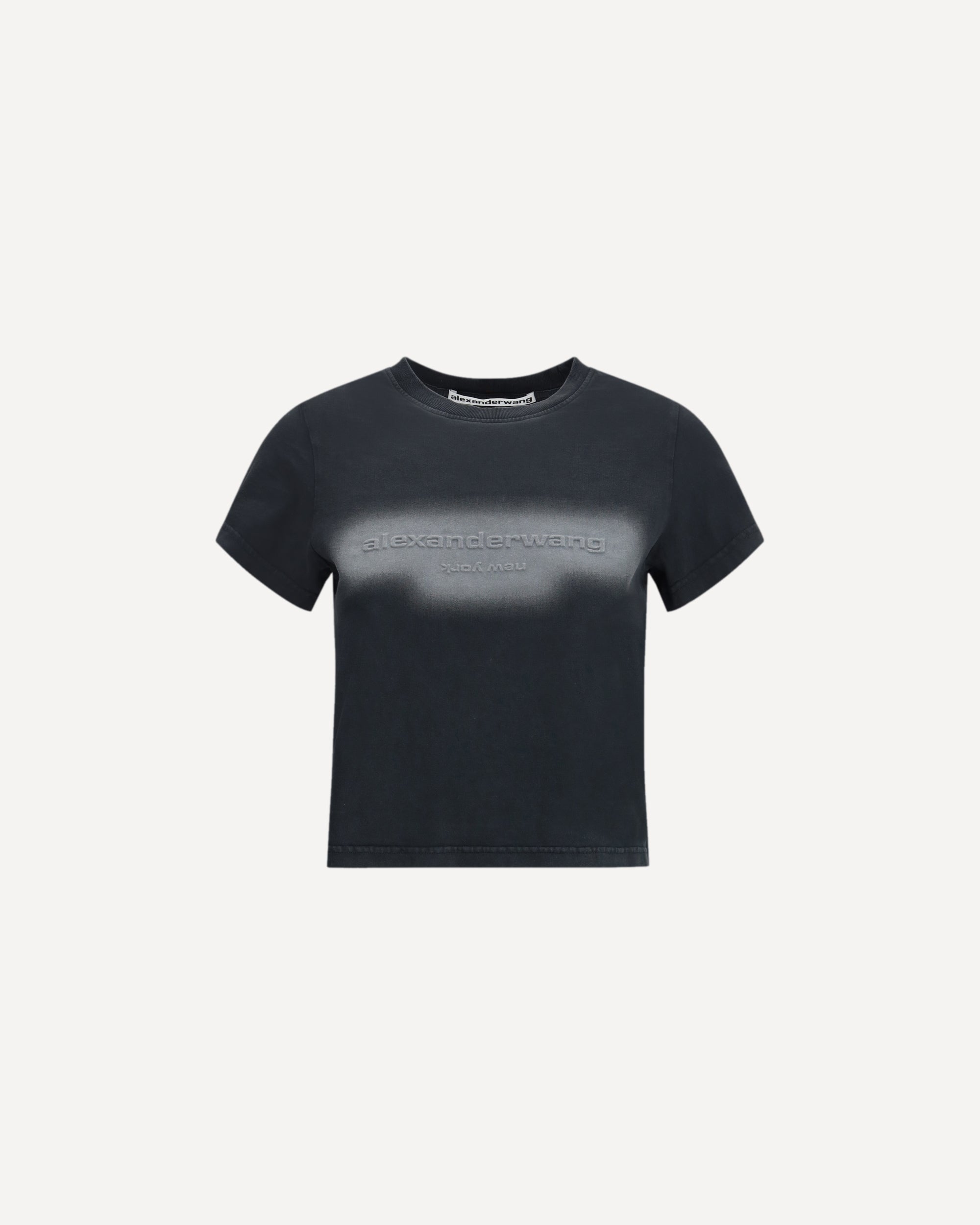 La T-shirt con logo di Alexander Wang incarna una moderna raffinatezza dallo stile essenziale e deciso. Realizzata in cotone liscio e opaco di alta qualità, presenta un taglio leggermente oversize con maniche corte che cade con naturalezza sulla figura, accennando delicatamente il punto vita. Al centro spicca l’emblematica scritta “alexanderwang” in rilievo, incorniciata da una sfumatura grigio chiaro effetto “spray paint”, che dona al capo un tocco urbano e industriale. Morbida e resistente, mantiene un aspetto impeccabile anche dopo numerosi lavaggi.