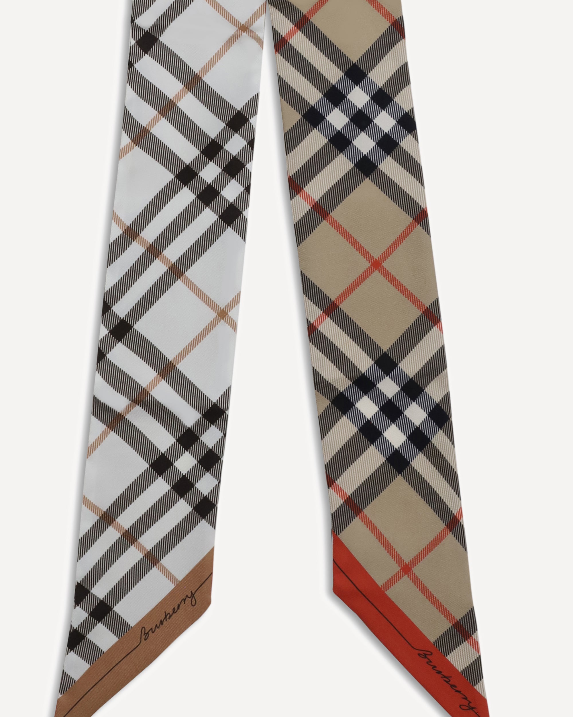 La Sciarpa sottile in seta Burberry reinterpreta il classico Check con un elegante gioco di contrasti. Realizzata in Italia in twill di seta, mostra il motivo iconico in tonalità opposte sul fronte e sul retro, creando un effetto grafico immediatamente riconoscibile. Le estremità affusolate e la scritta Burberry stampata sul bordo aggiungono un tocco raffinato a questo accessorio leggero e sofisticato.
