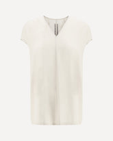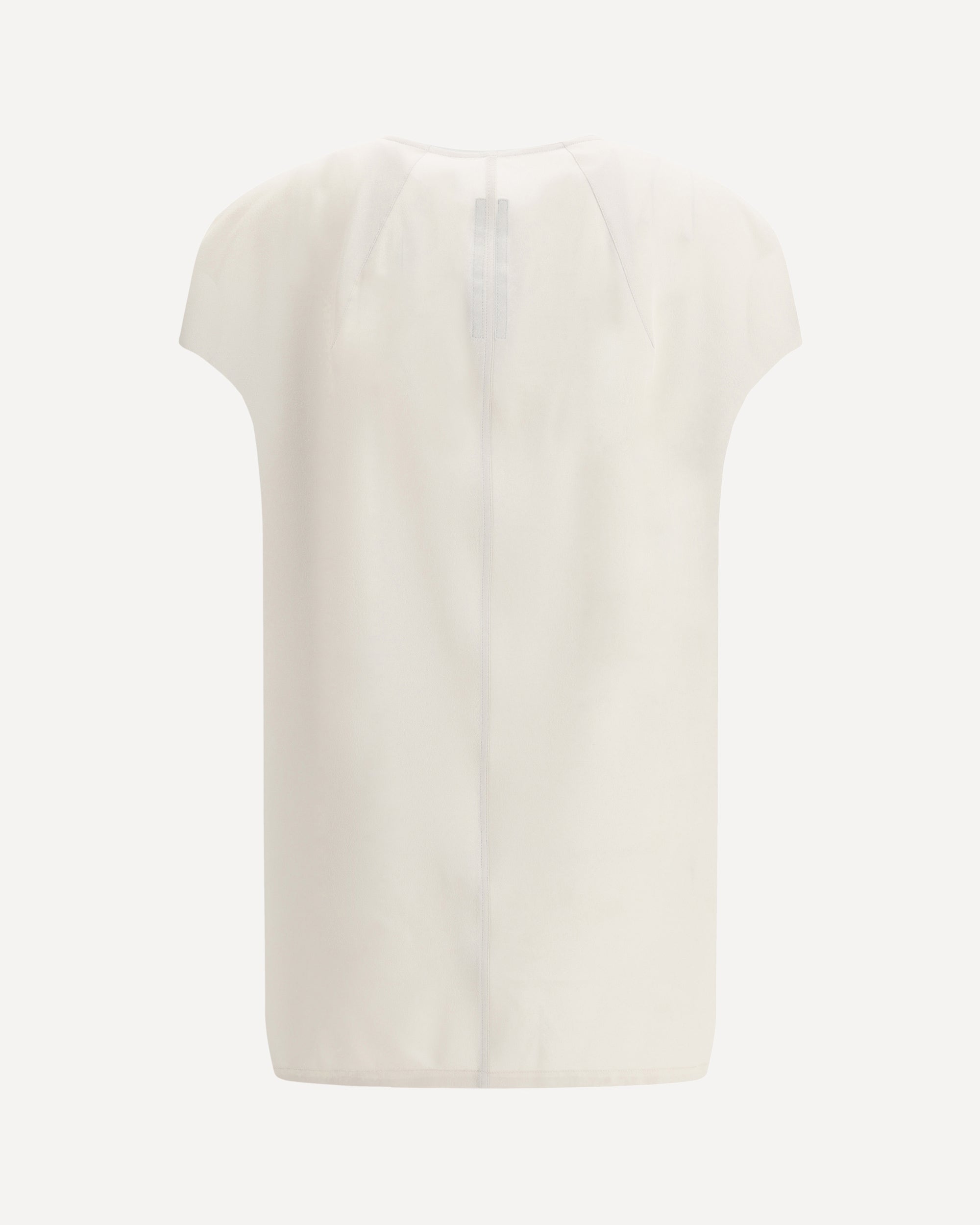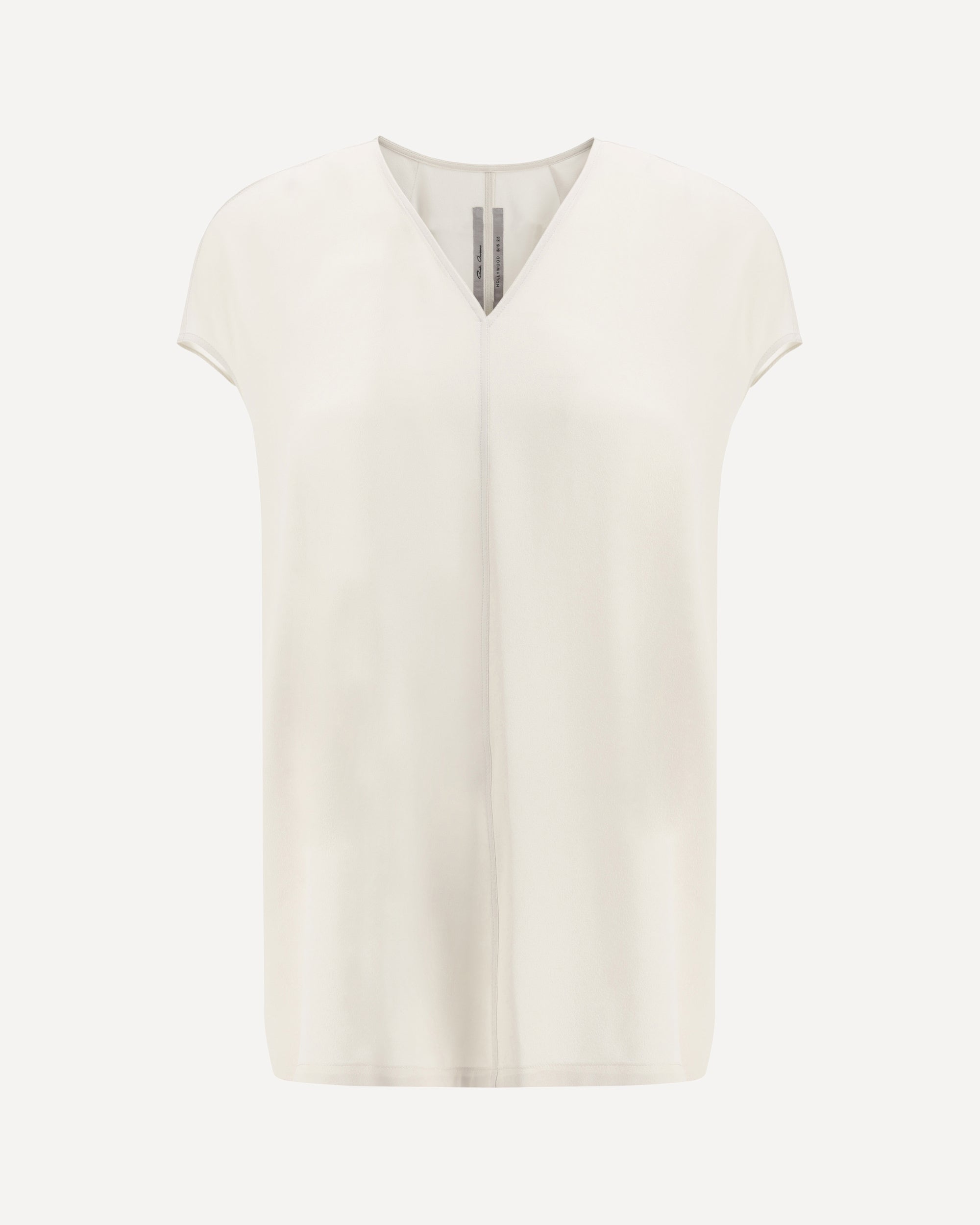 Il top in seta di Rick Owens è un capo raffinato e minimalista, con un elegante scollo a V sul fronte che esalta la sua linea pulita. Le maniche corte e la fantasia monocromo lo rendono estremamente versatile. Perfetto per chi cerca uno stile sofisticato, ma con un'anima contemporanea e audace.