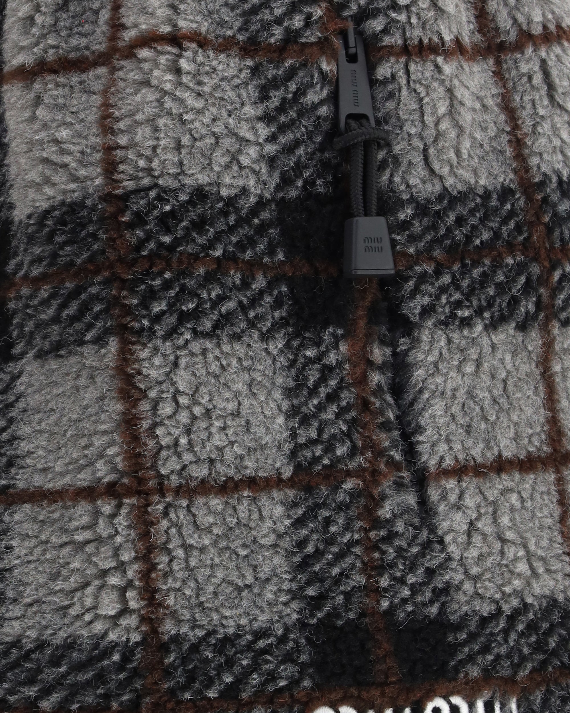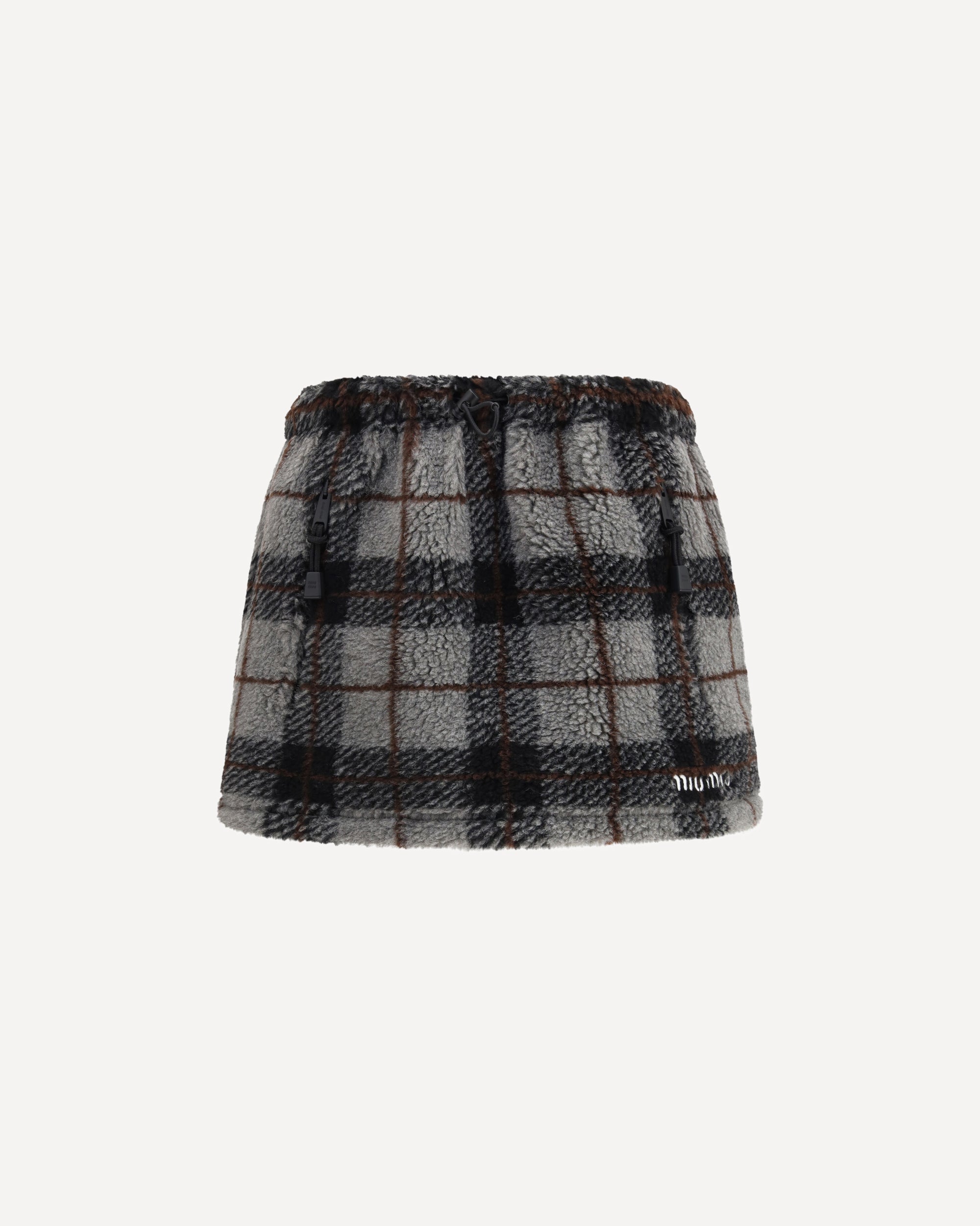 La Minigonna a quadri di Miu Miu reinterpreta un classico motivo grafico con un’estetica contemporanea e dinamica. Il modello presenta stampa a quadri, chiusura frontale e vita elasticizzata con coulisse, elementi che assicurano comfort e vestibilità naturale. Il logo ricamato completa il design con un dettaglio distintivo che richiama l’identità raffinata di Miu Miu.