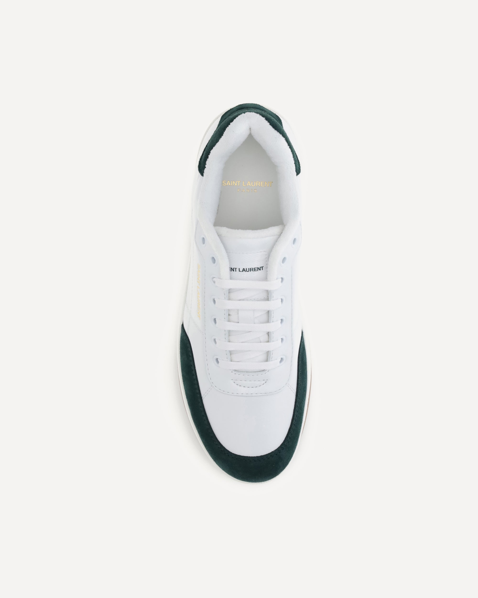 Le Sneakers SL61 di Saint Laurent combinano uno stile pulito e dettagli ricercati. Caratterizzate da suola piatta e chiusura con lacci, presentano logo laterale e sul tallone, mentre il pannello in pelle scamosciata aggiunge un tocco di texture e raffinatezza.