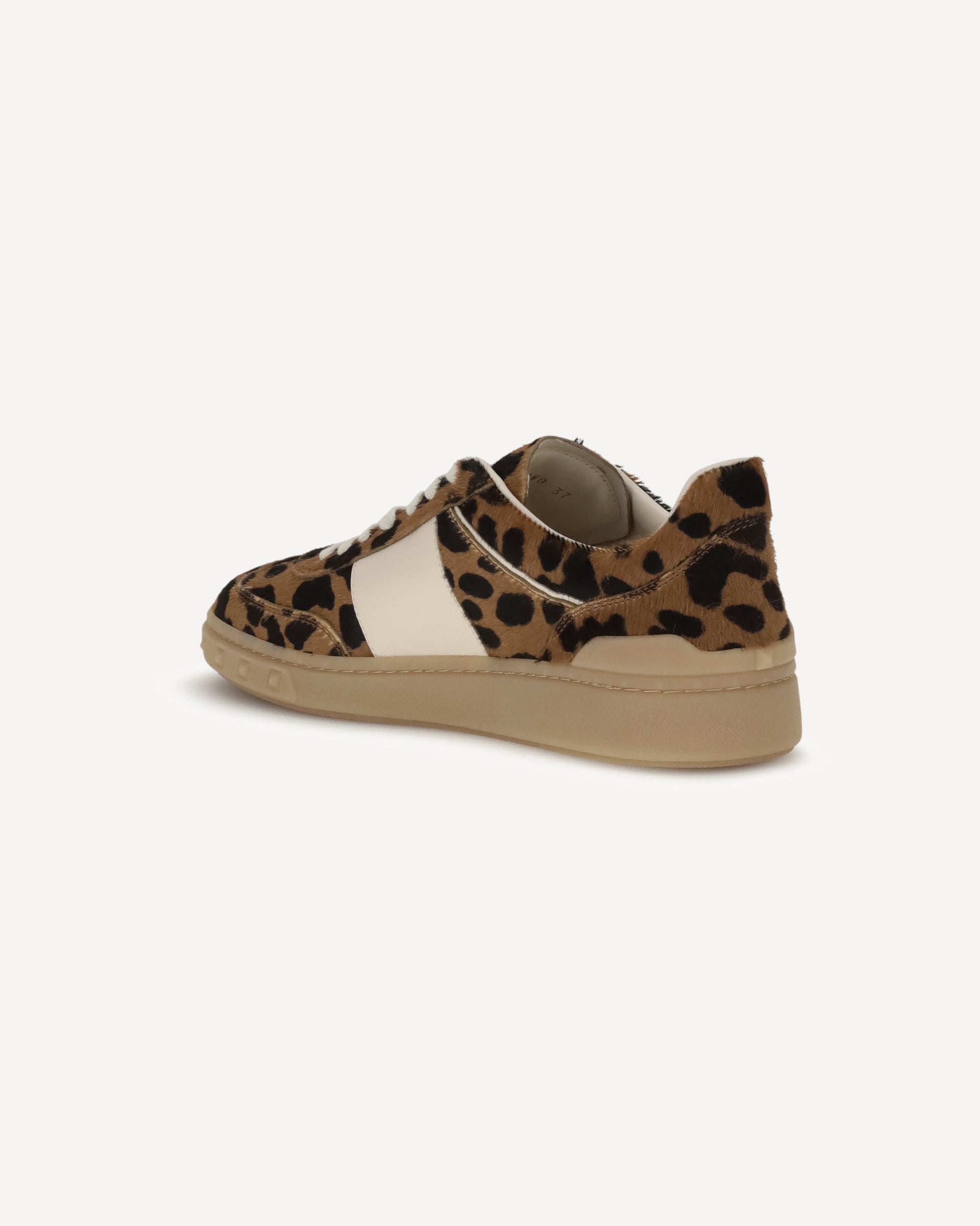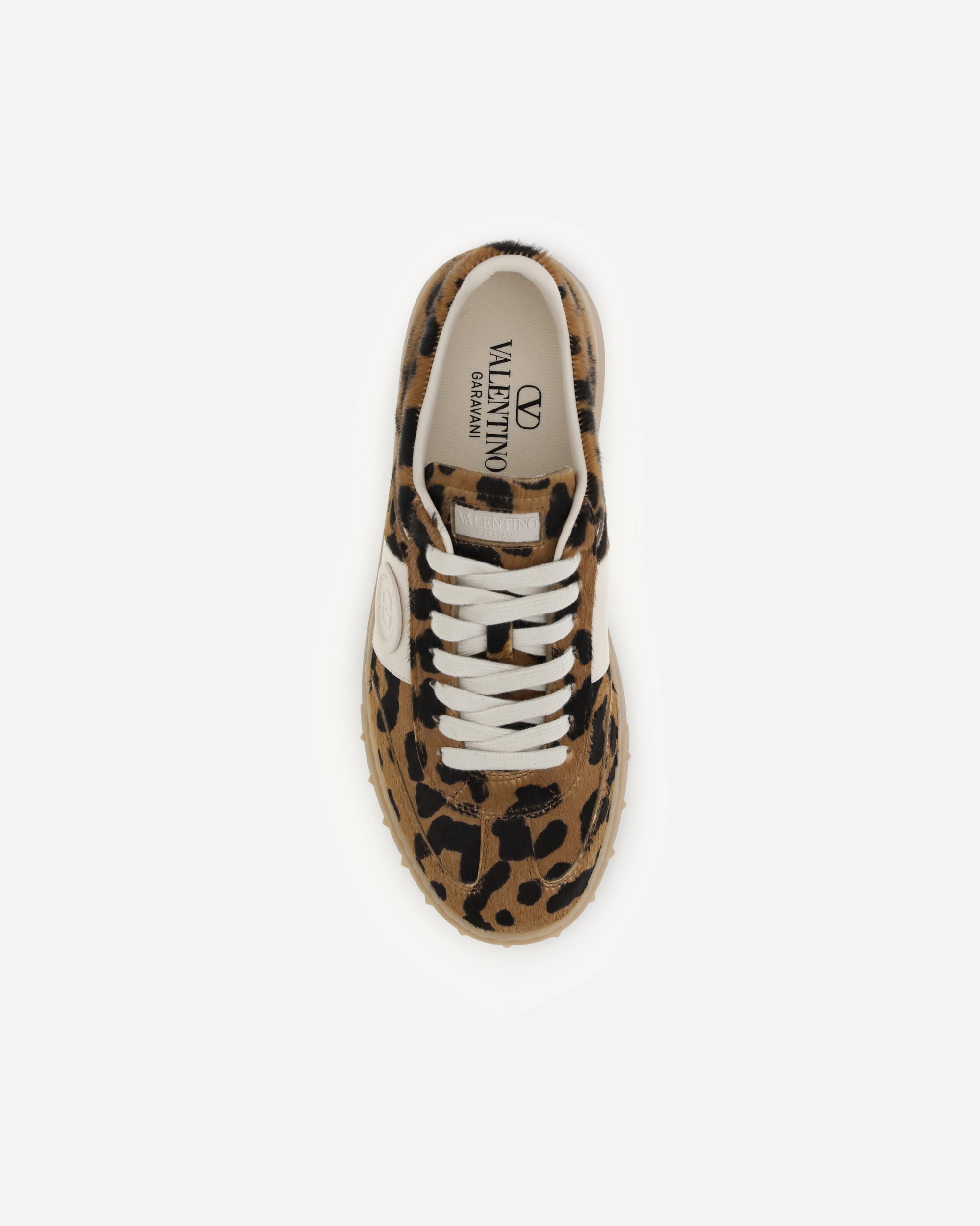 La Sneaker Upvillage di Valentino Garavani è realizzata in vitello effetto cavallino con stampa animalier. Presenta una banda in vitello nappato, patch in pelle con dettaglio VLogo Signature e logo Valentino Garavani serigrafato sulla linguetta. La suola in gomma personalizzata con dettaglio borchie completa il design con un tocco iconico.