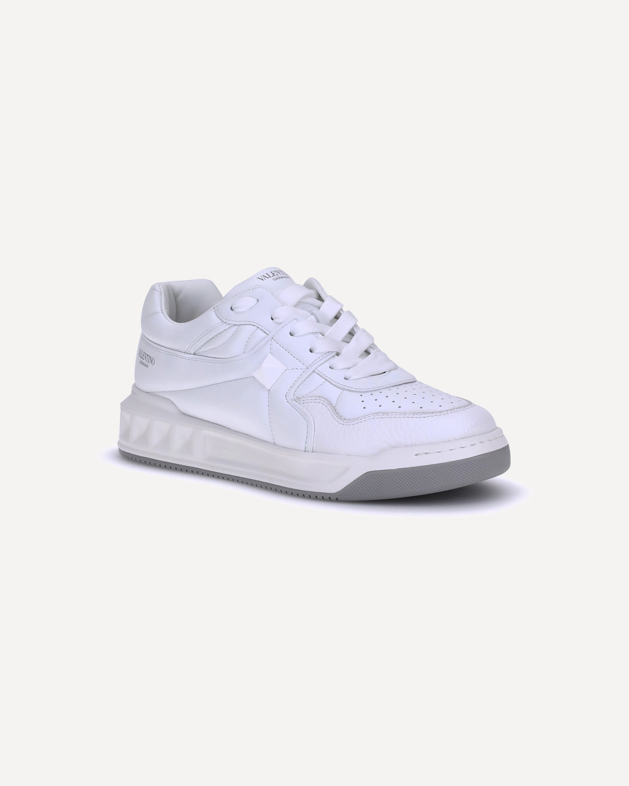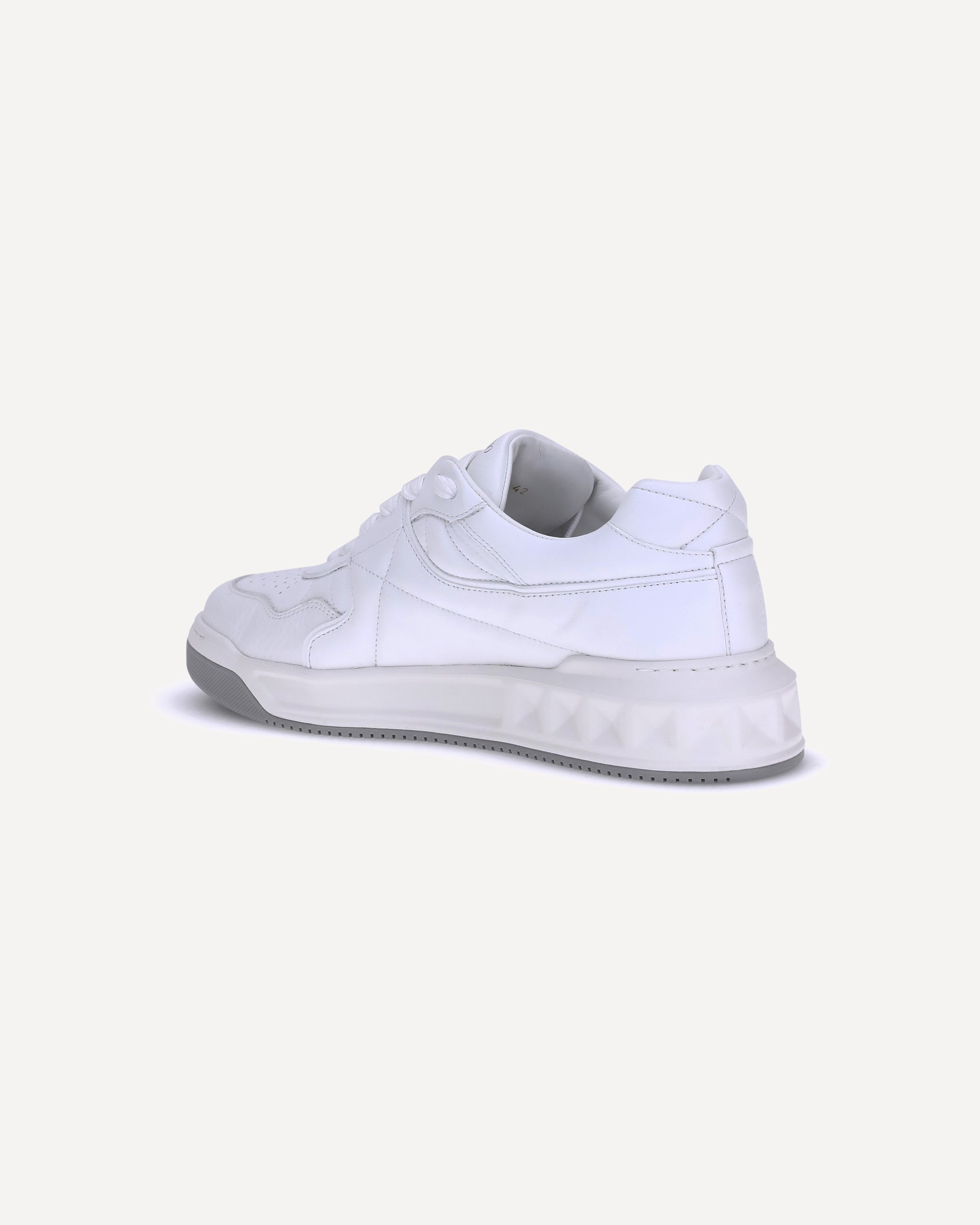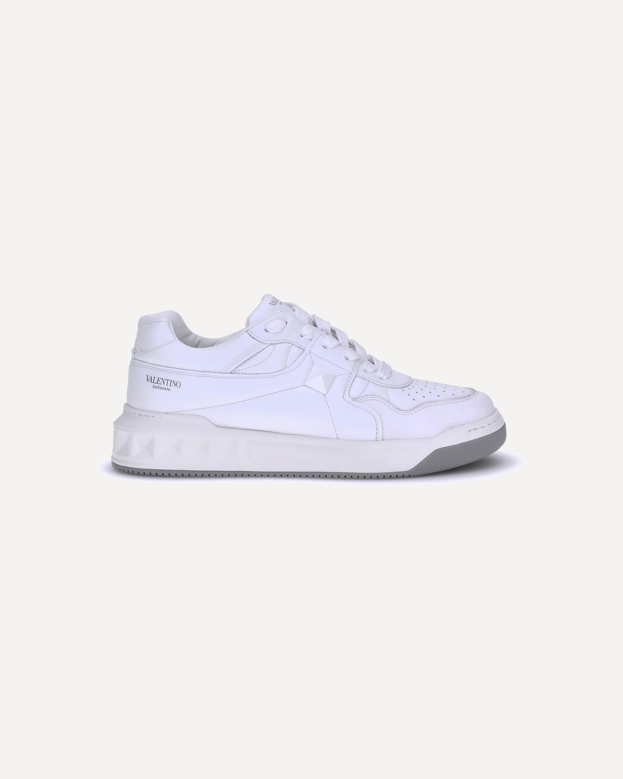Le Sneakers Low-Top One Stud di Valentino Garavani reinterpretano l’estetica urbana con un tocco di eleganza iconica. Caratterizzate da un design pulito e contemporaneo, si distinguono per il dettaglio della maxi borchia con finitura semi-opaca, elemento simbolo della Maison che conferisce personalità e riconoscibilità al modello. Il logo Valentino Garavani serigrafato sul tallone e sulla linguetta aggiunge una nota grafica sobria ma distintiva. La suola in gomma è arricchita da un raffinato dettaglio della maxi borchia in basso rilievo, che si ripete anche sul battistrada, creando un effetto visivo coerente e di forte impatto.