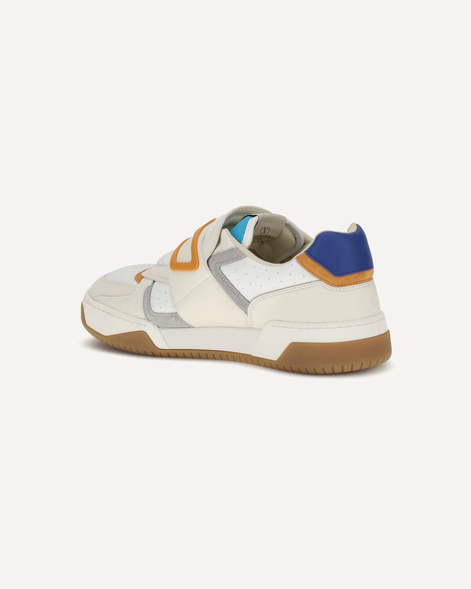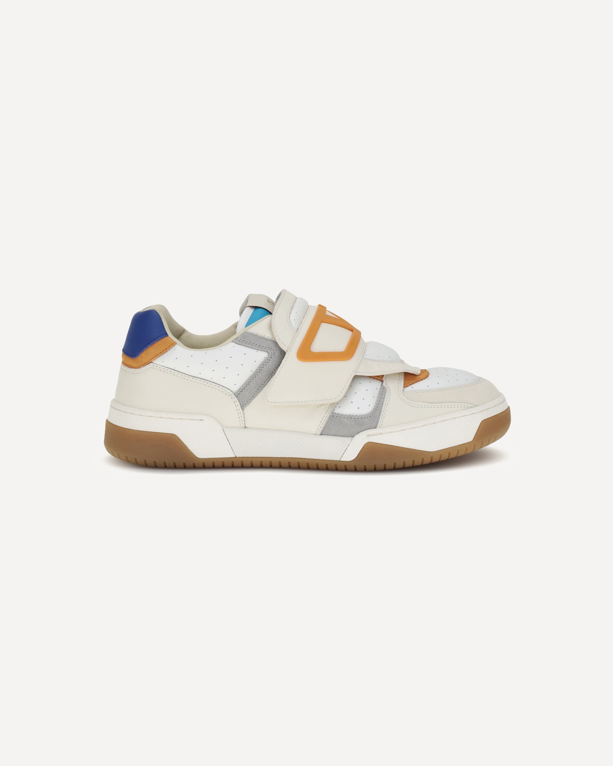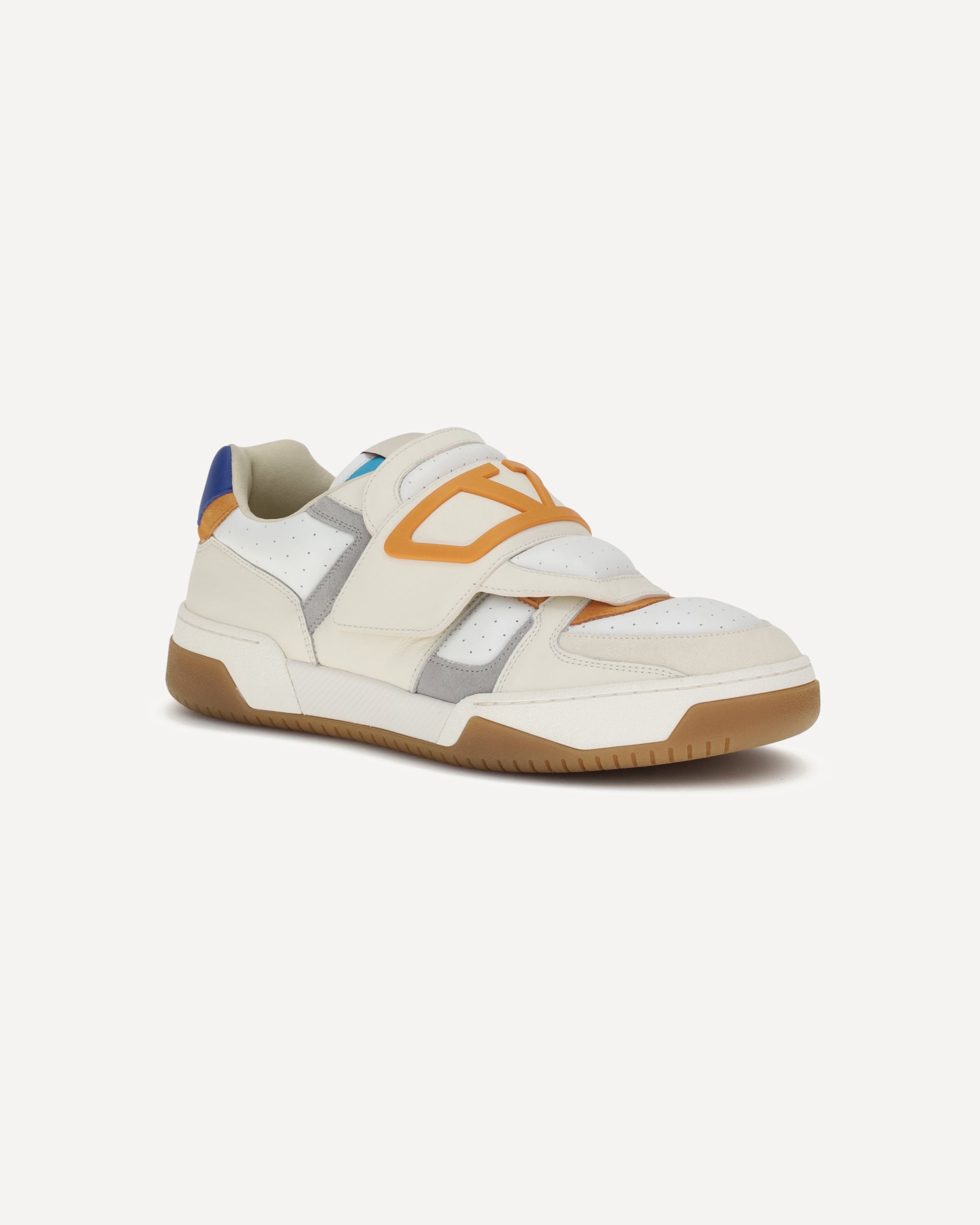 Le Sneakers Low Top Joie De Jouer di Valentino Garavani combinano stile sportivo e raffinatezza. Realizzate in pelle di vitello con pannelli in suede, sono arricchite da dettagli verdi a contrasto. La chiusura a strappo con VLogo Signature gommato si affianca ai lacci interni per una calzata sicura. L’imbottitura alla caviglia, la fodera in mesh tecnico e la suola in gomma garantiscono comfort e traspirabilità. Un modello casual dall’anima iconica.