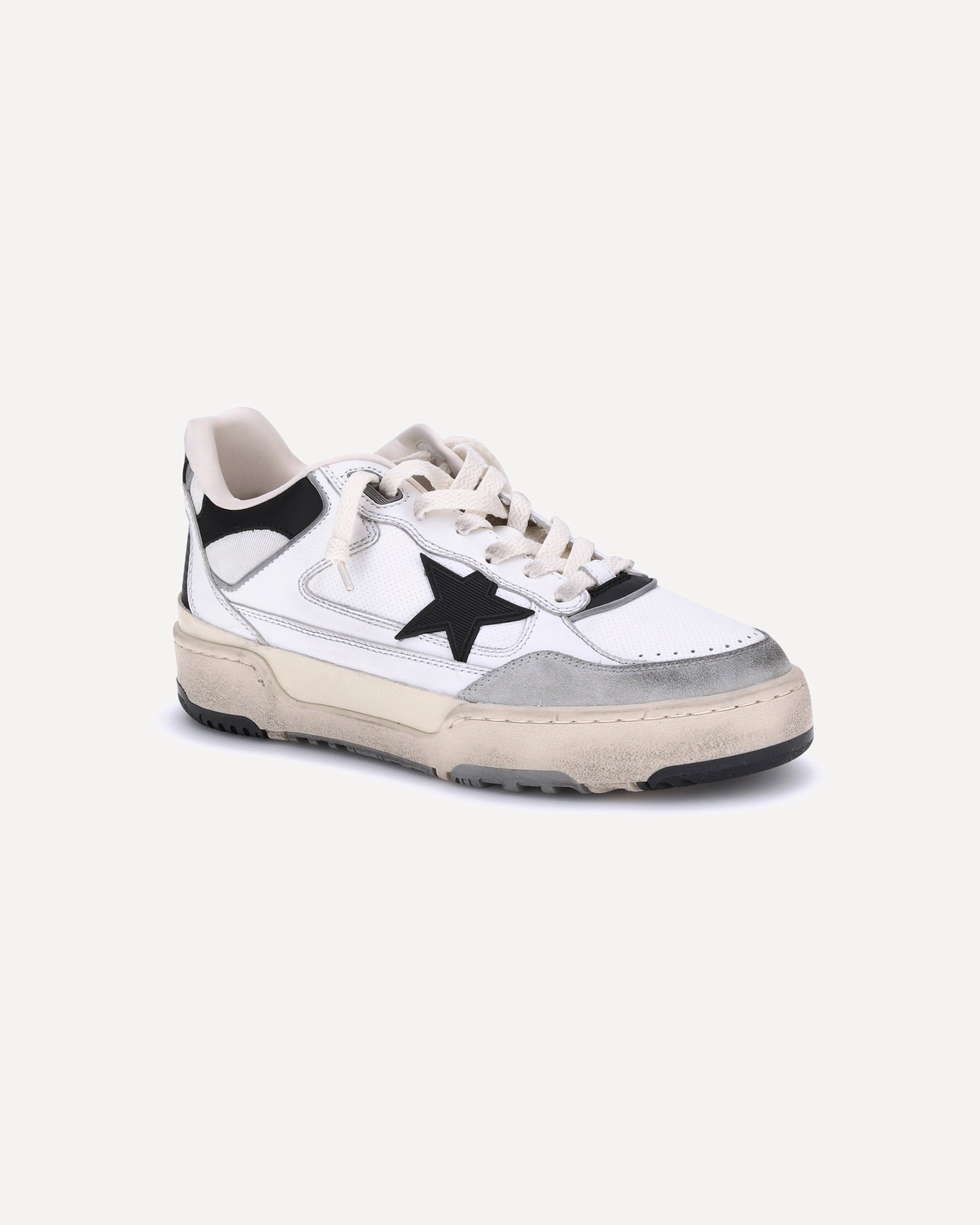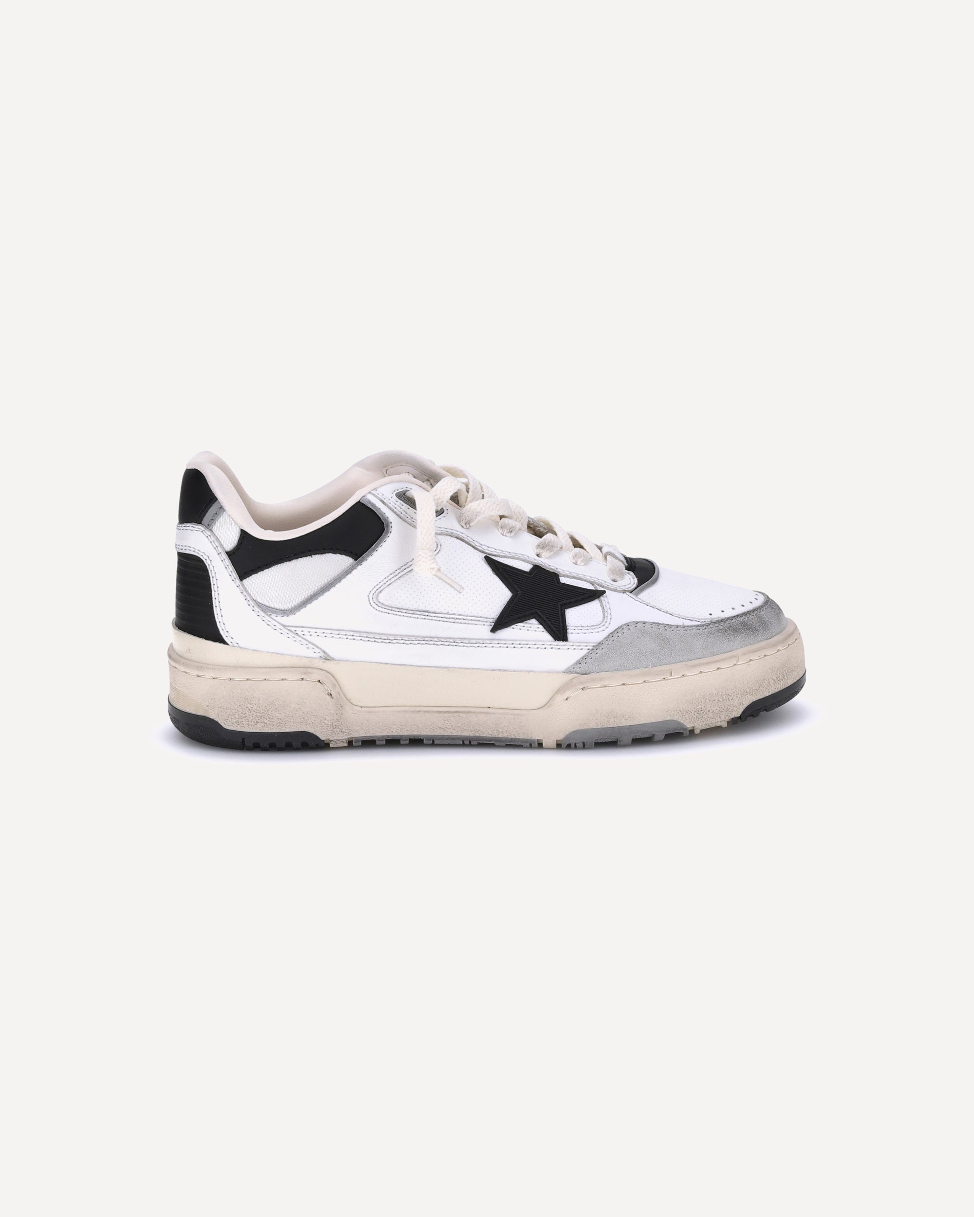 Le Sneakers Forty2 si ispirano ai leggendari giorni del basket americano degli anni ’90, portando con sé un fascino senza tempo. La silhouette chunky low-top dal design sportivo celebra lo spirito indomito dell’eterno sognatore, con dettagli in textured 3D come la stella e l’inserto sul retro in pelle nera, completati dal talloncino sempre in pelle nera. La punta in suede e i lacci bianchi dall’effetto vintage aggiungono un tocco finale di stile autentico e contemporaneo.