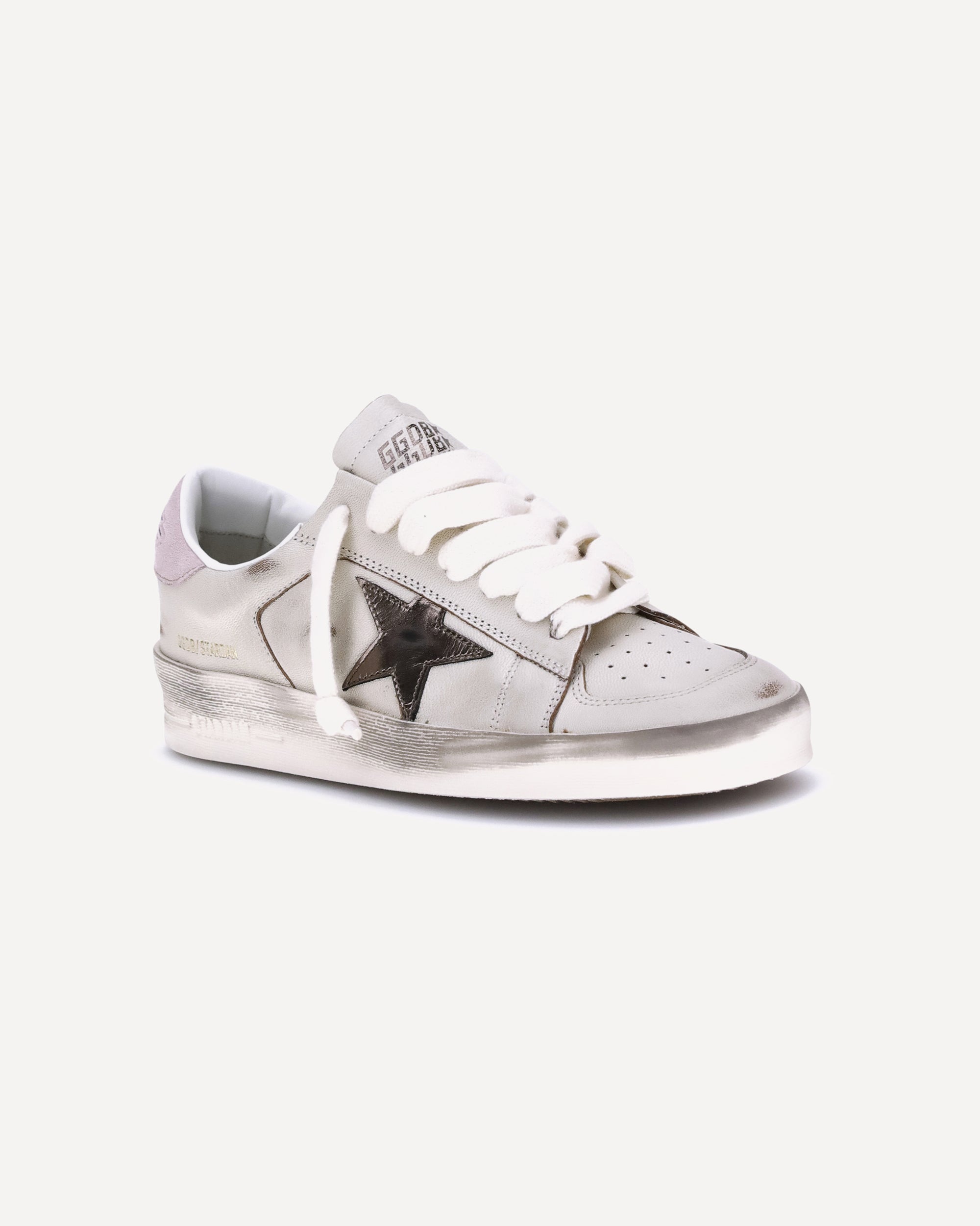 Le Sneakers Ball Star di Golden Goose evocano l’atmosfera dei college americani degli anni Ottanta con un’estetica vintage e autentica. Realizzate in pelle, si distinguono per la punta tonda traforata, la chiusura con lacci e il logo sulla linguetta. L’iconica stella applicata sul lato e il caratteristico design vissuto completano il modello con lo stile inconfondibile del brand.