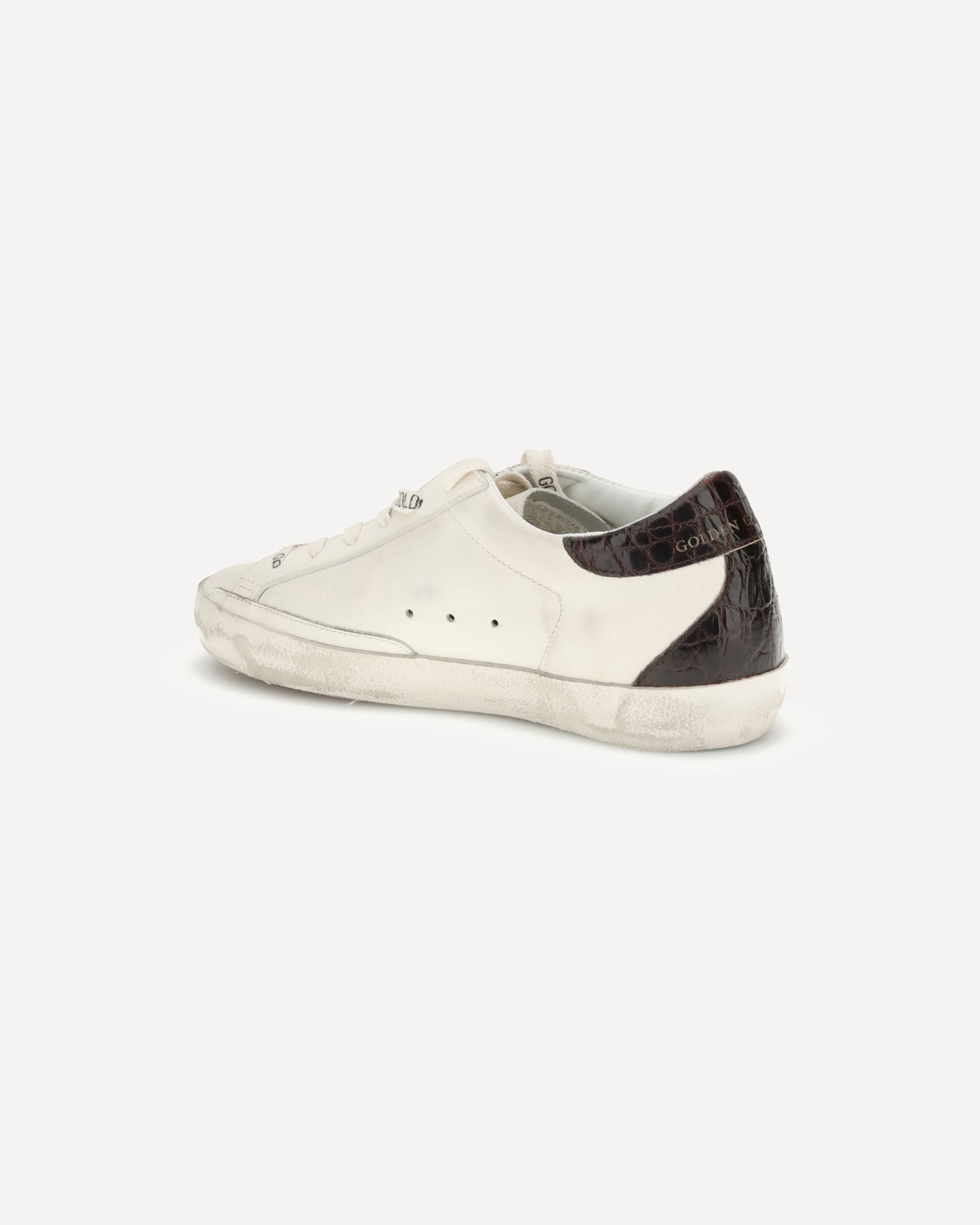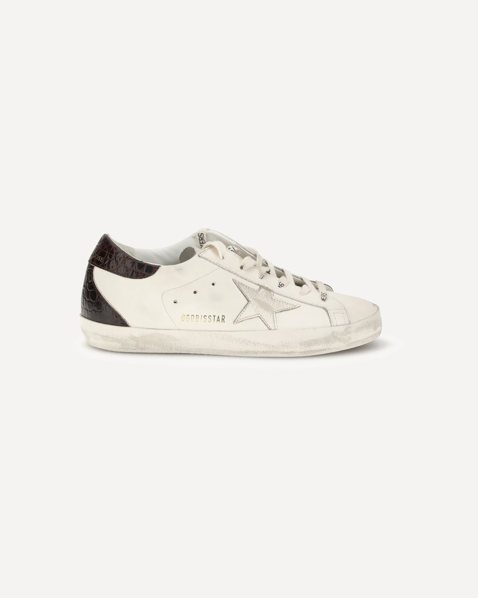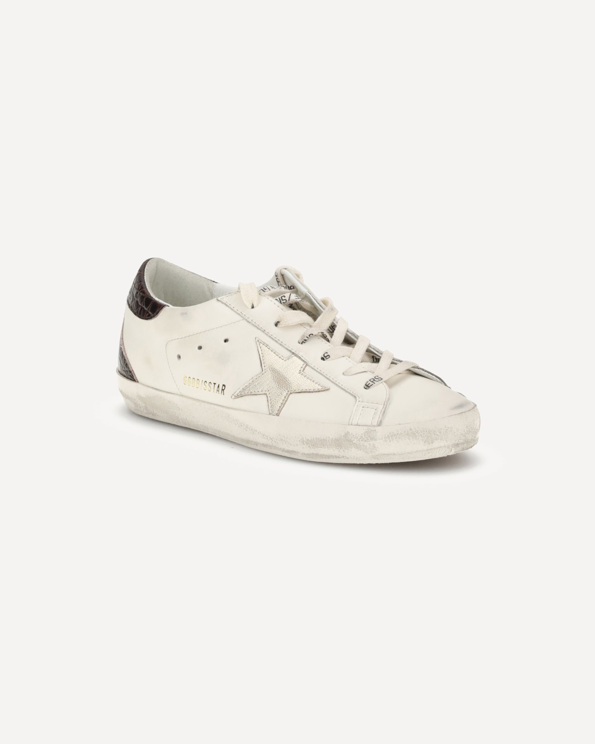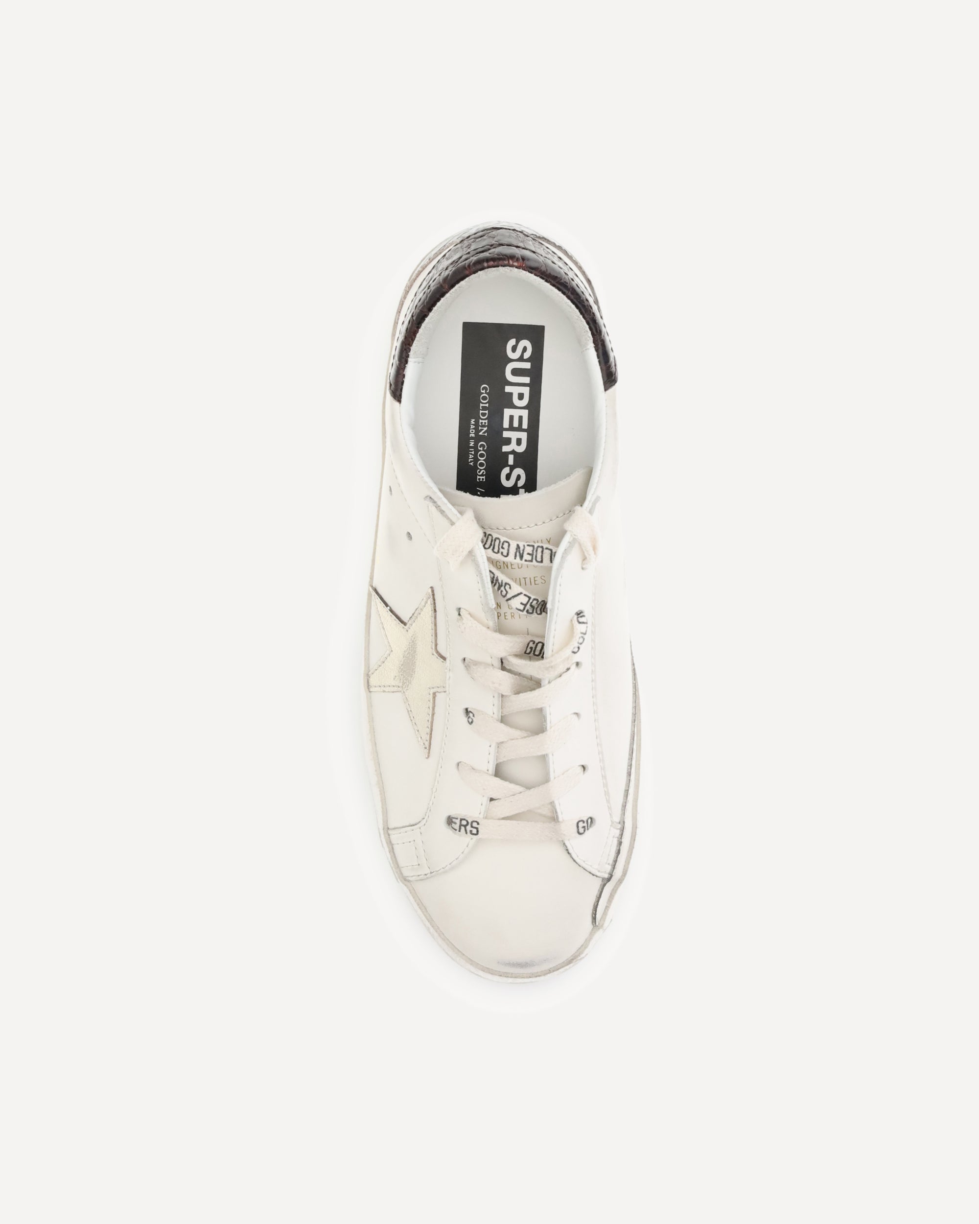 Le Sneakers Super Star in pelle di Golden Goose uniscono comfort e stile urbano con un tocco dal design vintage. La chiusura frontale con lacci e la punta tonda assicurano una calzata comoda e pratica, mentre la suola piatta garantisce stabilità durante l’uso quotidiano. L’iconica stella applicata sul pannello laterale esterno e il logo a pressione sullo stesso lato aggiungono un elemento distintivo e riconoscibile. Completa il modello la linguetta frontale con monogramma ricamato a contrasto, dettaglio che sottolinea l'estetica ricercata e vissuta del brand. Perfette per un look casual ma ricco di personalità.