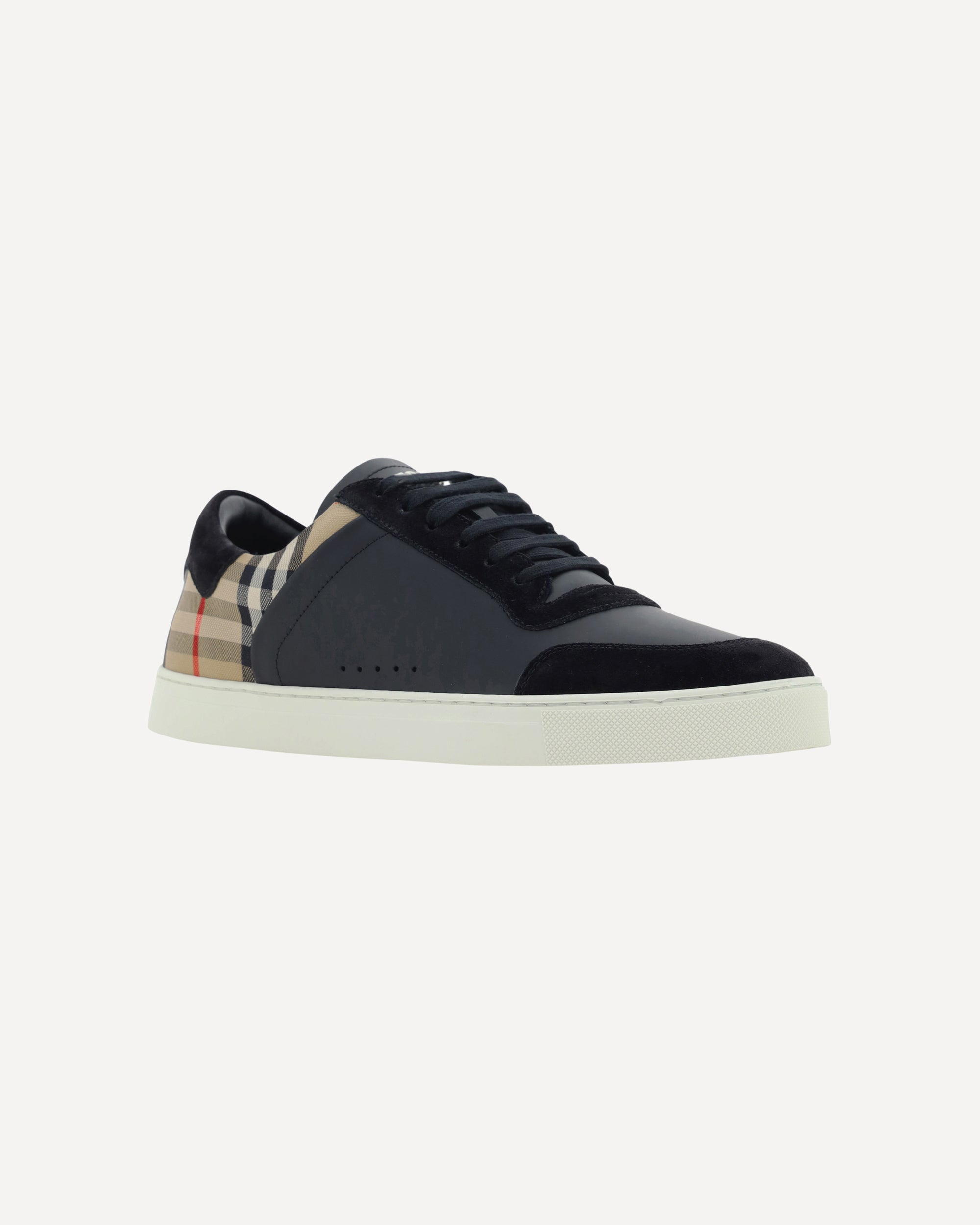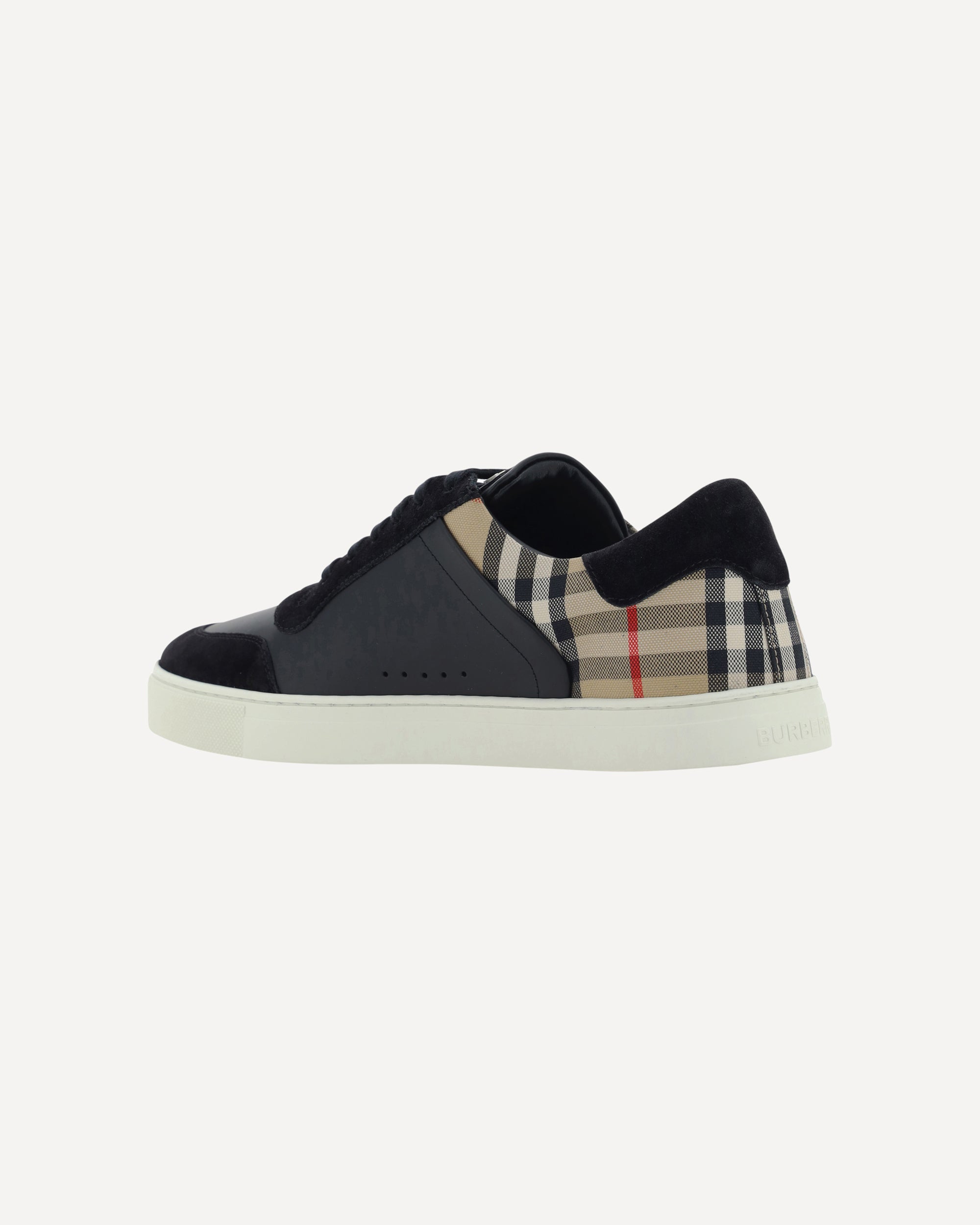 Le Sneakers Stevie di Burberry presentano una punta tonda e suola piatta, con chiusura frontale a lacci. Il design a pannelli include dettagli con l’iconica fantasia Archivio Check del brand, mentre la linguetta frontale è decorata da una label logata a contrasto, per un tocco distintivo e contemporaneo.