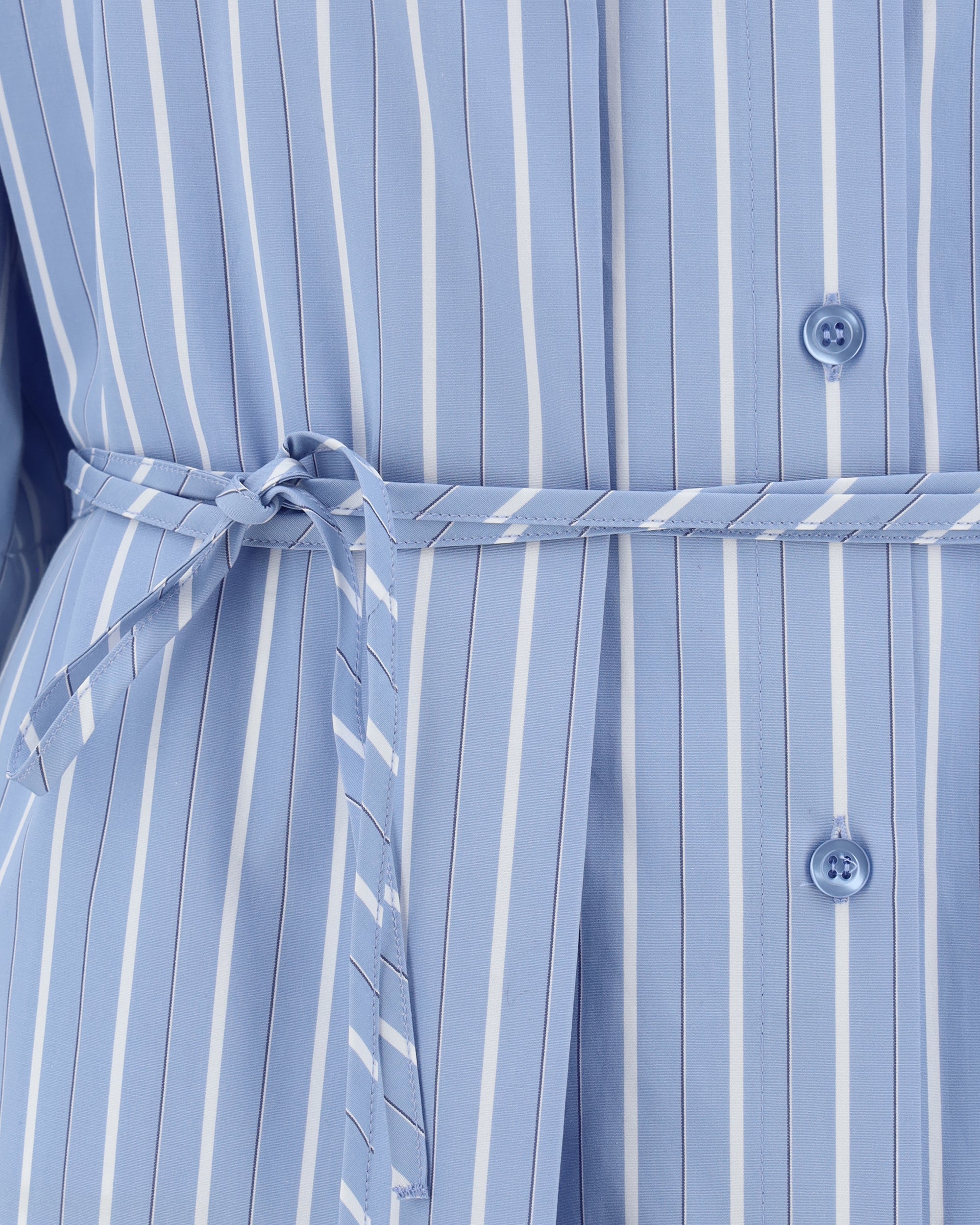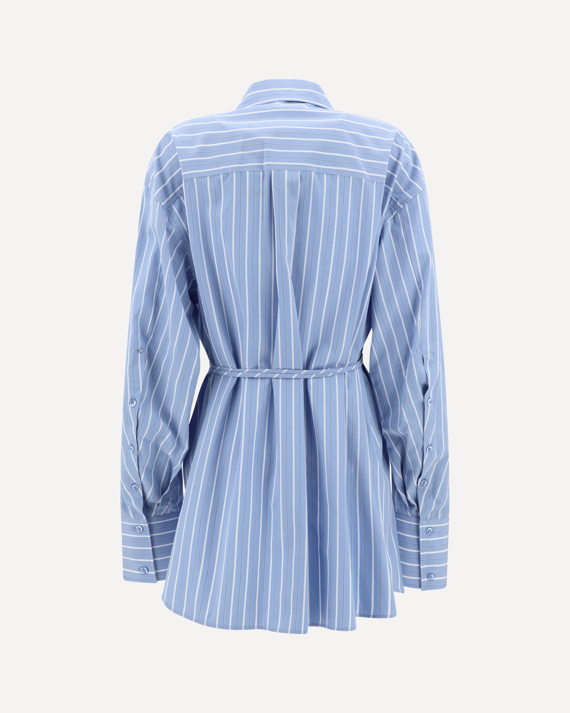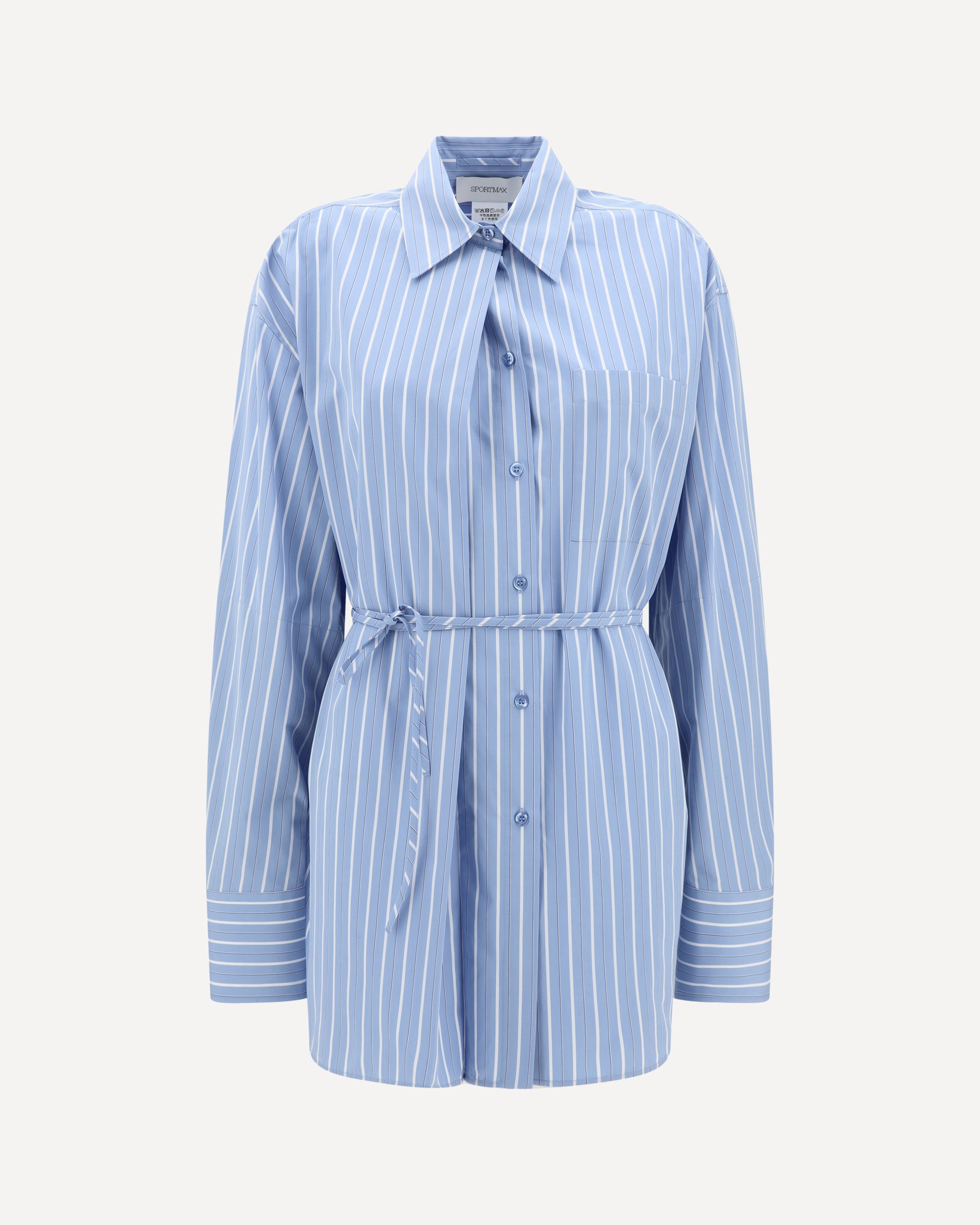 La Camicia a righe Firma di Max Mara Sportmax ha un colletto classico e una chiusura frontale con bottoni, con un design oversize che conferisce una vestibilità comoda e moderna. La tasca applicata sul fronte aggiunge un tocco pratico, mentre la fusciacca abbinata annodabile in vita permette di enfatizzare la silhouette con un dettaglio elegante. Le righe conferiscono al capo un look dinamico e contemporaneo, perfetto per un outfit casual-chic che gioca con proporzioni e stile.