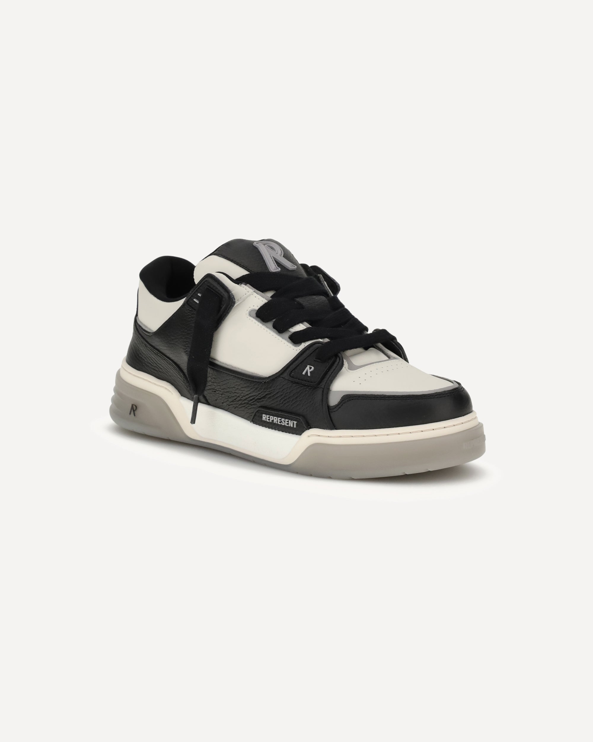 Le Sneakers Studio di Represent sono realizzate in pelle piatta e martellata, con rifiniture in TPU che ne accentuano il profilo moderno. Caratterizzate da un’allacciatura spessa e dal logo distintivo, combinano design contemporaneo e dettagli tecnici per uno stile urbano e deciso.