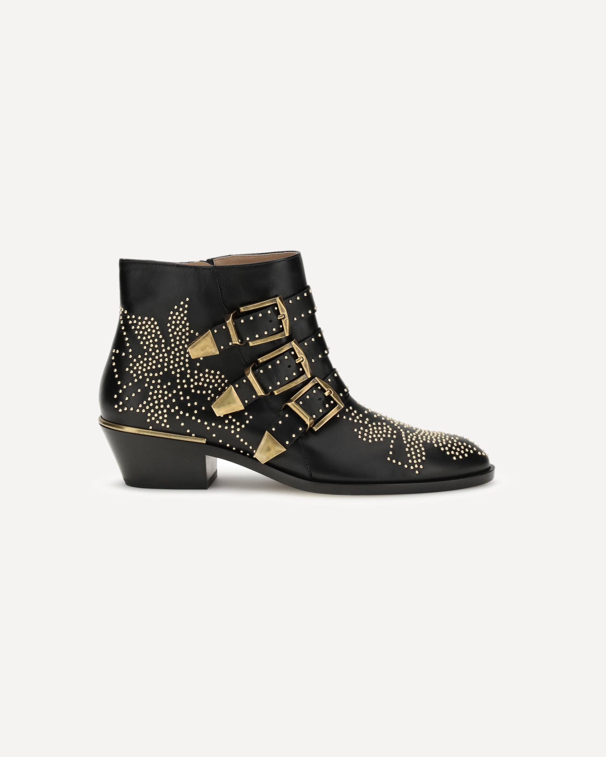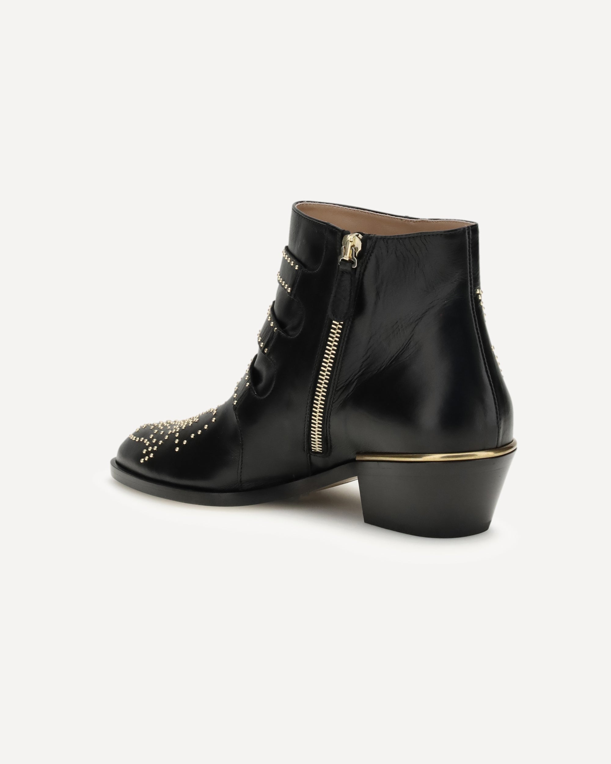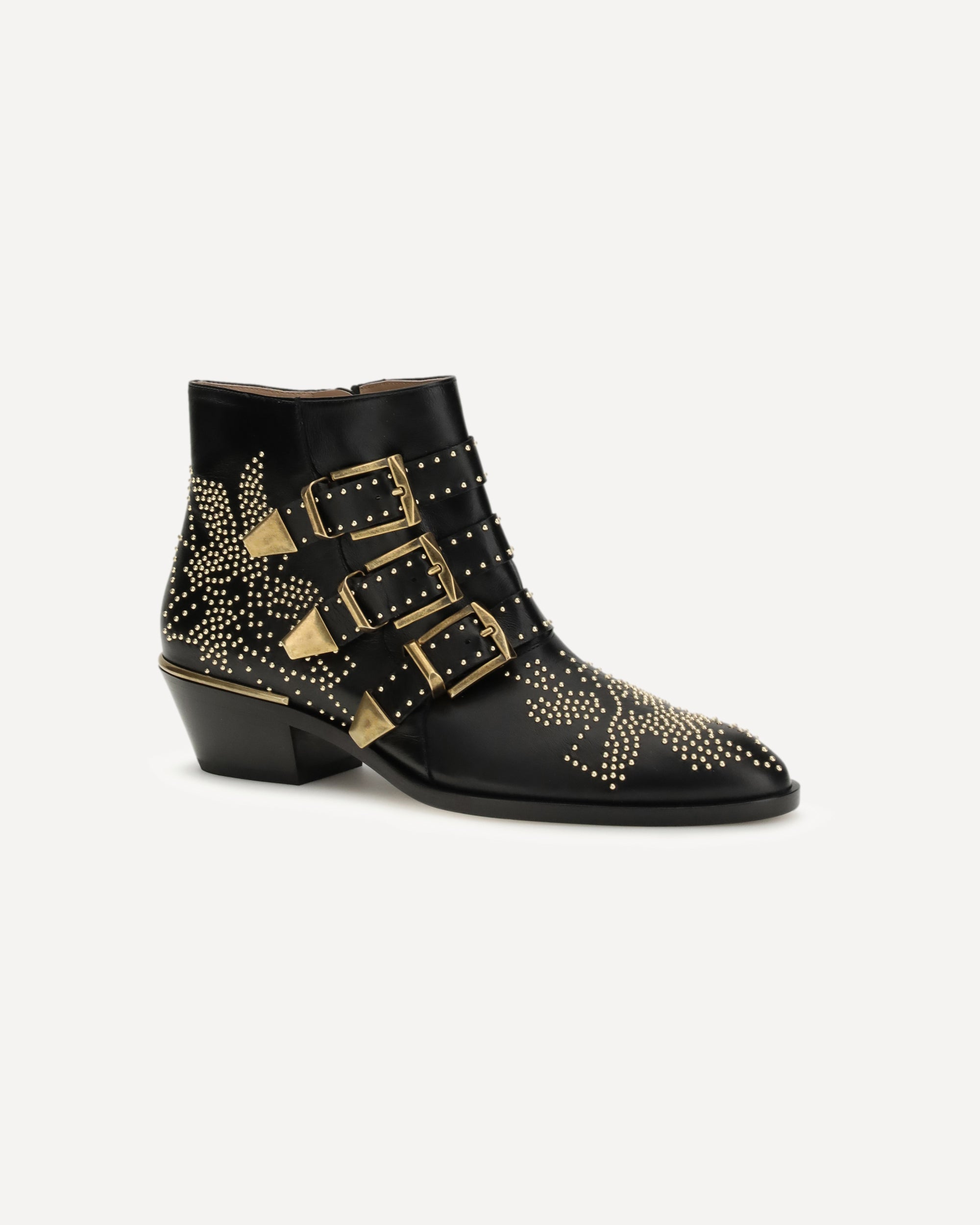 Gli Stivali Susan di Chloé rappresentano un’icona di stile dal fascino rock e sofisticato. Realizzati in morbida pelle, presentano una tomaia arricchita da micro borchie metalliche e una tripla chiusura con strap che dona carattere al design. La zip laterale facilita la calzata, mentre l’interno e la soletta in pelle assicurano comfort e qualità artigianale. Completano il modello la suola in cuoio e una calzata regolare, ideale per un look deciso ma raffinato.
