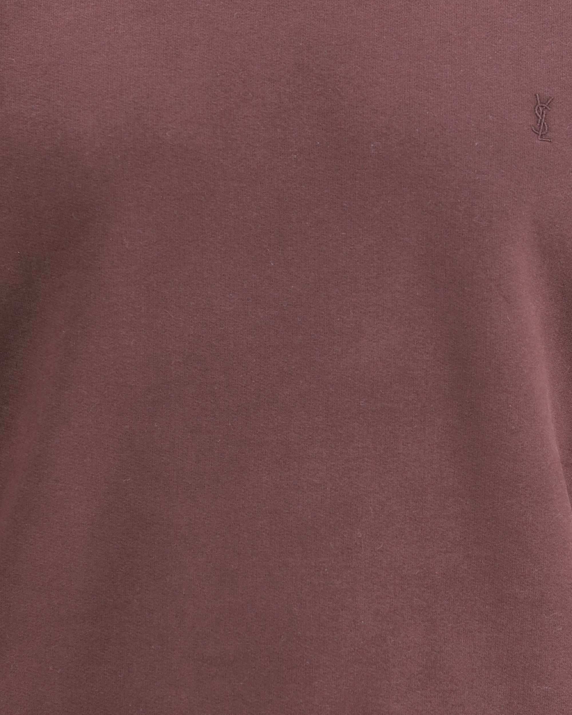 La Felpa Cassandre di Saint Laurent è un capo dallo stile essenziale ed elegante. Realizzata con girocollo e maniche lunghe, presenta finiture a coste e un ricamo Cassandre tono su tono sul petto, dettaglio discreto ma iconico del brand.